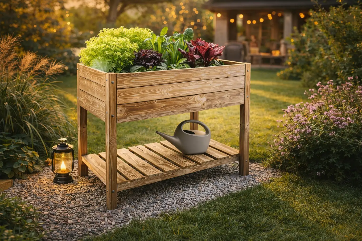 Dieses robuste Hochbeet wurde aus natürlichen Materialien gefertigt und bietet Ihnen die ideale Umgebung, um Ihre Pflanzen gesund und kräftig gedeihen zu lassen. Mit seiner großzügigen Größe haben Sie ausreichend Platz für eine Vielzahl von Gemüse, Kräutern und Blumen.