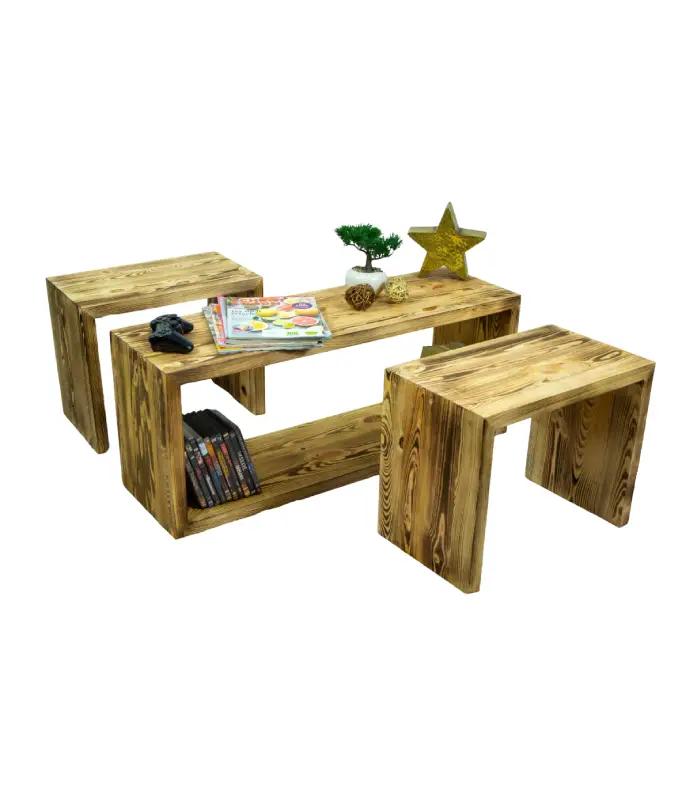 2er Set Beistelltisch 50x40x30cm Sitzhocker in shabby schwarz