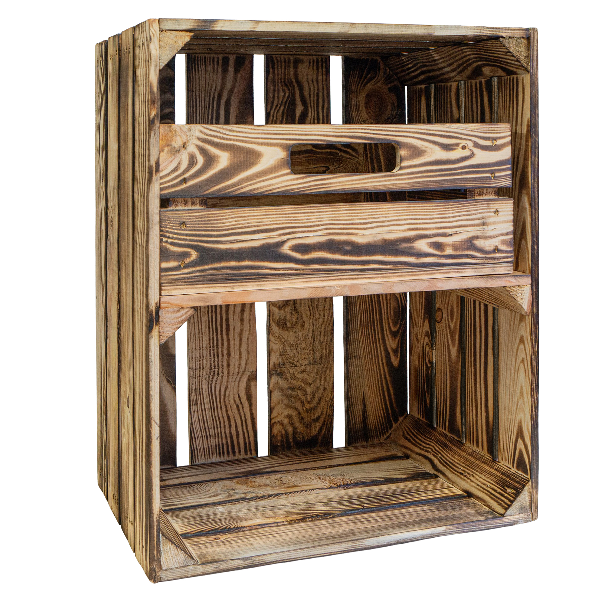 Diese geflammte Obstkiste besitzt eine seperate Schublade für das obere Fach.