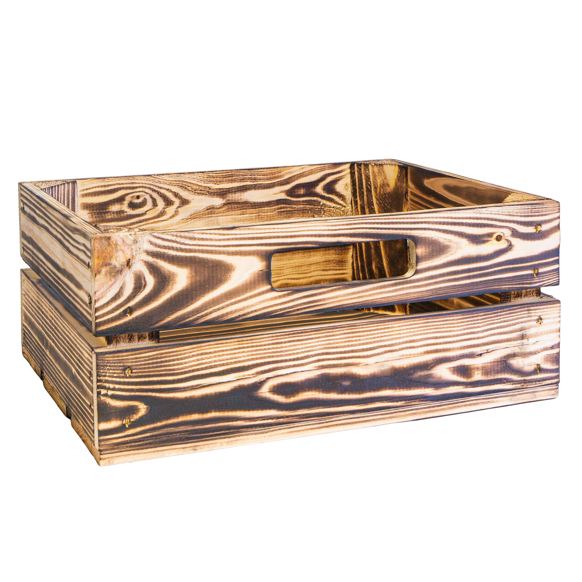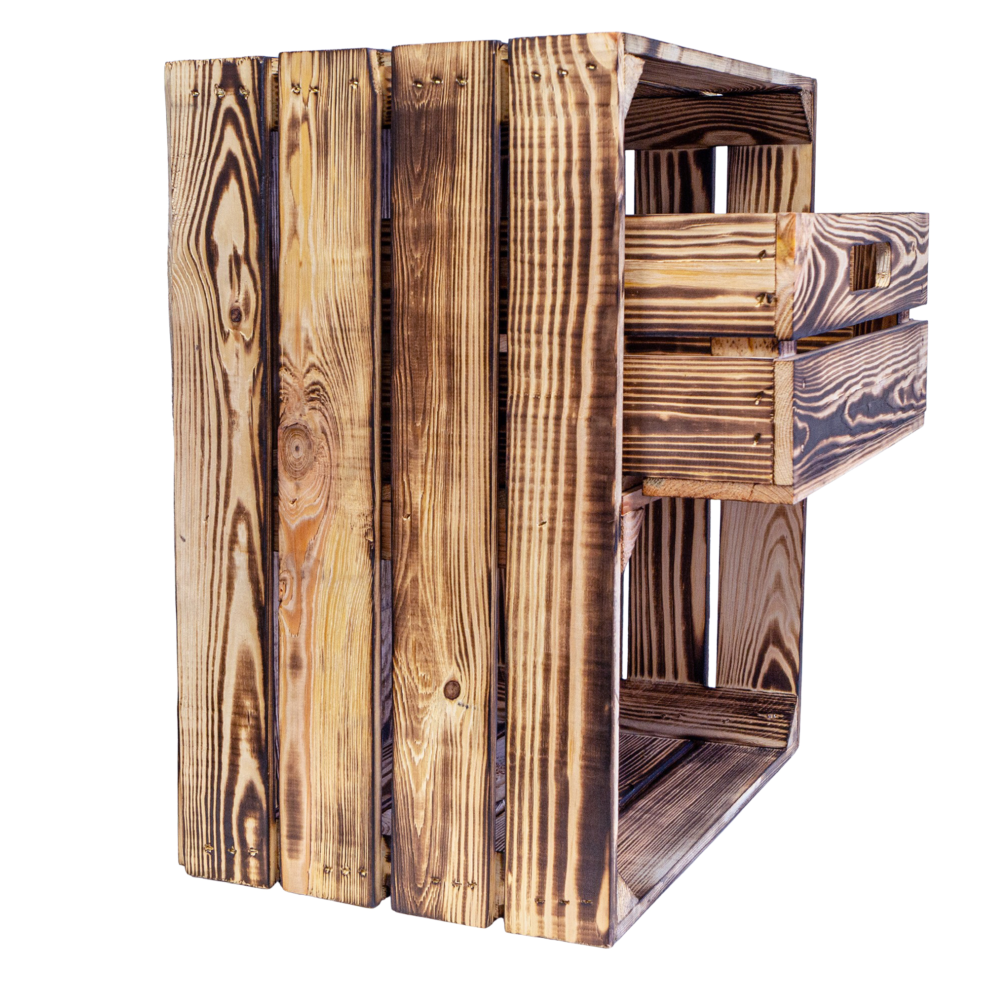 Achtung: Geflammte Kisten: Durch das abflammen der Kiste ensteht Russ der natürlich vor Gebrauch entfernt werden sollte.