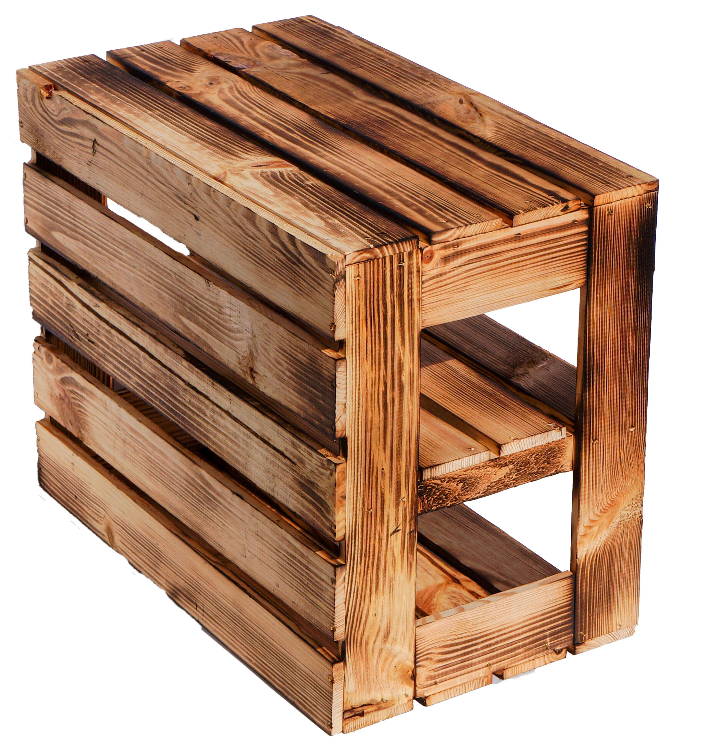 Diese massiven Kisten sind NEU und wurden mit einem Brenner “flambiert” und haben deshalb eine ungewöhnliche, aber sehr schöne Struktur!