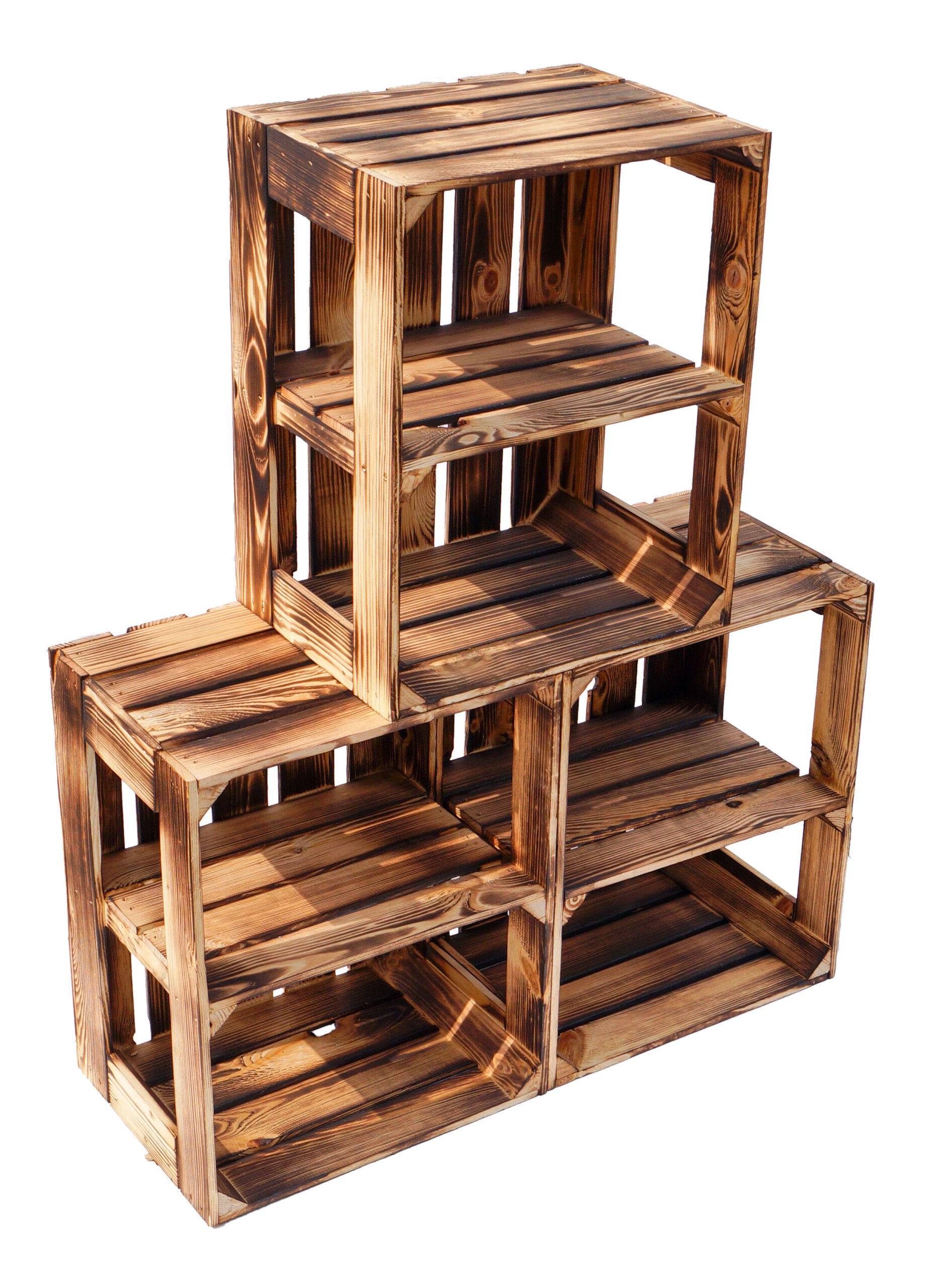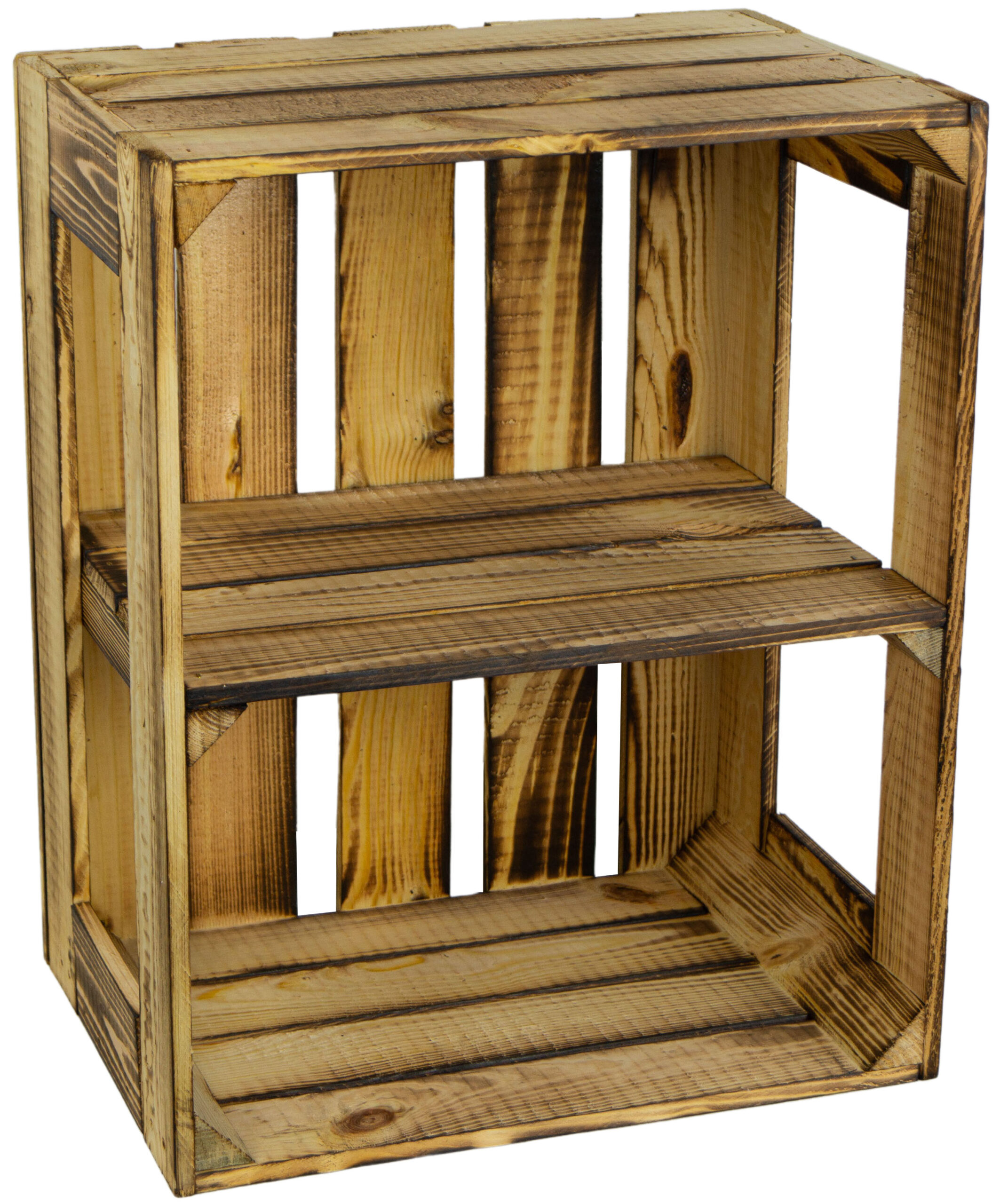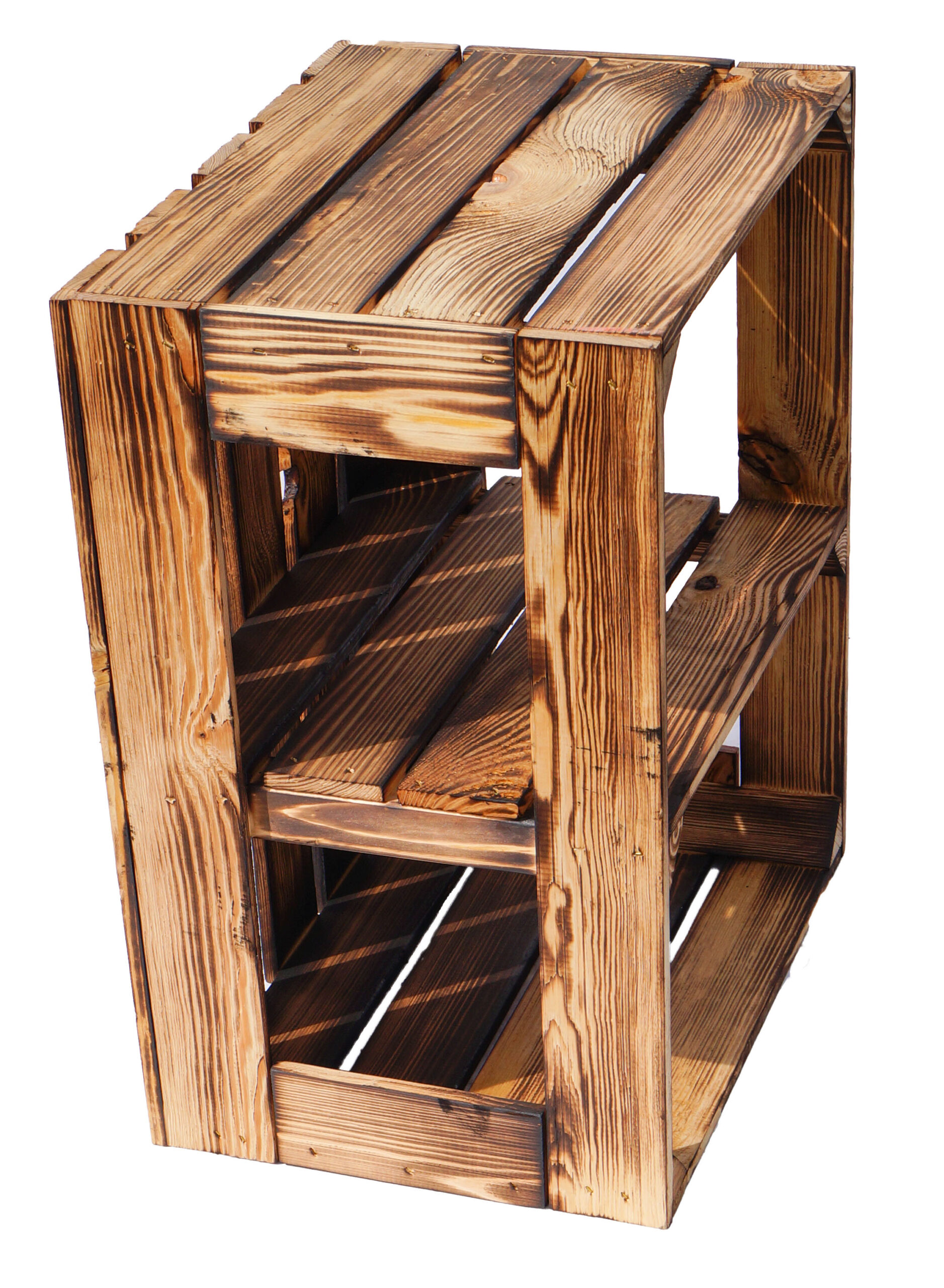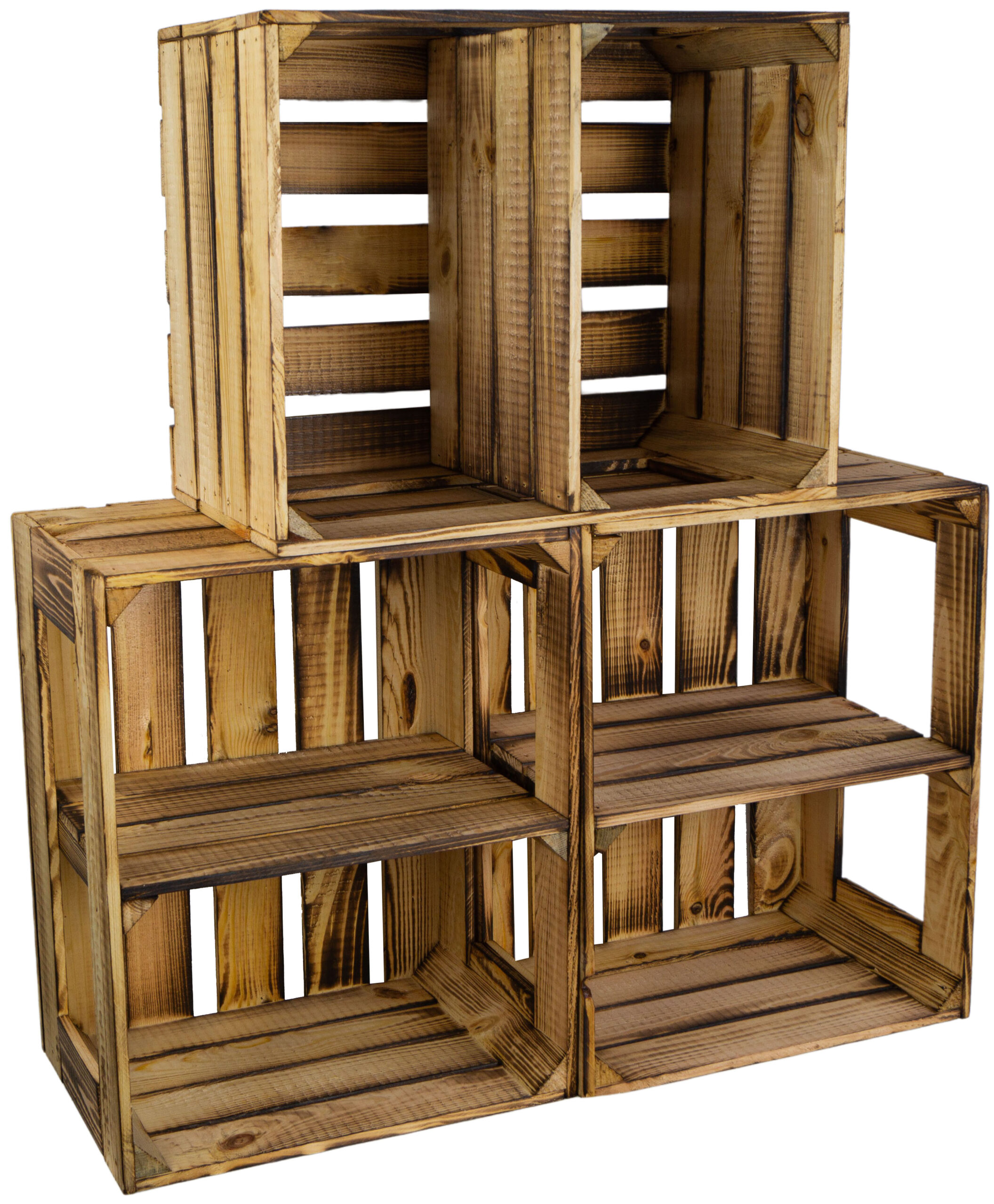 Diese massiven Kisten sind NEU und wurden mit einem Brenner “flambiert” und haben deshalb eine ungewöhnliche, aber sehr schöne Struktur!