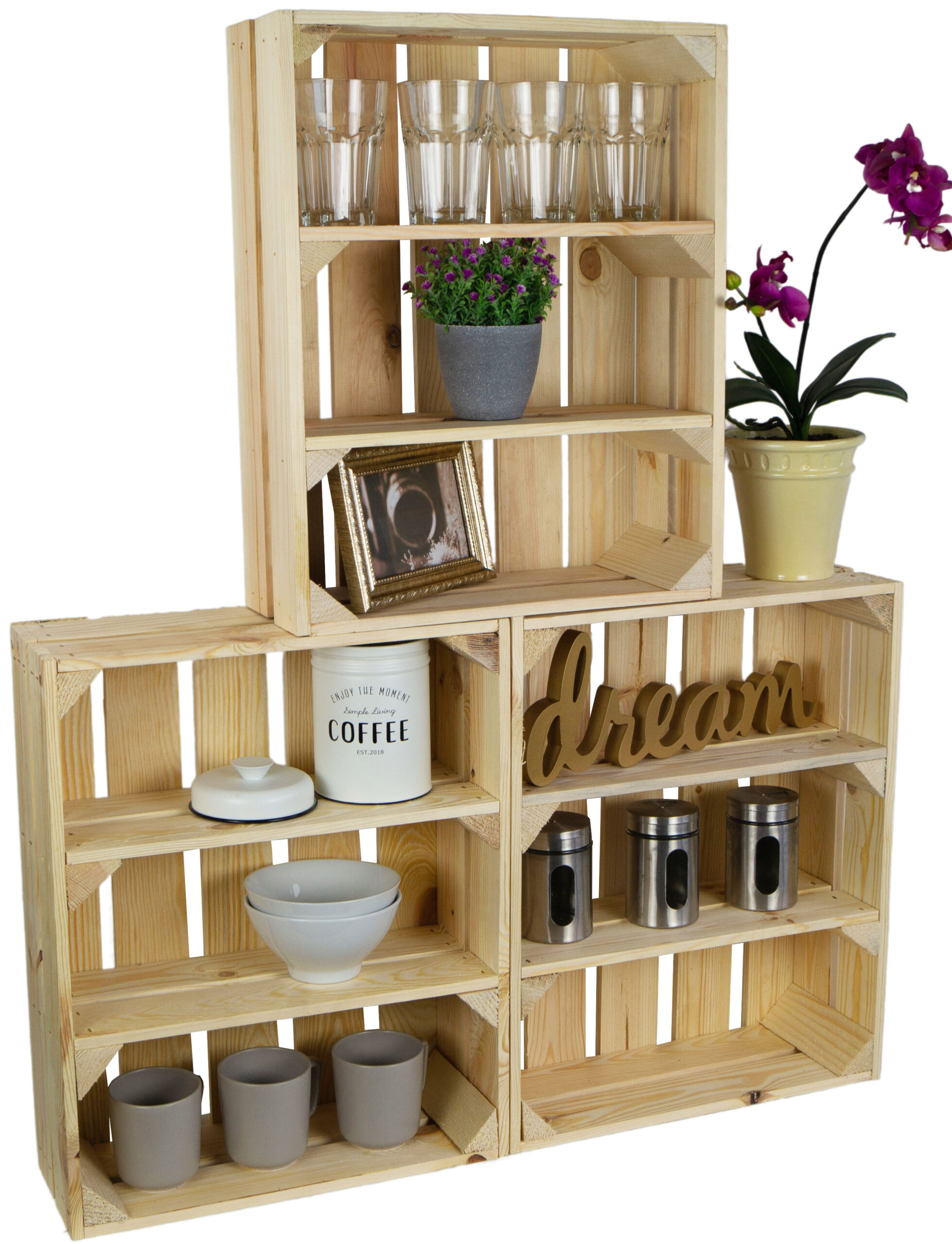 3er Set – flaches Obstkistenregal Wilma natur