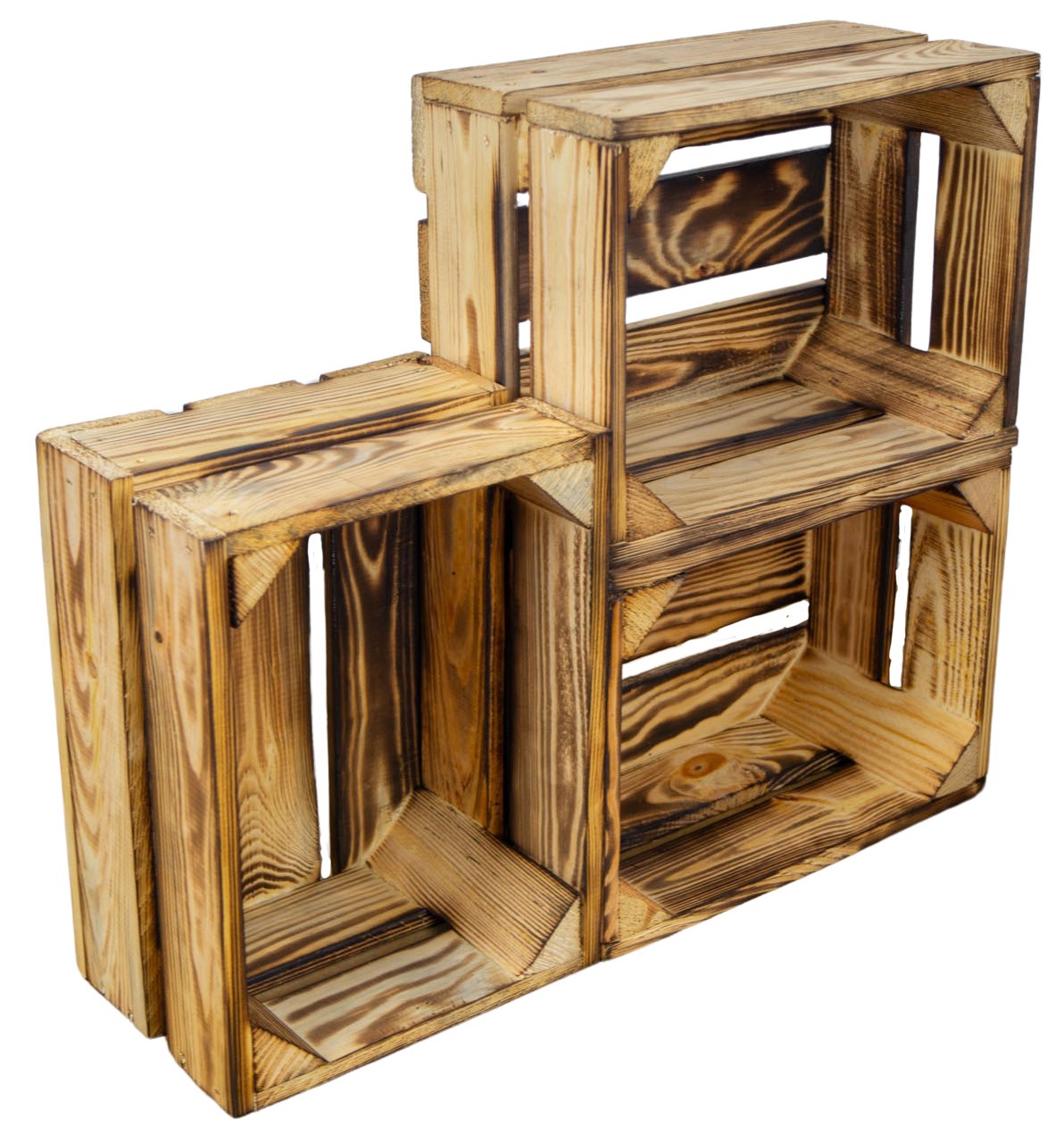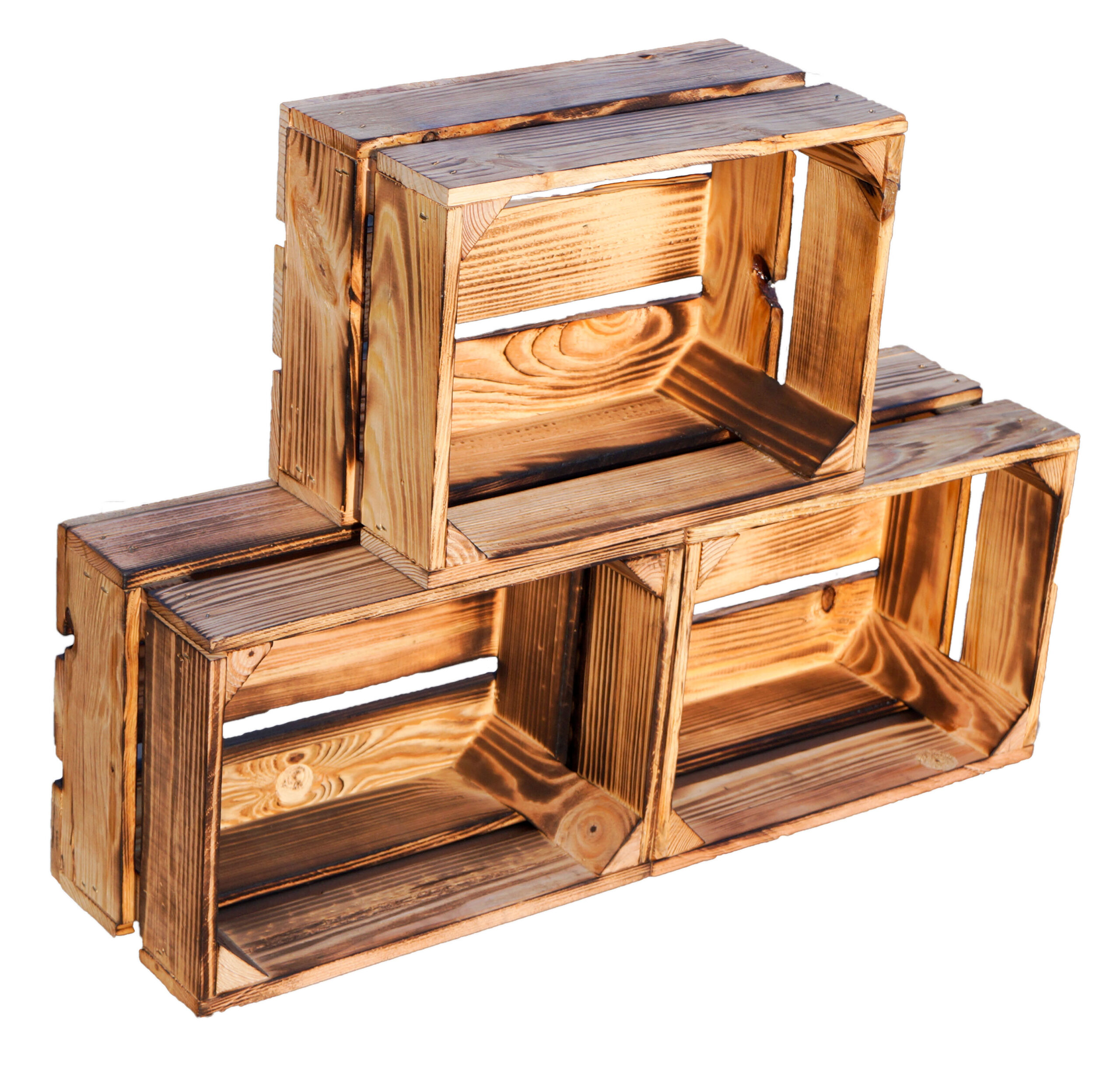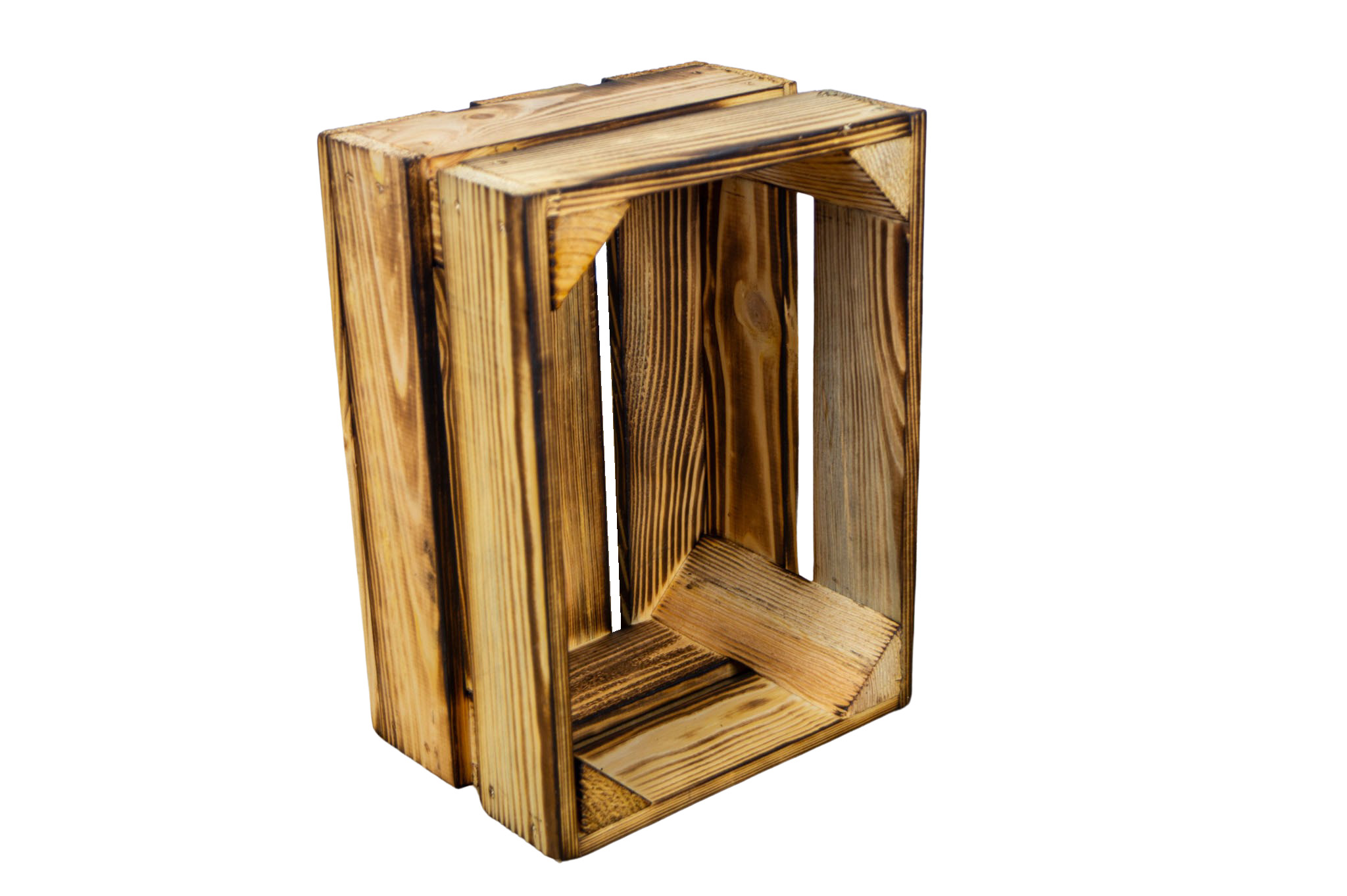 Diese massiven kleinen Kisten sind NEU und wurden mit einem Brenner "flambiert" und haben deshalb eine ungewöhnliche, aber sehr schöne Struktur!
