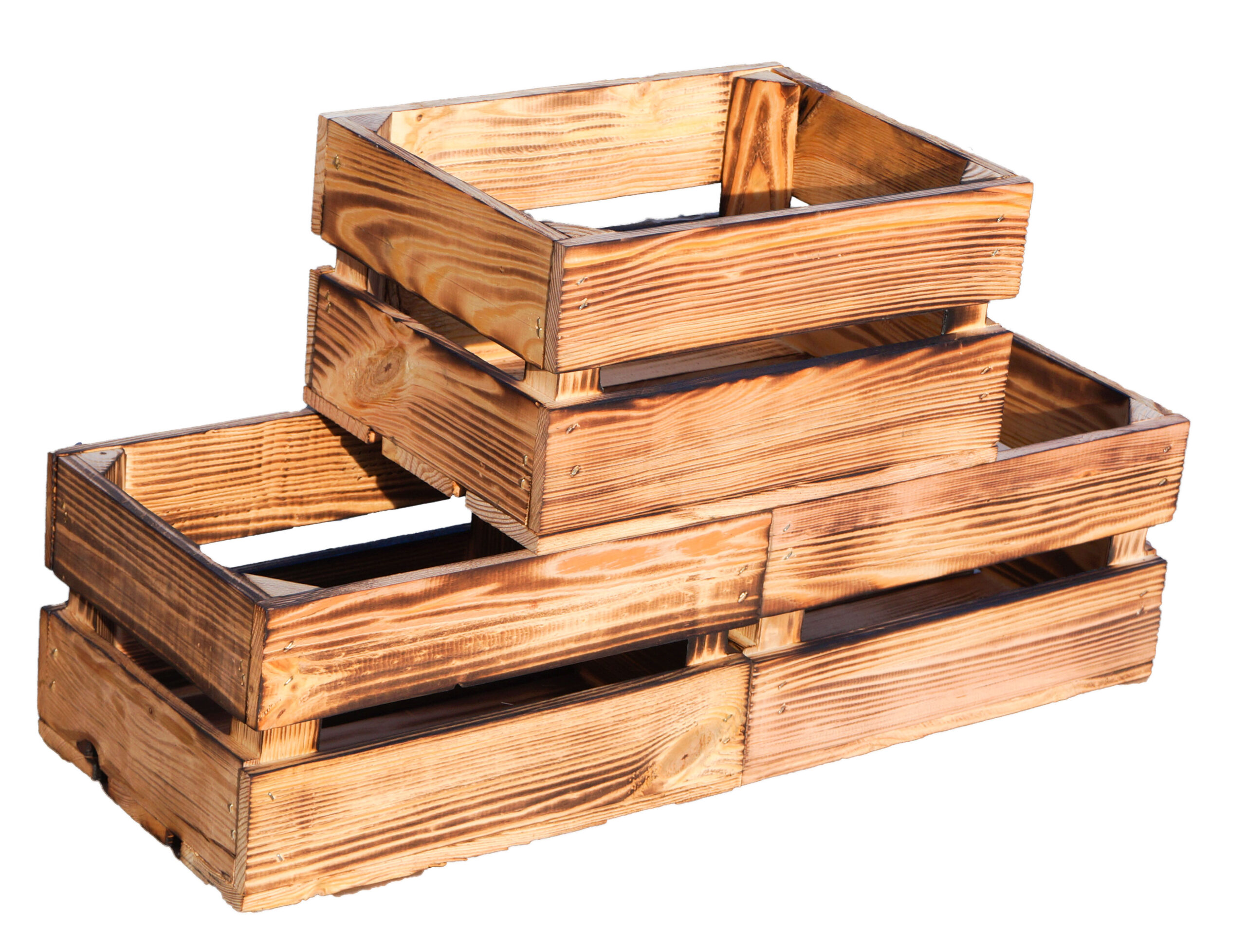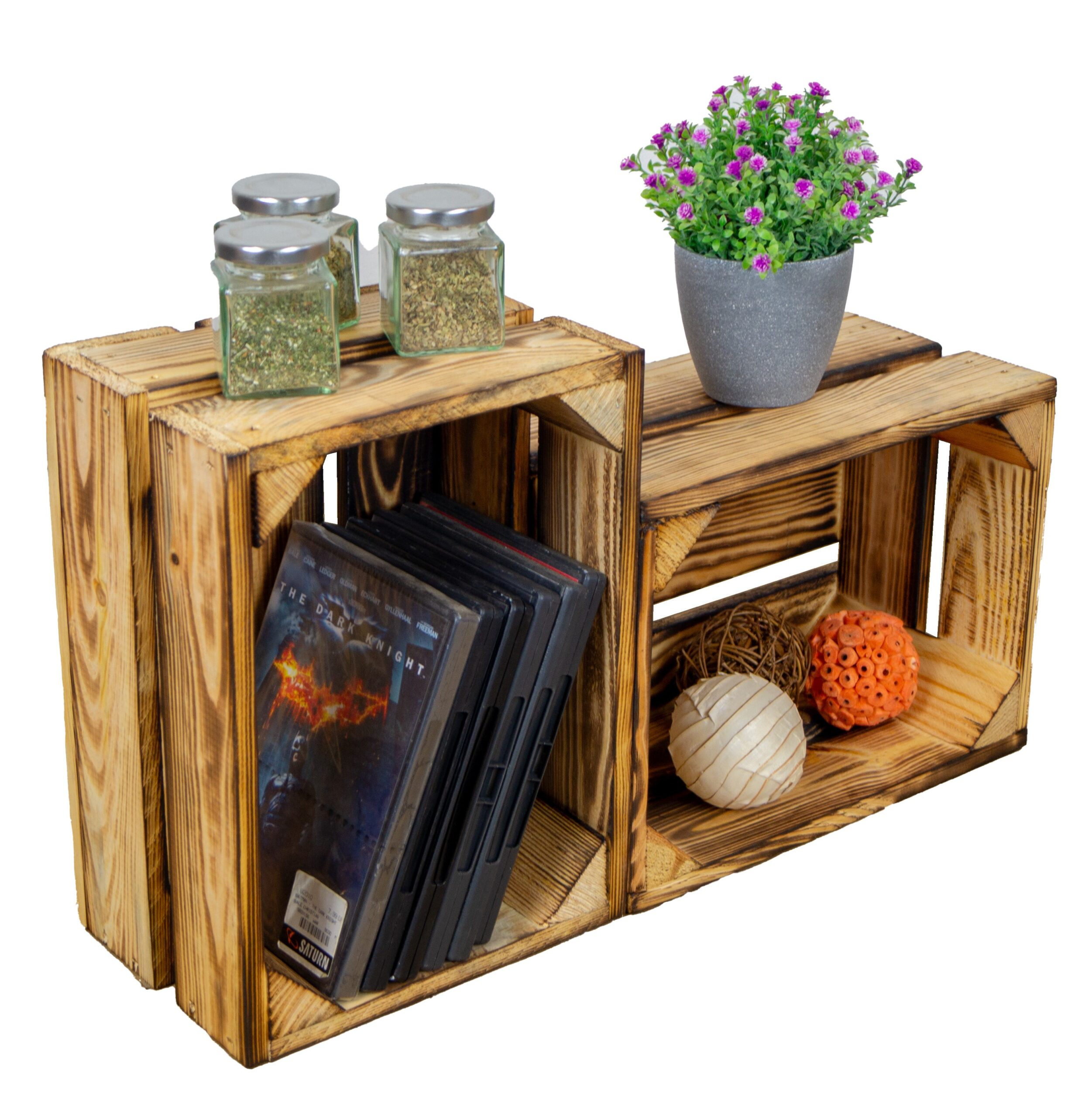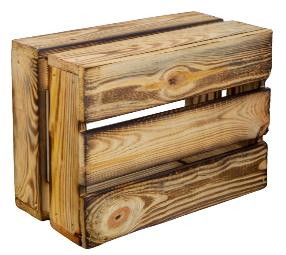 Diese massiven kleinen Kisten sind NEU und wurden mit einem Brenner "flambiert" und haben deshalb eine ungewöhnliche, aber sehr schöne Struktur!