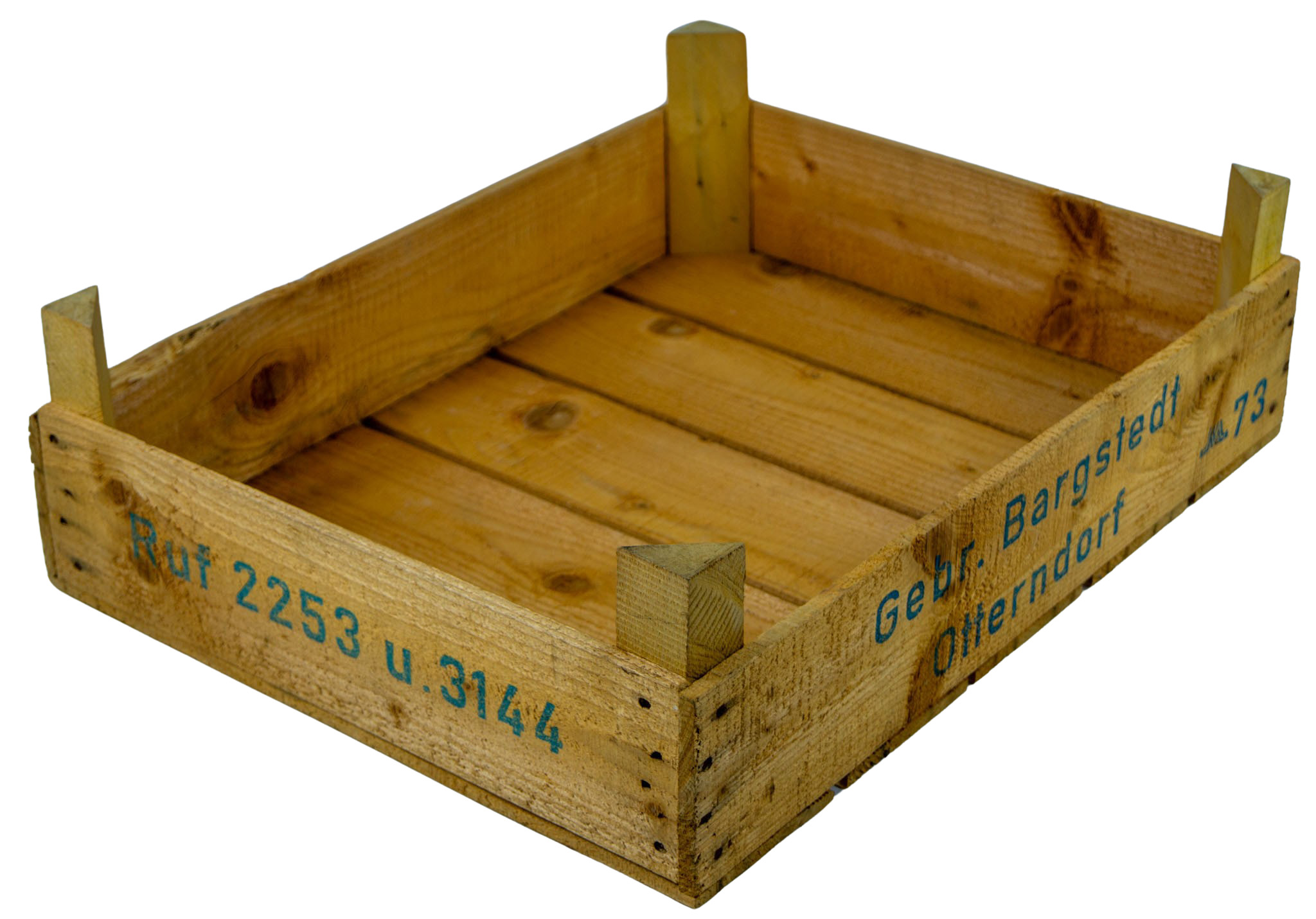 - Gebrauchsspuren: Die Kisten wurden direkt von Obst- und Gemüsebauern oder Floristen verwendet und weisen daher leichte Gebrauchsspuren auf. Sie werden lediglich grob abgeklopft, aber nicht gründlich gereinigt.