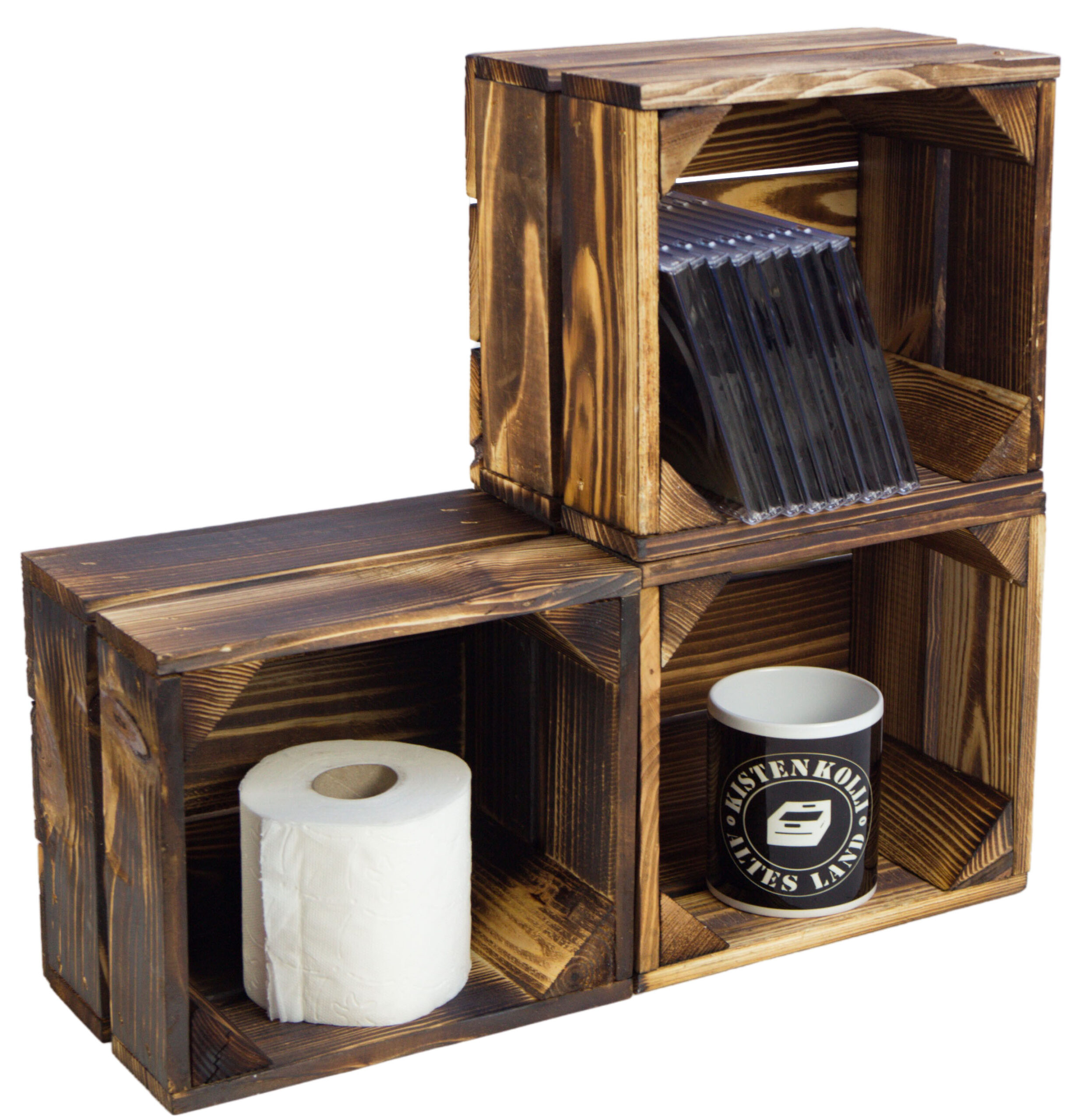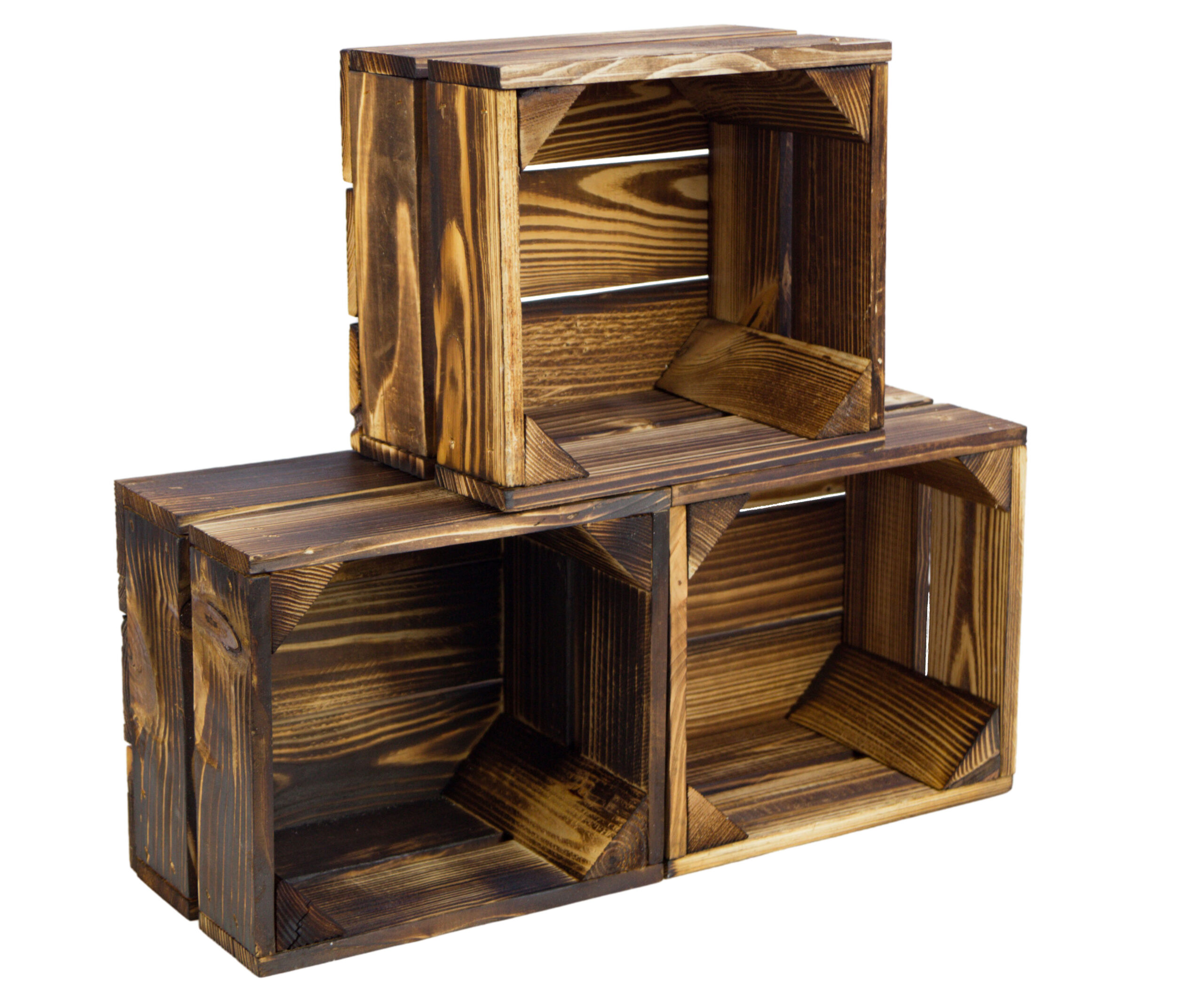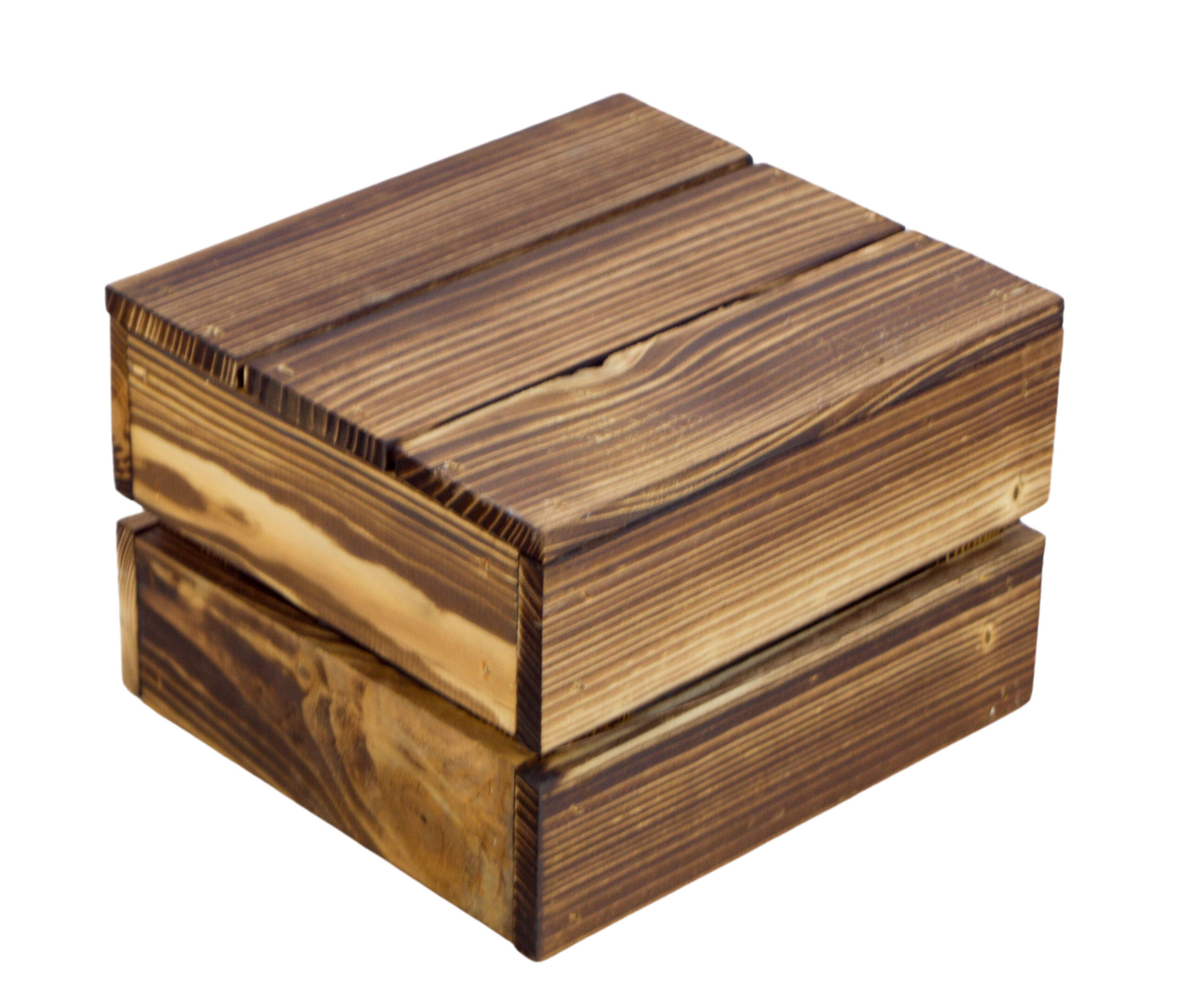 Diese massiven kleinen Kisten sind NEU und wurden mit einem Brenner "flambiert" und haben deshalb eine ungewöhnliche, aber sehr schöne Struktur!