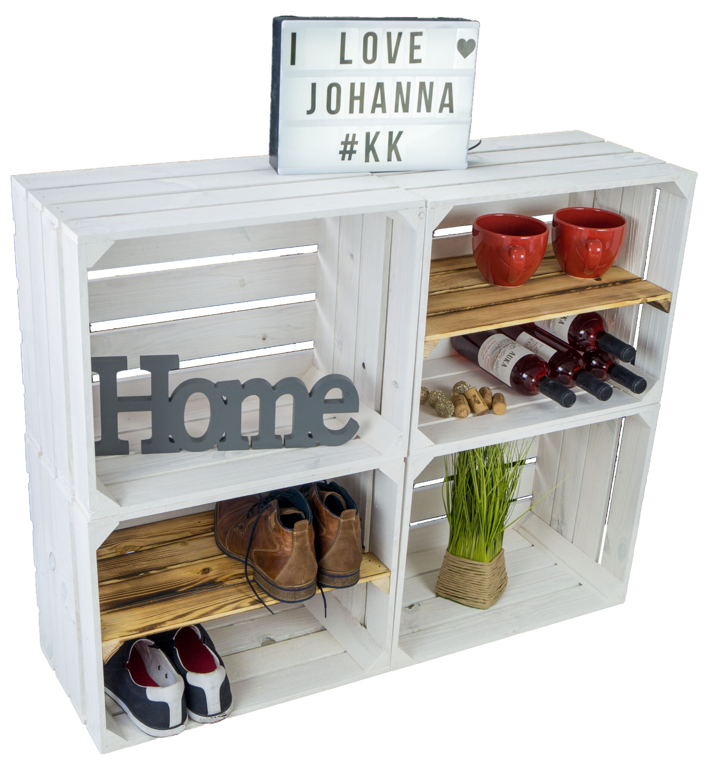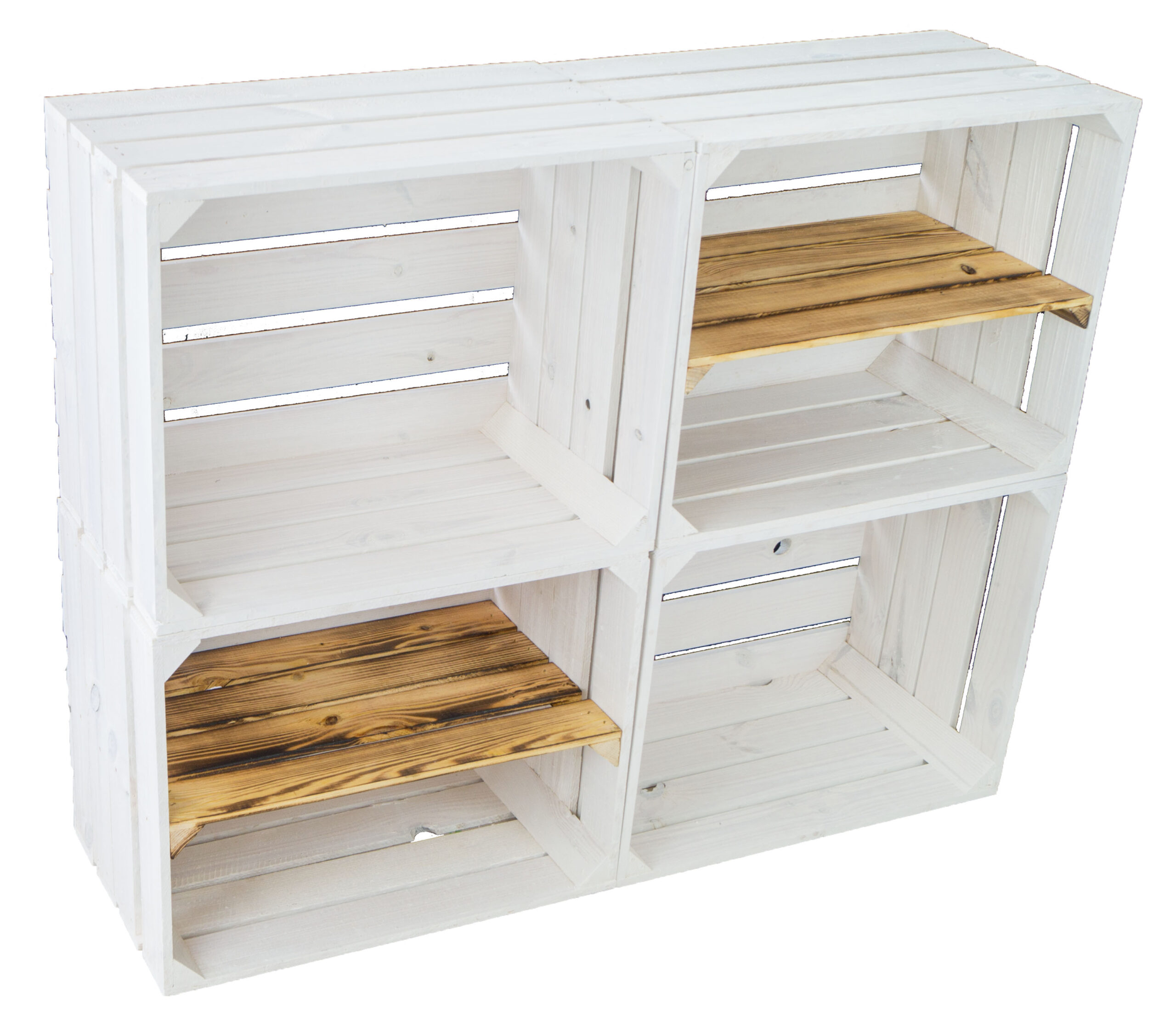 4er set Obstkisten “Johanna” weiß lasiert mix mit Längs geflammt