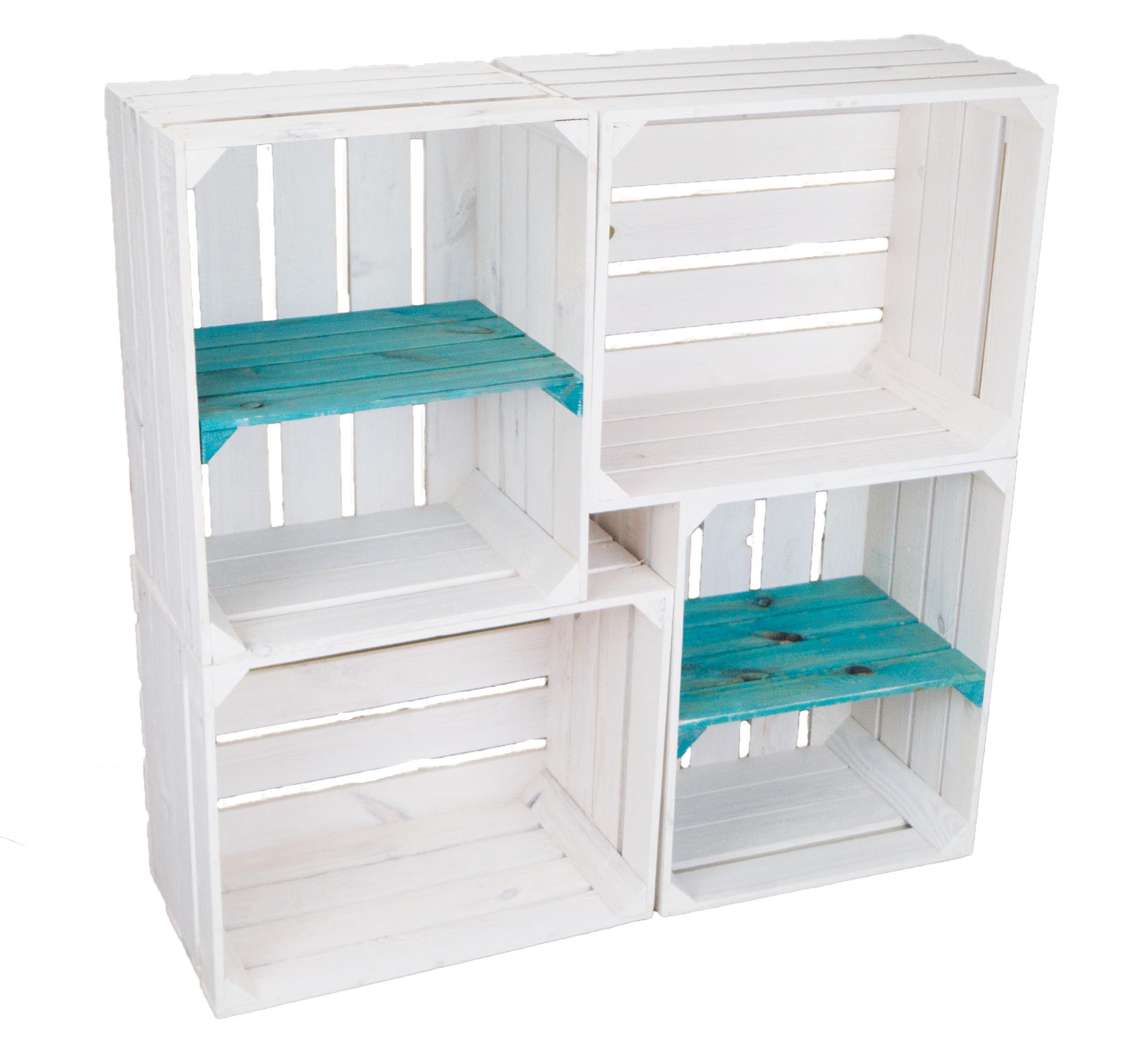 4er set Obstkisten “Johanna” weiß lasiert mix mit Quer türkis