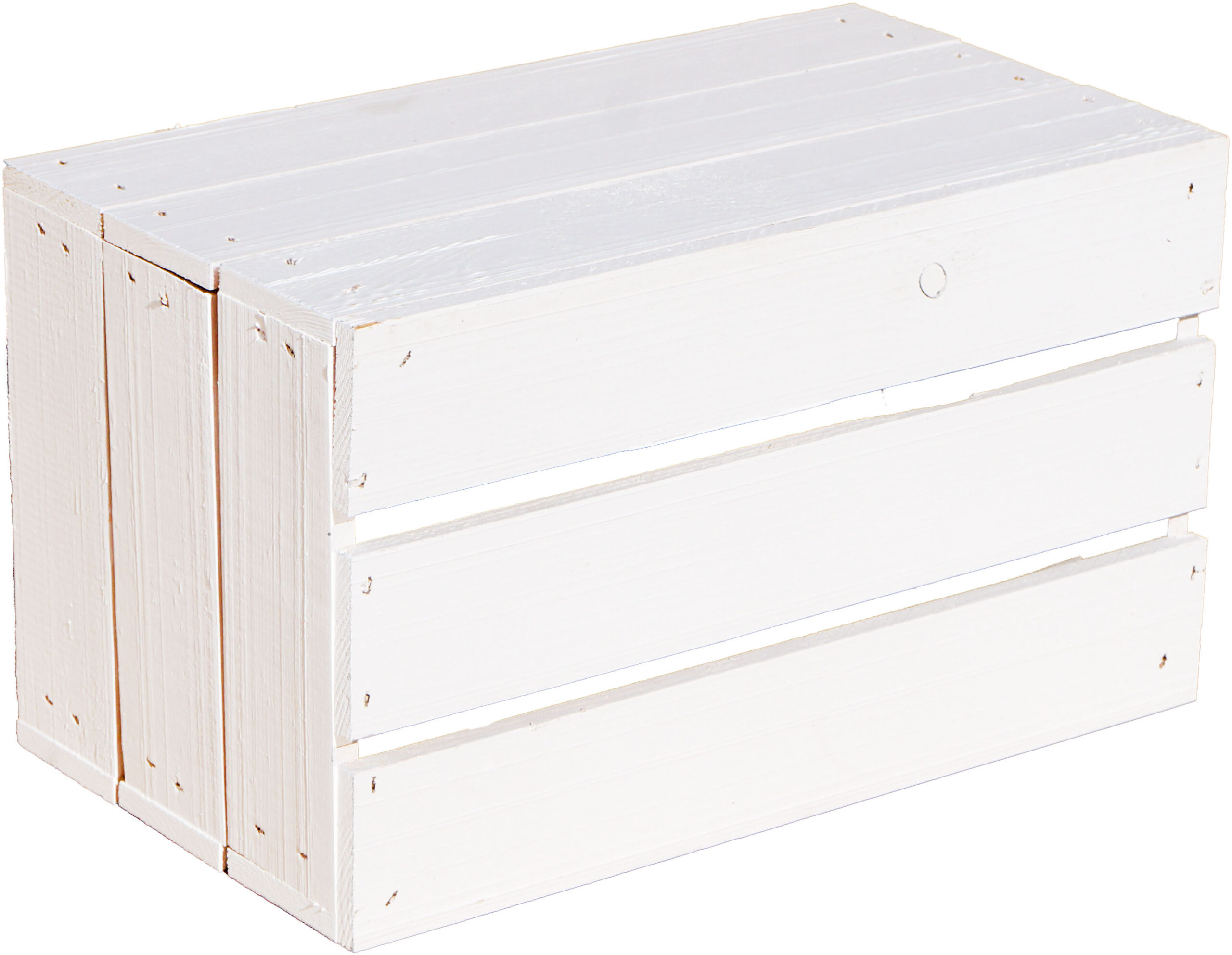 Unsere sehr massive Holzkiste Hilde wurde gehobelt und mit unserer weissen Latexfarbe versehen.