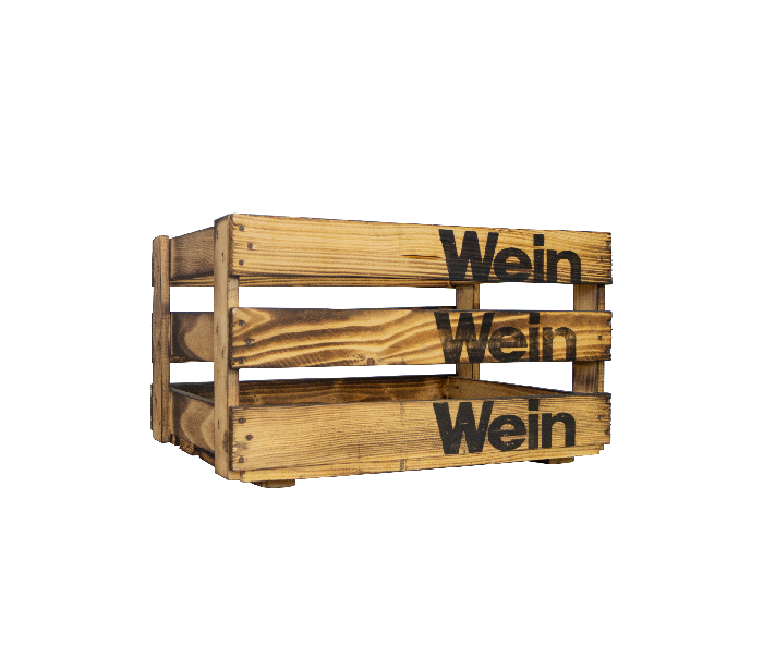 Alte geflammte Weinkiste “WEIN WEIN WEIN”