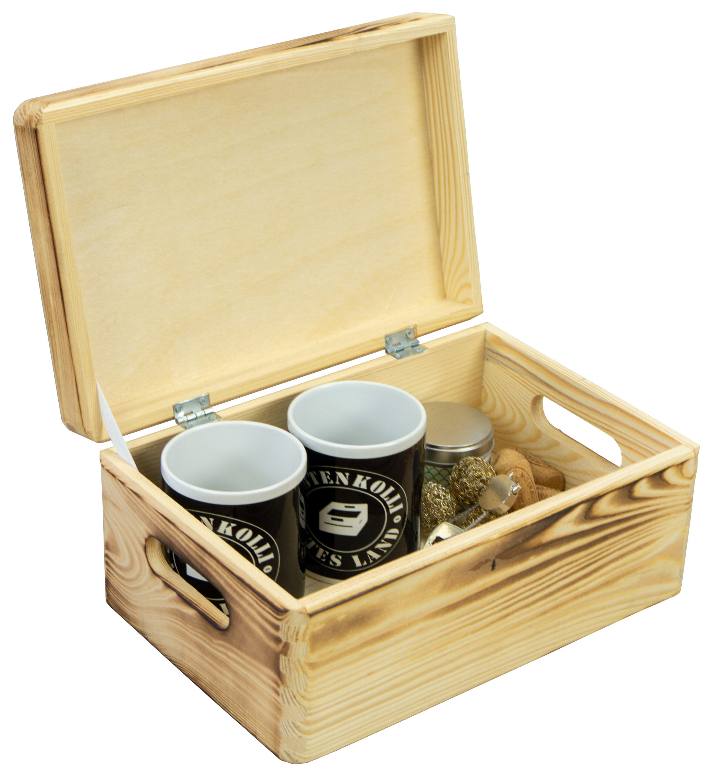 Aufbewahrungsbox abgeflammt mit Deckel und Griffen 300