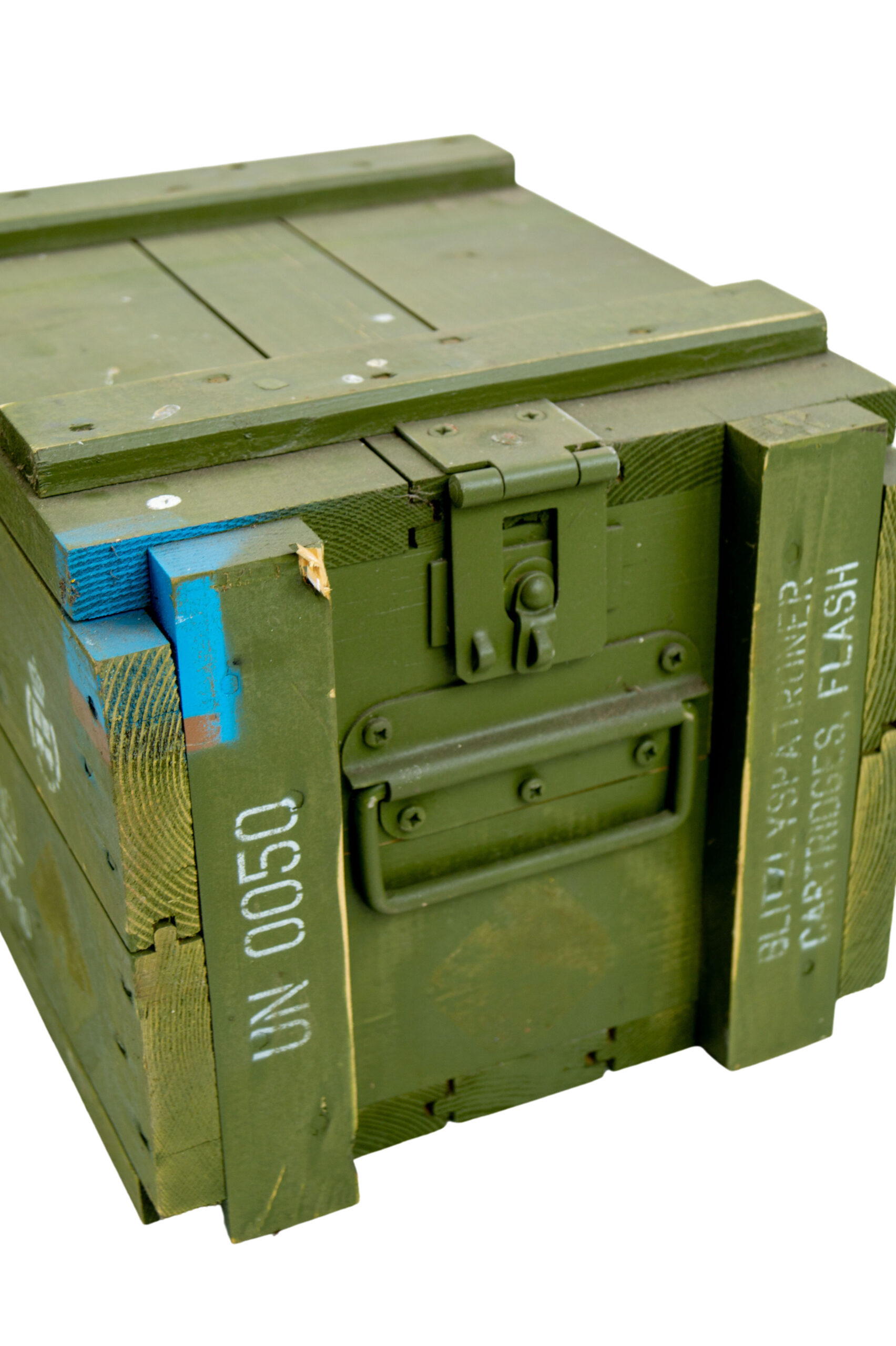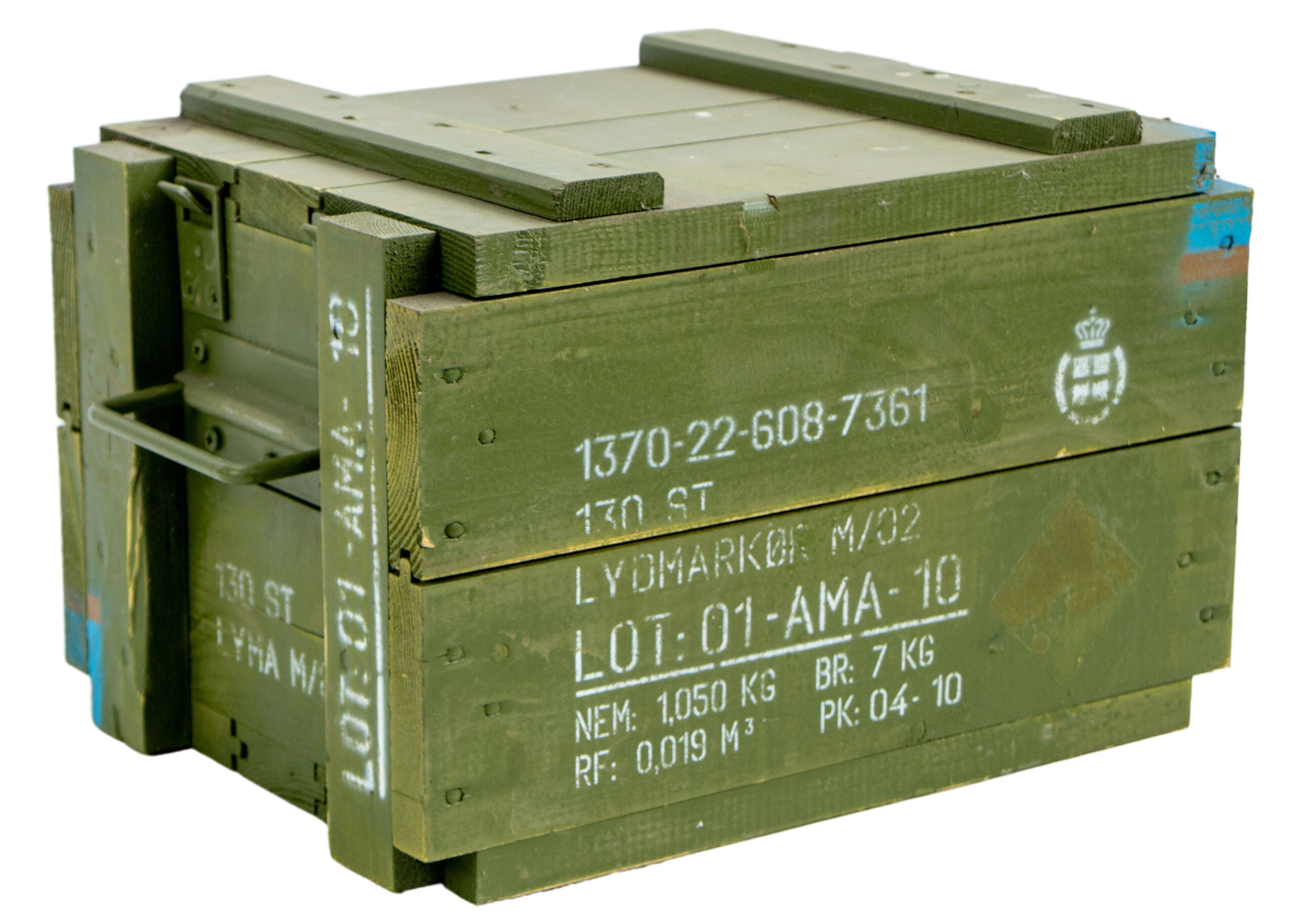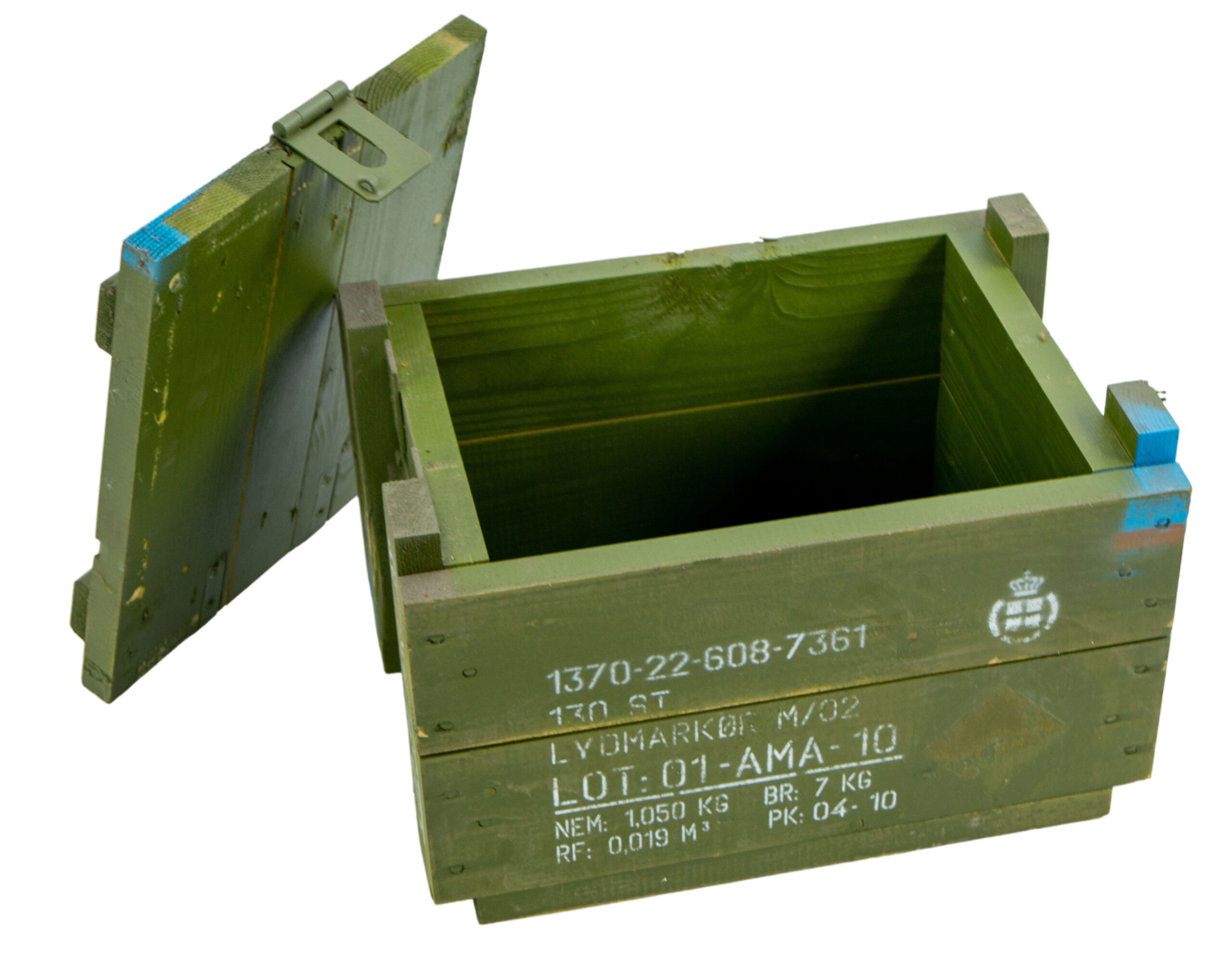 Diese ausrangierten original dänischen Munitionskisten wurden lediglich zu Übungszwecken benutzt. Sie sind sehr robust und haben eine tollen Vintage Look. Diese Kisten sind für einen vielfachen Einsatzbereich zu verwenden, wie z.B einen Abstelltisch, einer miniBar, Hocker Aufbewahrungsbox, Schatztruhe und und und