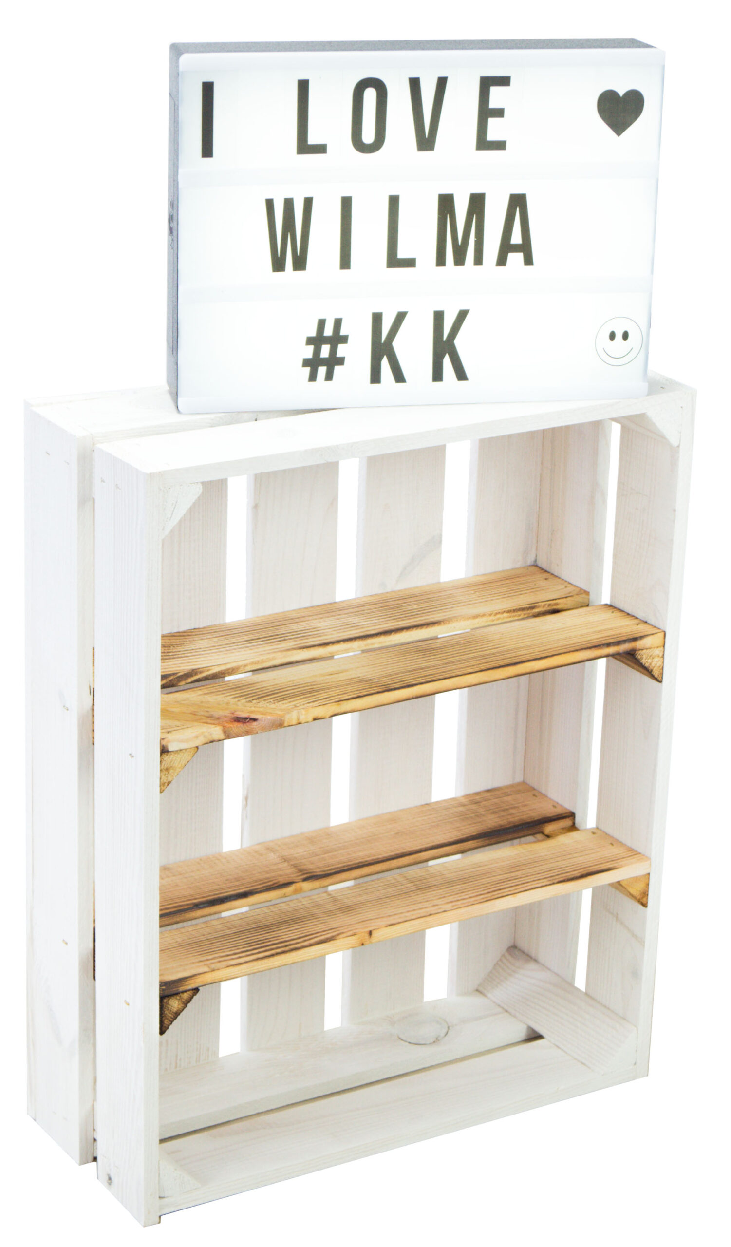 Schöne weiße Obstkiste “Wilma” mit zwei Einlegeböden.
