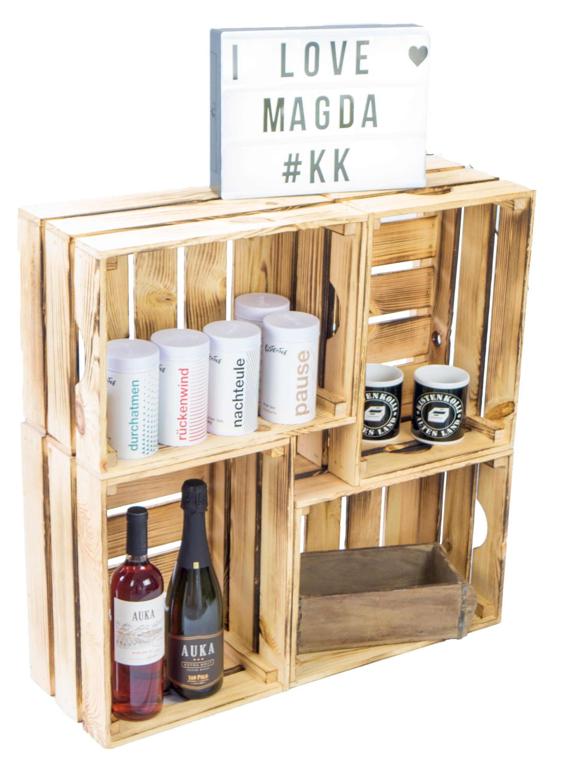 Unser kleine stapelbare Kiste Magda hat eine ideale Grösse zur Aufbewahrung von diversen Dingen, durch die extra Leisten,