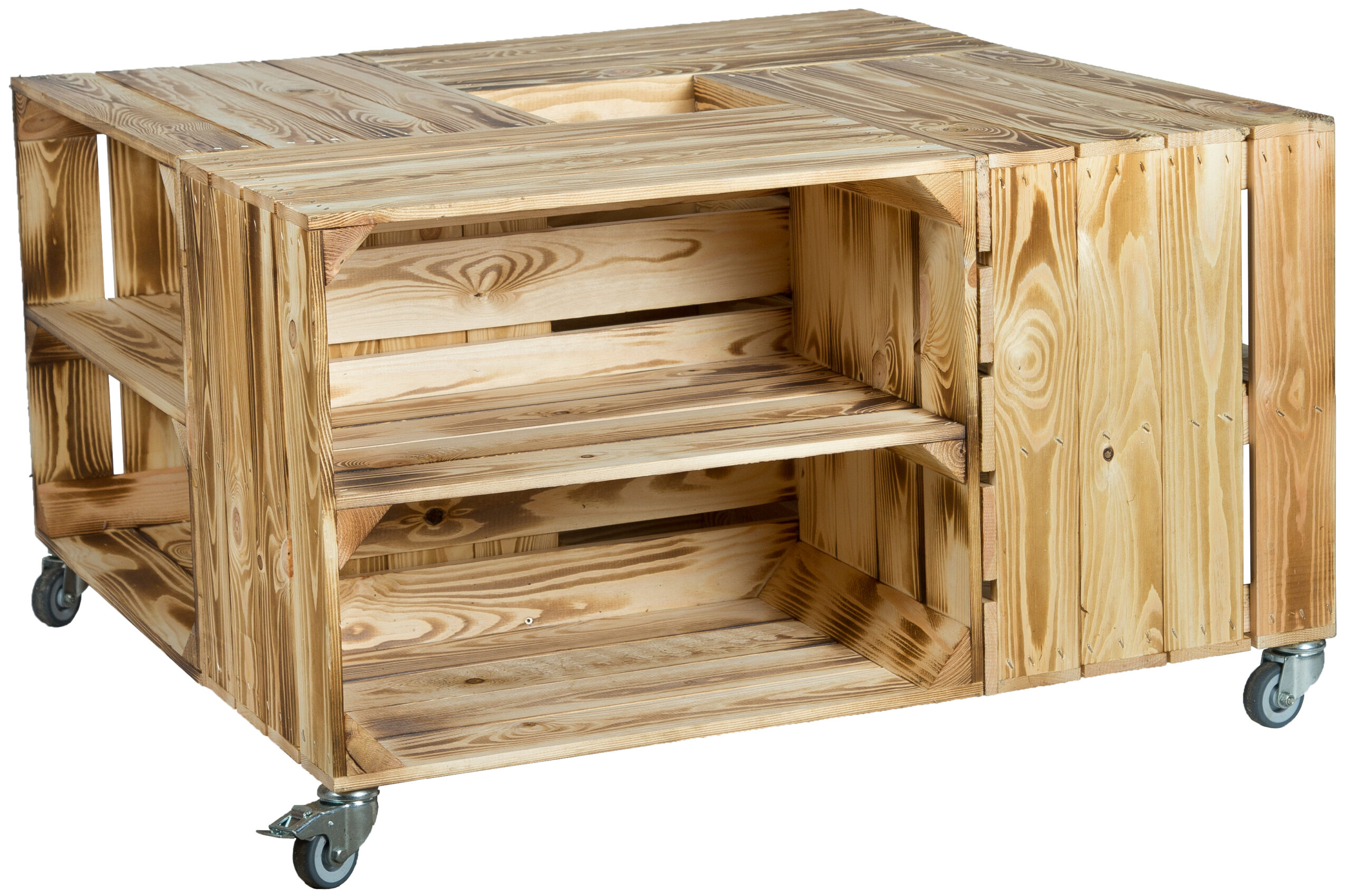 großer Obstkistentisch Johanna geflammt inkl. Rollen