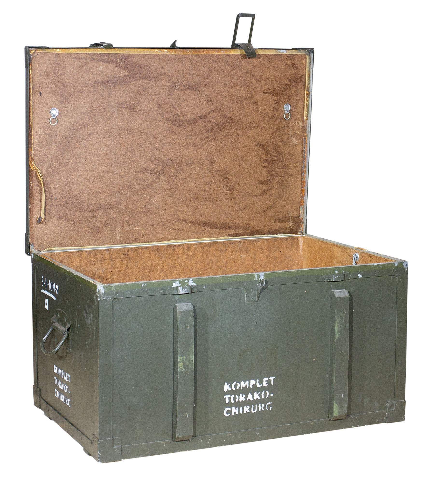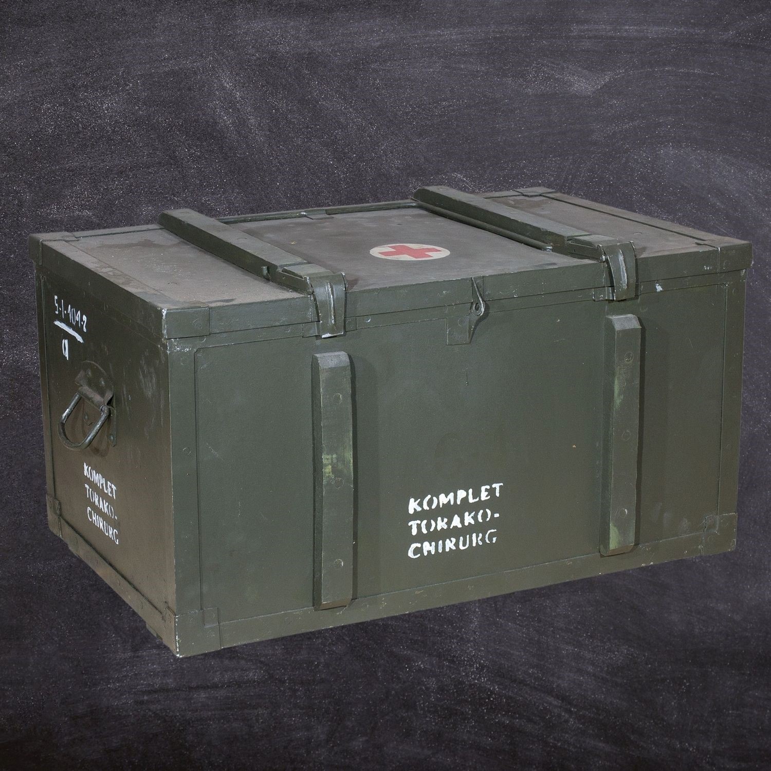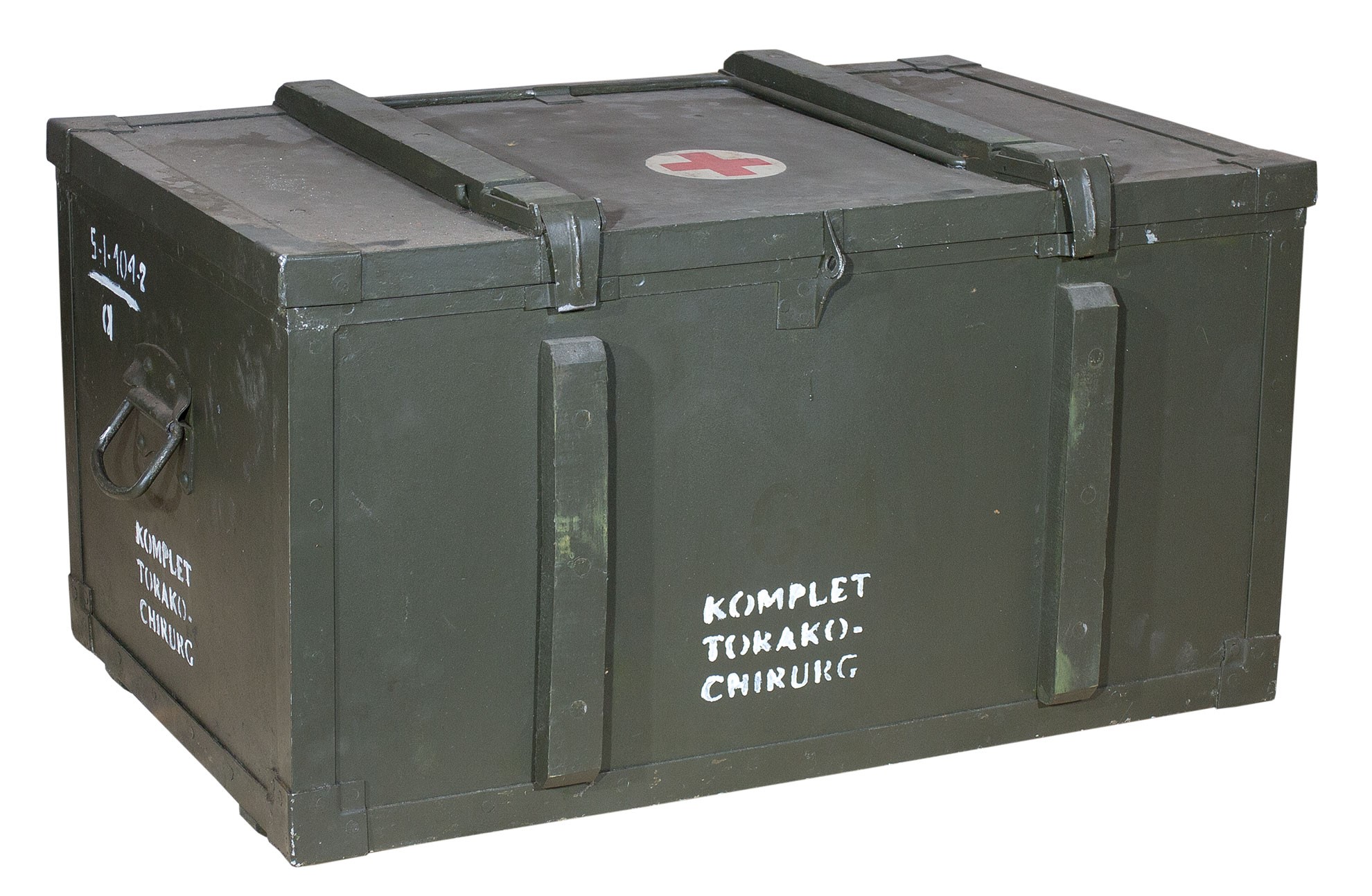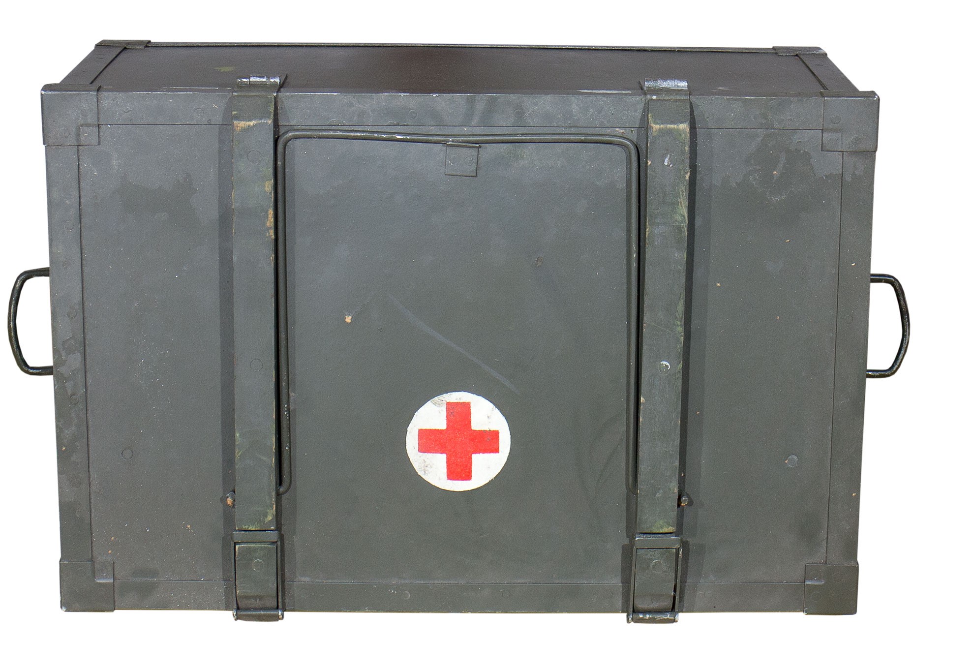Diese ausrangierten Sanitätskisten wurden lediglich zu Übungszwecken benutzt. Sie sind sehr robust und haben eine tollen Vintage Look. Diese Kisten sind für einen vielfachen Einsatzbereich zu verwenden, wie z.B einen Abstelltisch, einer miniBar, Aufbewahrungsbox, Schatztruhe und und und