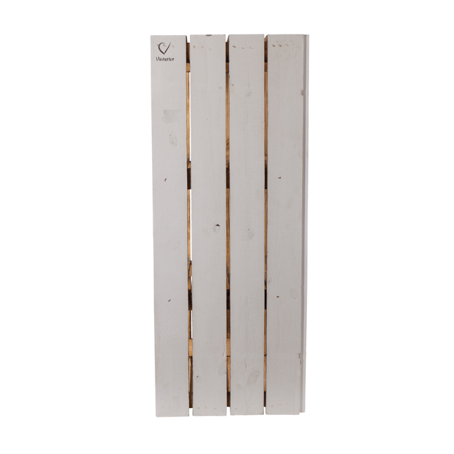 grosses Obstkistenregal “Timo” in Weiß, innen geflammt mit zwei Mittelbrettern geflammt quer
