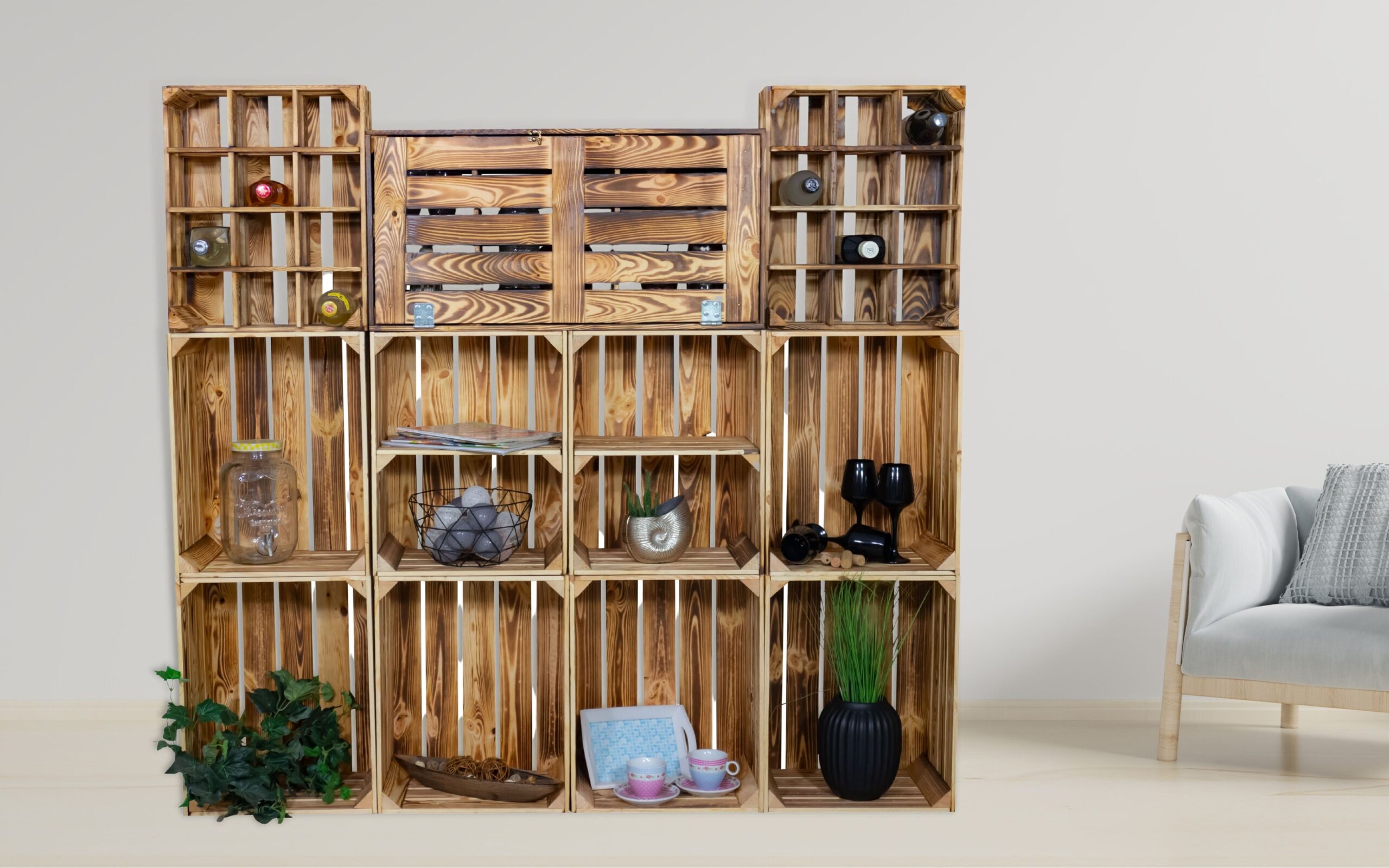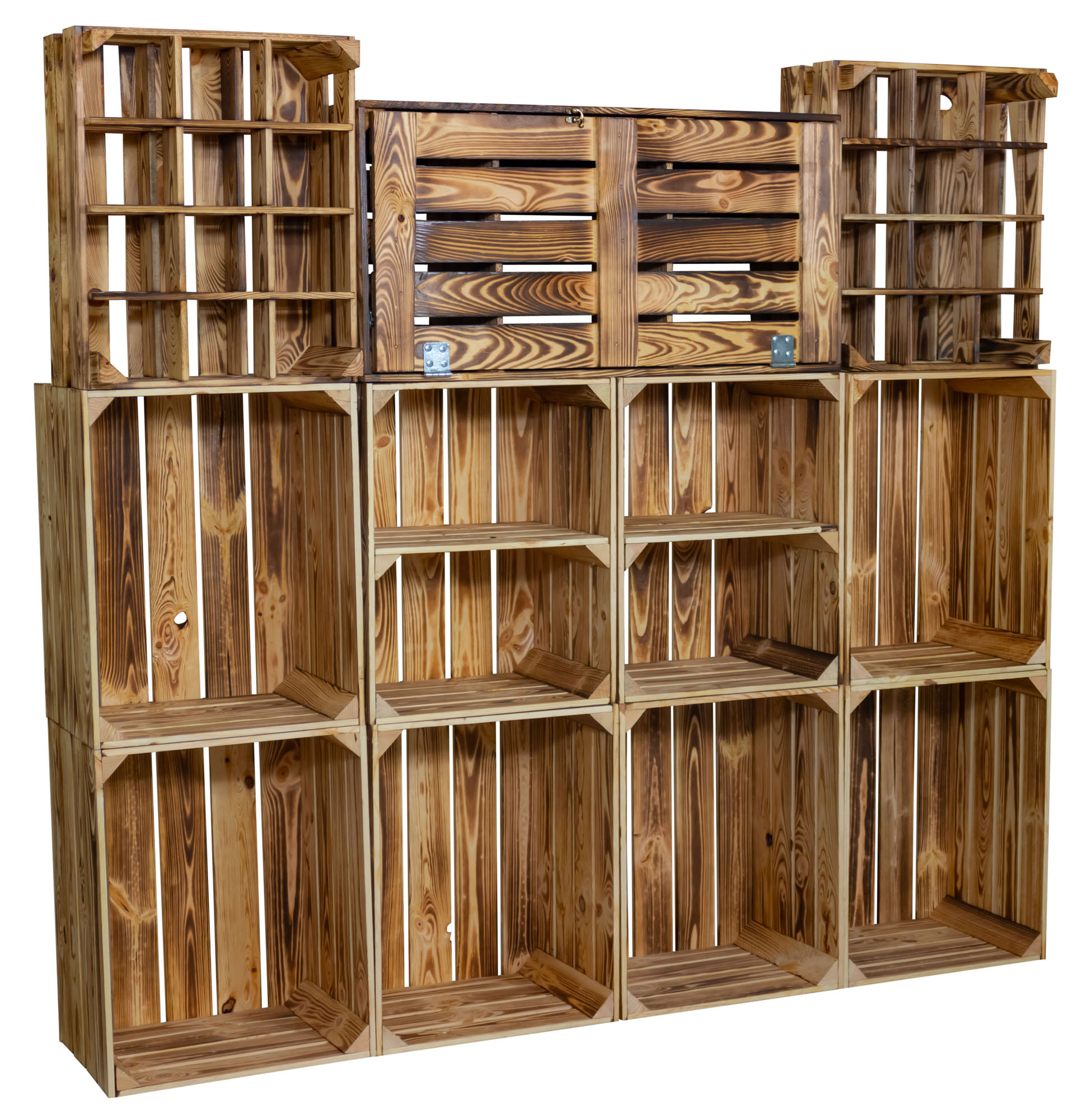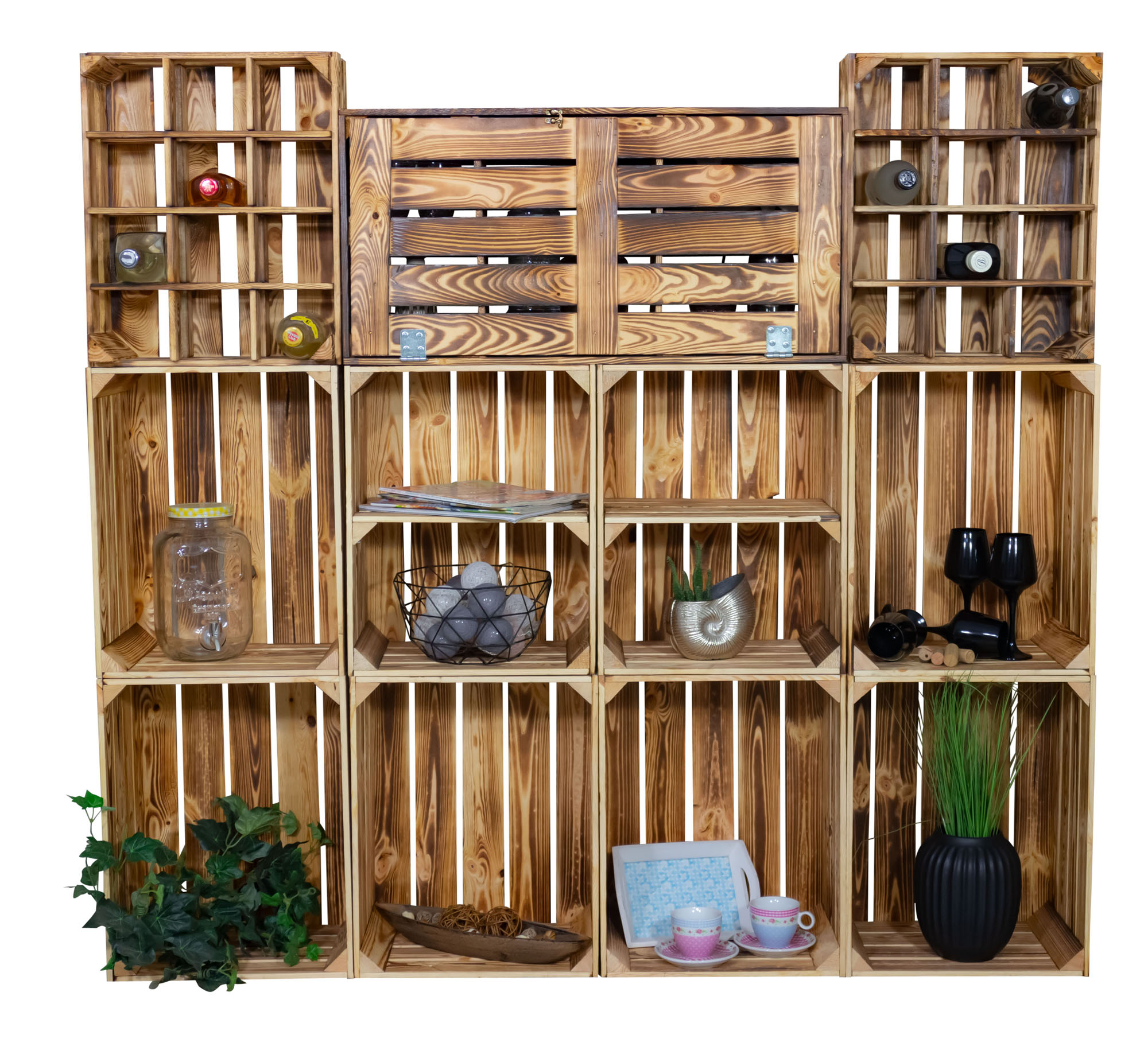 Hausbar “Jack” mit Klappfunktion und Flaschenregal (Geflammt)