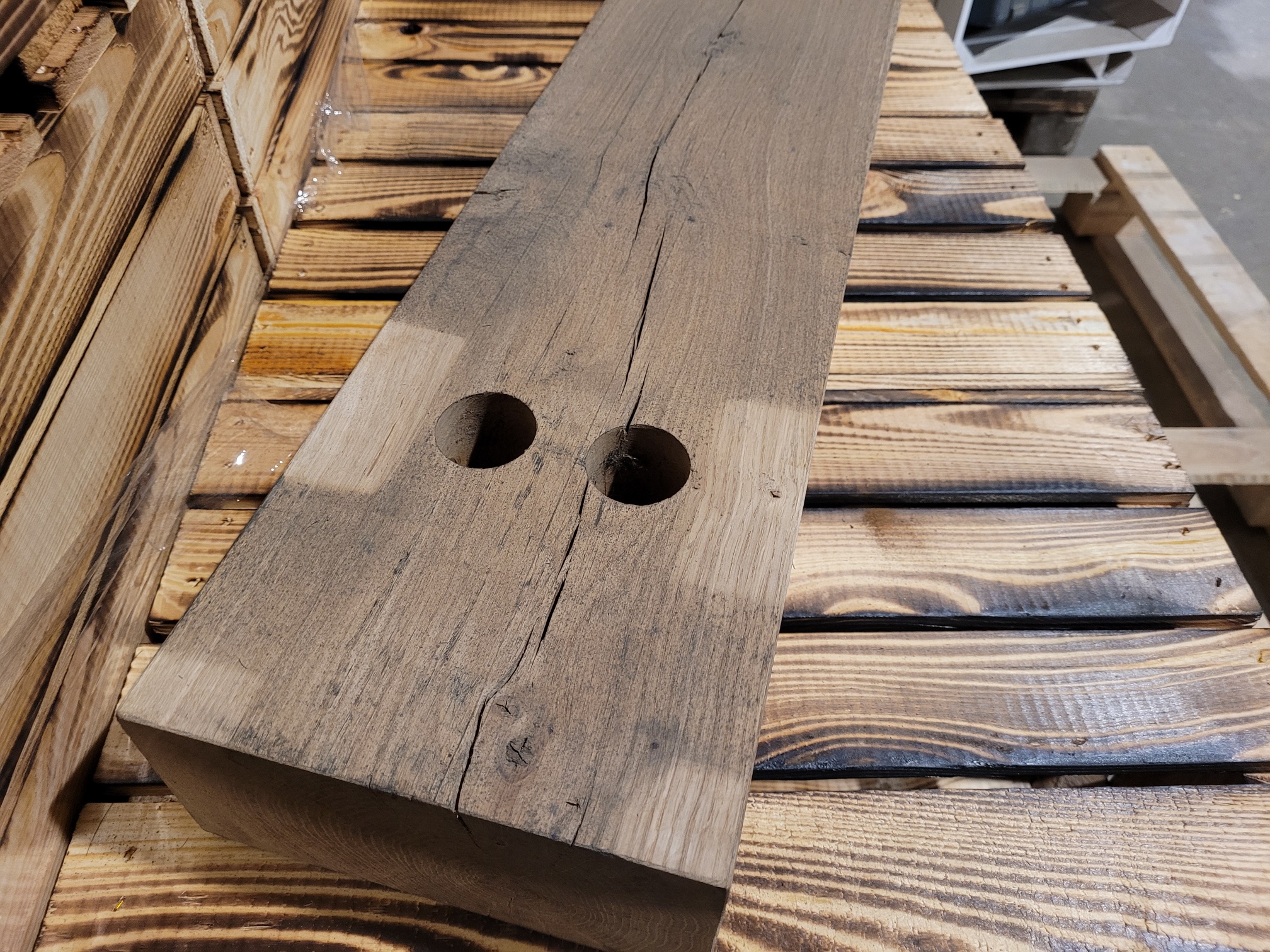 diese alten sehr schweren Eichenbohlen wurden recycelt und stehen nun einem neuen Bauprojekt nichts im Wege,