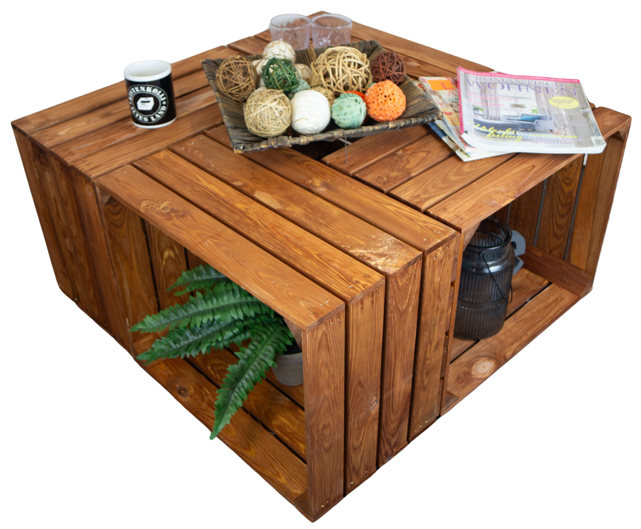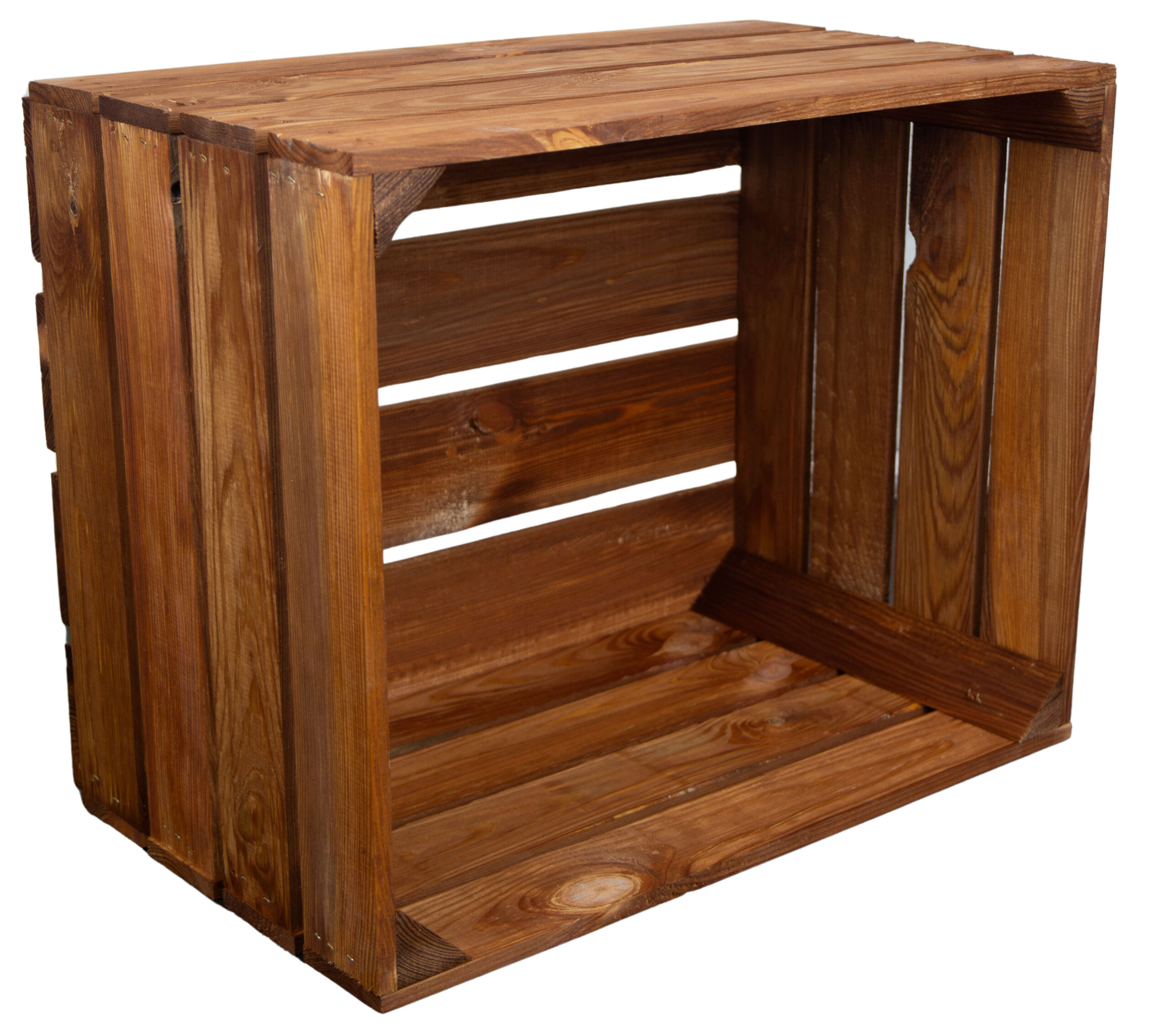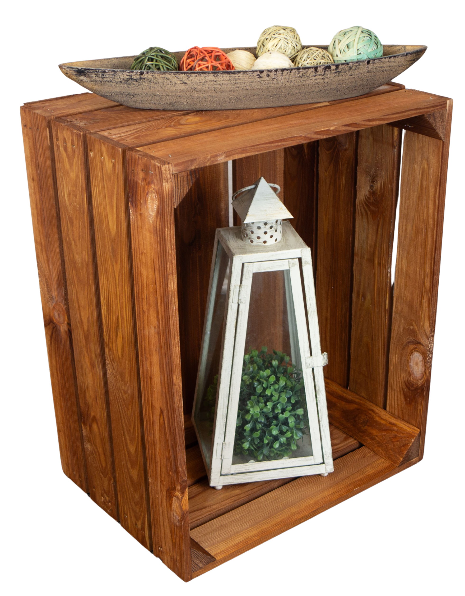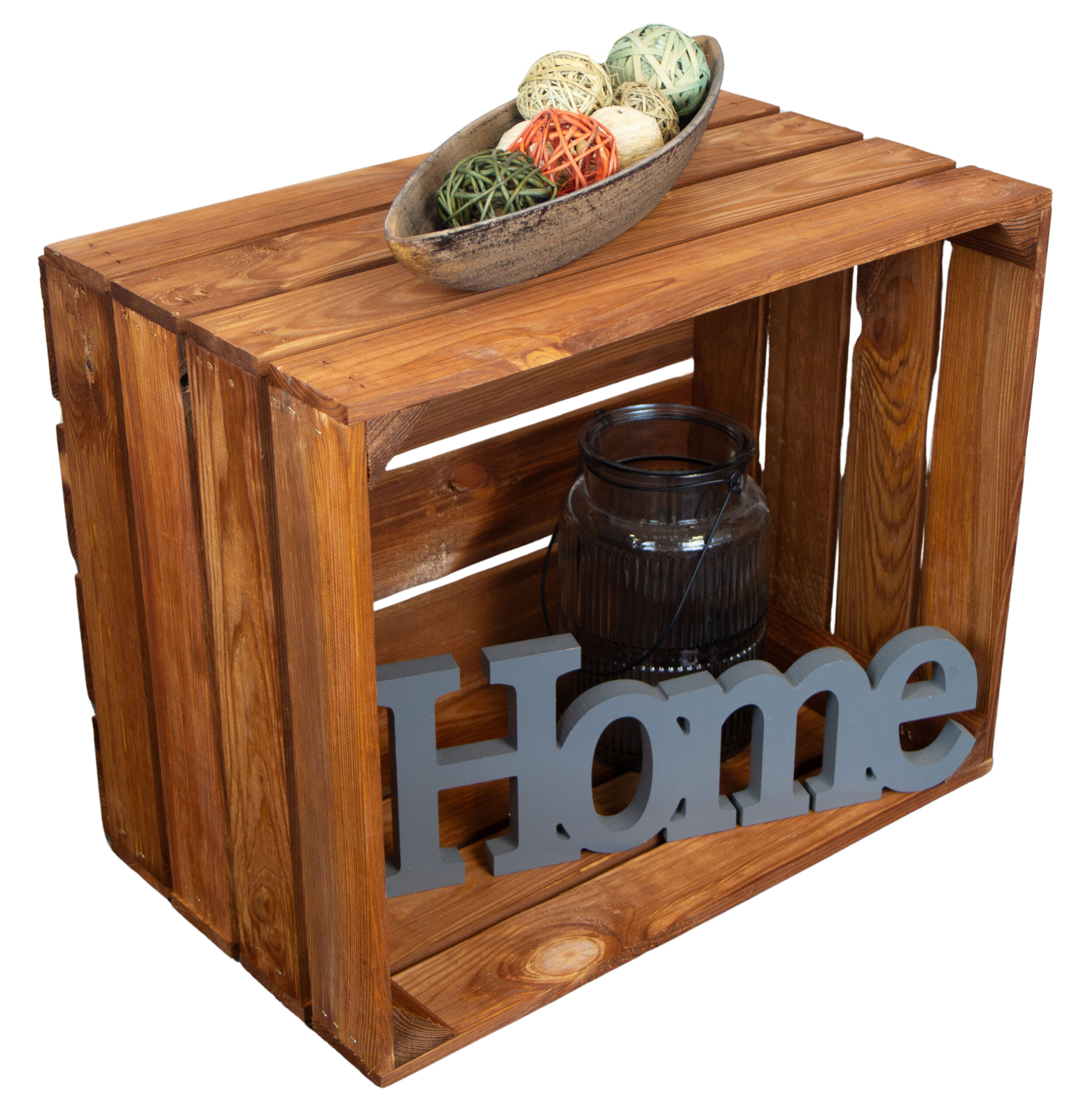 Unsere Kisten in ocker sind sorgfältig lasiert, was ihnen ein warmes, rustikales Braun verleiht, ohne die natürliche Schönheit des Holzes zu verbergen. Die Holzmaserung bleibt deutlich sichtbar und verleiht jedem Stück seinen eigenen Charakter.