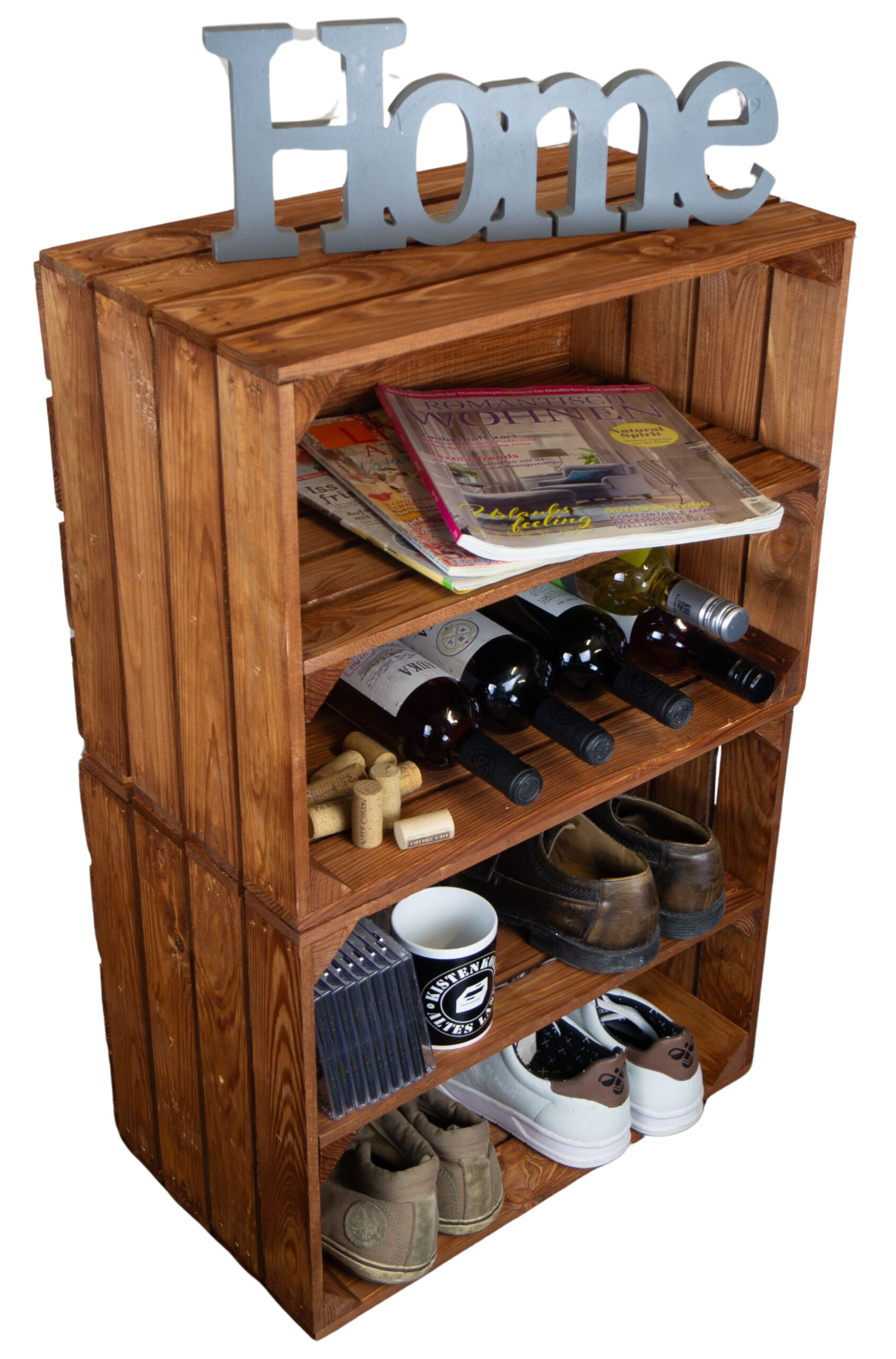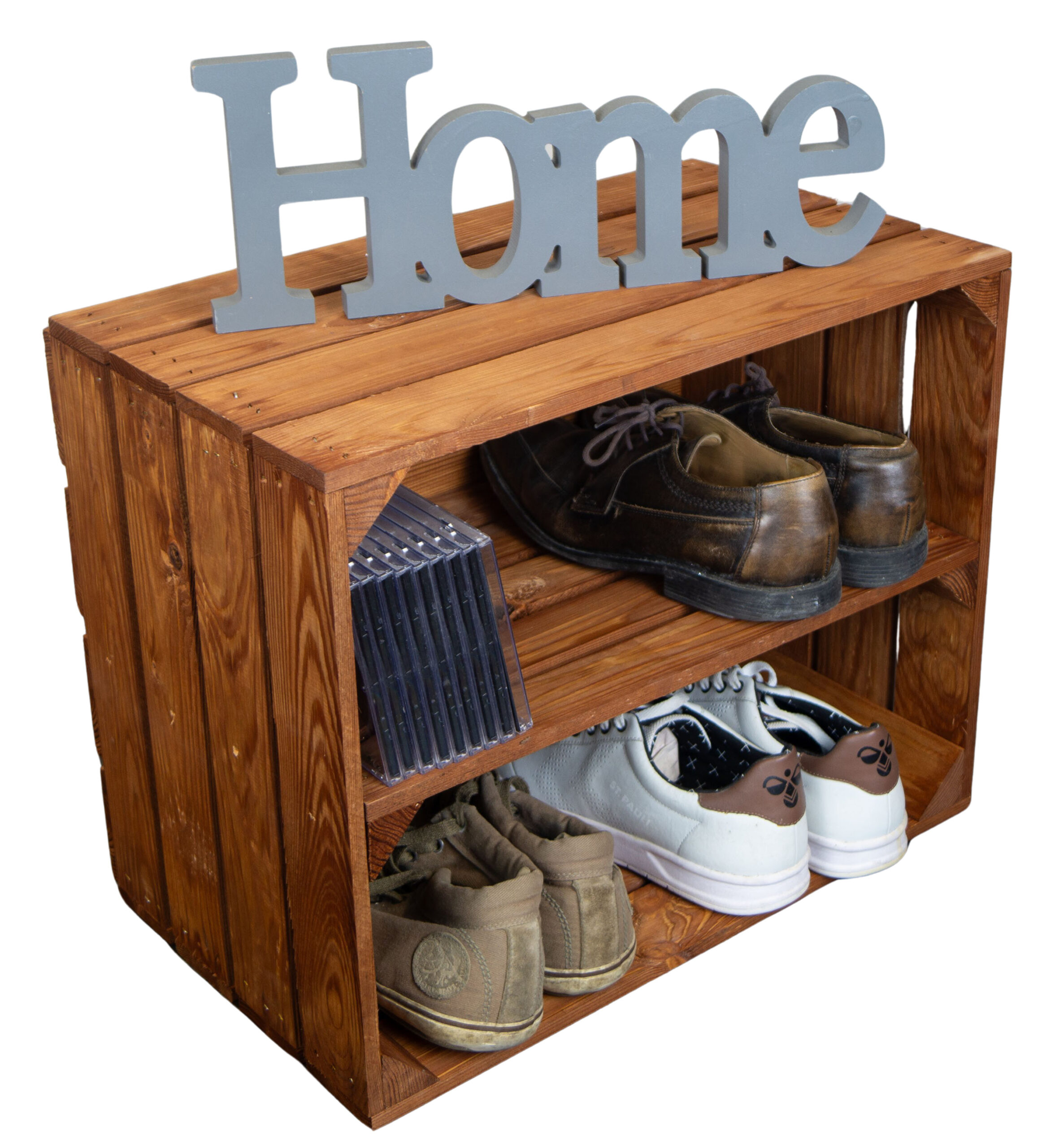 Holzkiste “Johanna” mit Mittelbrett längs lasiert in ocker 50x40x30cm Schuhregal Holzkiste Weinkiste Apfelkiste Regalkiste