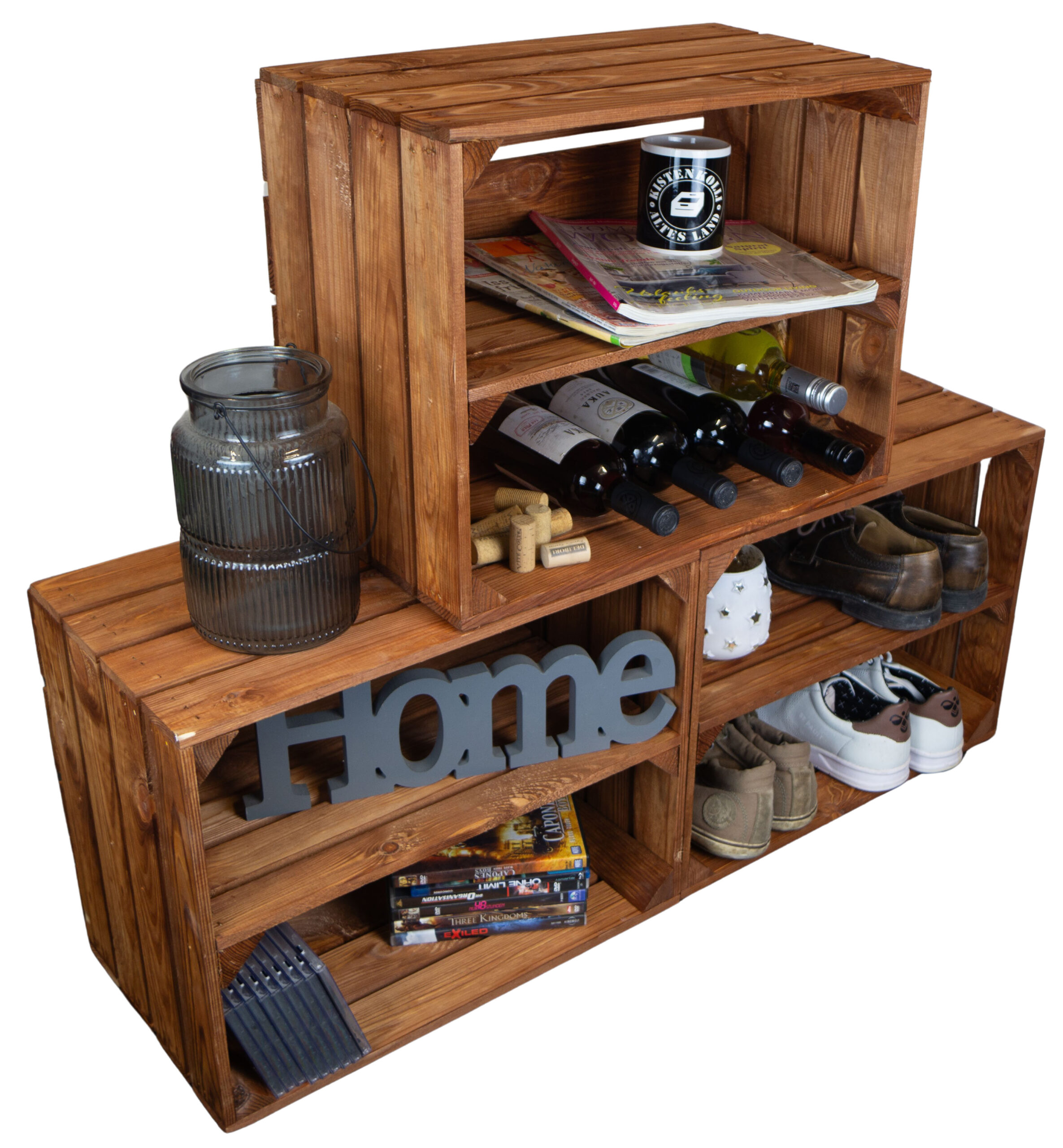 Unsere Kisten in ocker sind sorgfältig lasiert, was ihnen ein warmes, rustikales Braun verleiht, ohne die natürliche Schönheit des Holzes zu verbergen. Die Holzmaserung bleibt deutlich sichtbar und verleiht jedem Stück seinen eigenen Charakter.