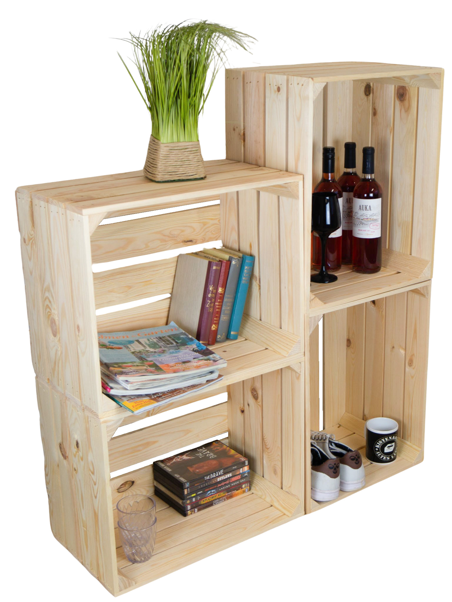 Die neuen Holzkisten sind ideal zum Möbelbau, zum Regalbau. Ihren Ideen sind keine Grenzen gesetzt.