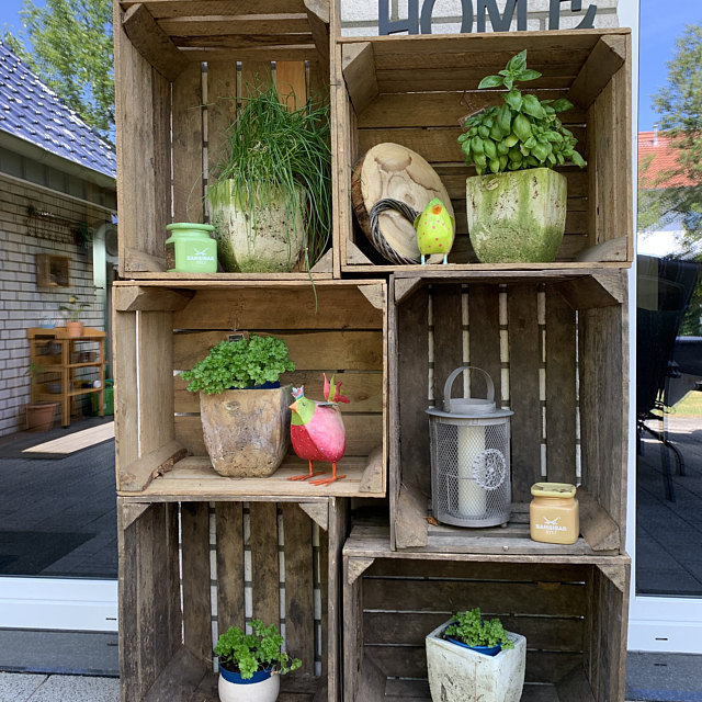 Die Apfelkisten stammen aus dem Alten Land (dem größten zusammenhängenden Obstbaugebiet Europas) und wurden Jahrzehntelang zur Apfelernte eingesetzt. Sie haben eine schöne Patina angesetzt und weisen Gebrauchsspuren auf. und sind defekt! Kisten besitzen keine Aufschriften