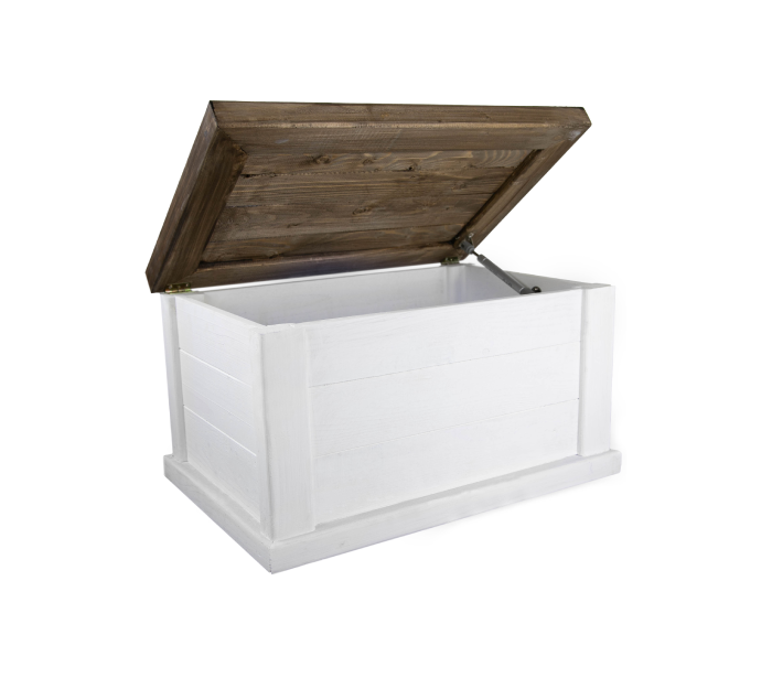 Massive Holztruhe UK weiss braun mit Zylinder 60x40x34cm