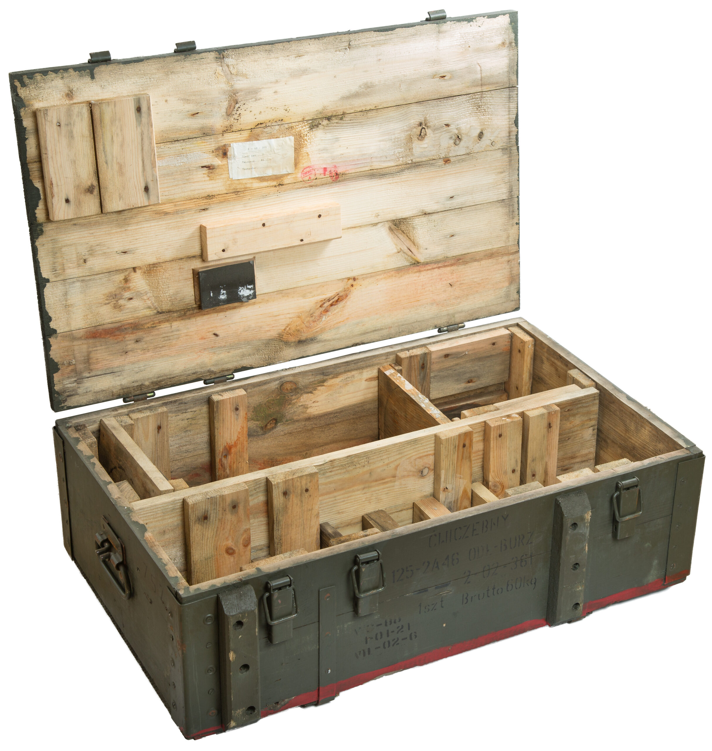 Diese alten Kisten wurden früher zur Muntionslagerung – und Transport benutzt. Die Kisten sind zum Teil 30 Jahre alt – wurden aber immer gut gelagert und sind daher noch in einer sehr guten Qualität.