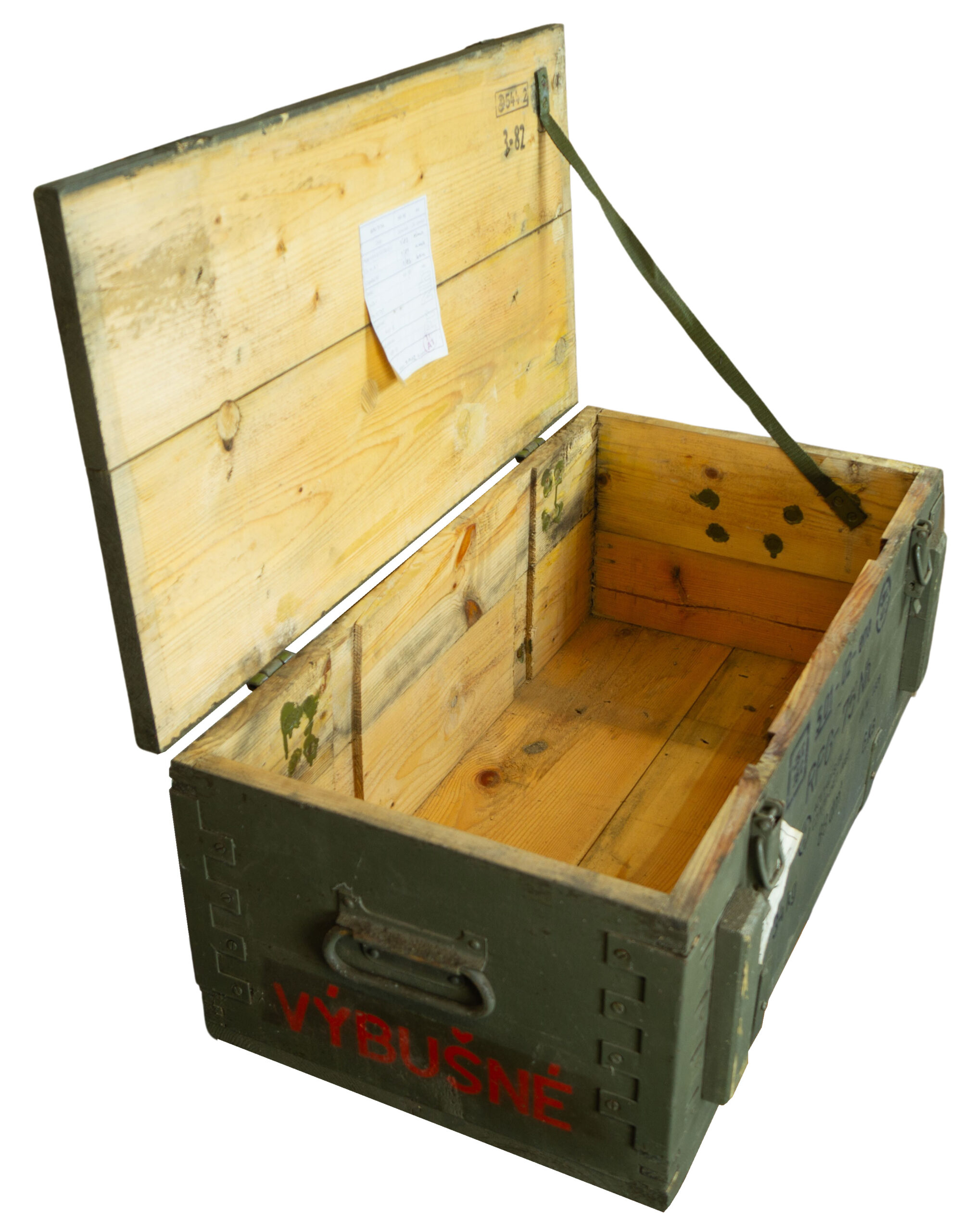 Die alten Munitionskisten haben wir aus alten Militärbeständen aufgekauft, um Ihnen einen ruhigen Lebensabend zu ermöglichen.