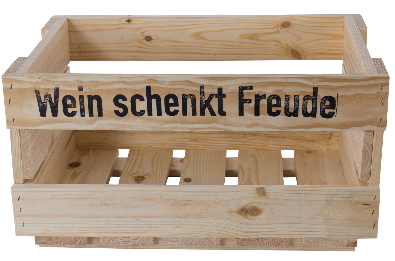 Neue Weinkisten “Wein schenkt Freude” Natur ca 46 x 30,5 x 24cm Obstkiste Holzkiste Regalkiste Weinlagerung Weinregal