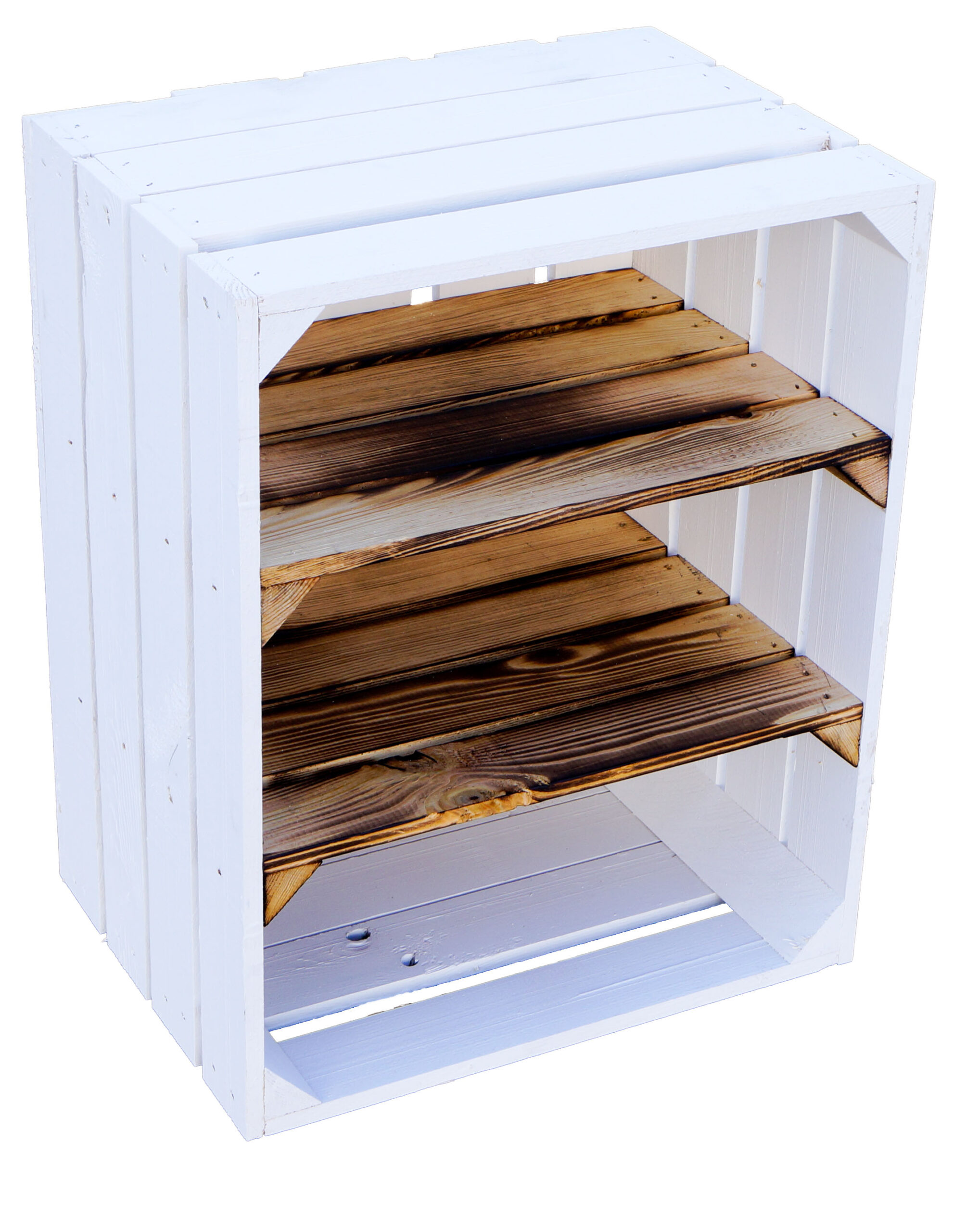 Neue & gehobelte massive Obstkiste Johanna weiß bemalt mit zweif geflammten Mittelbrettern