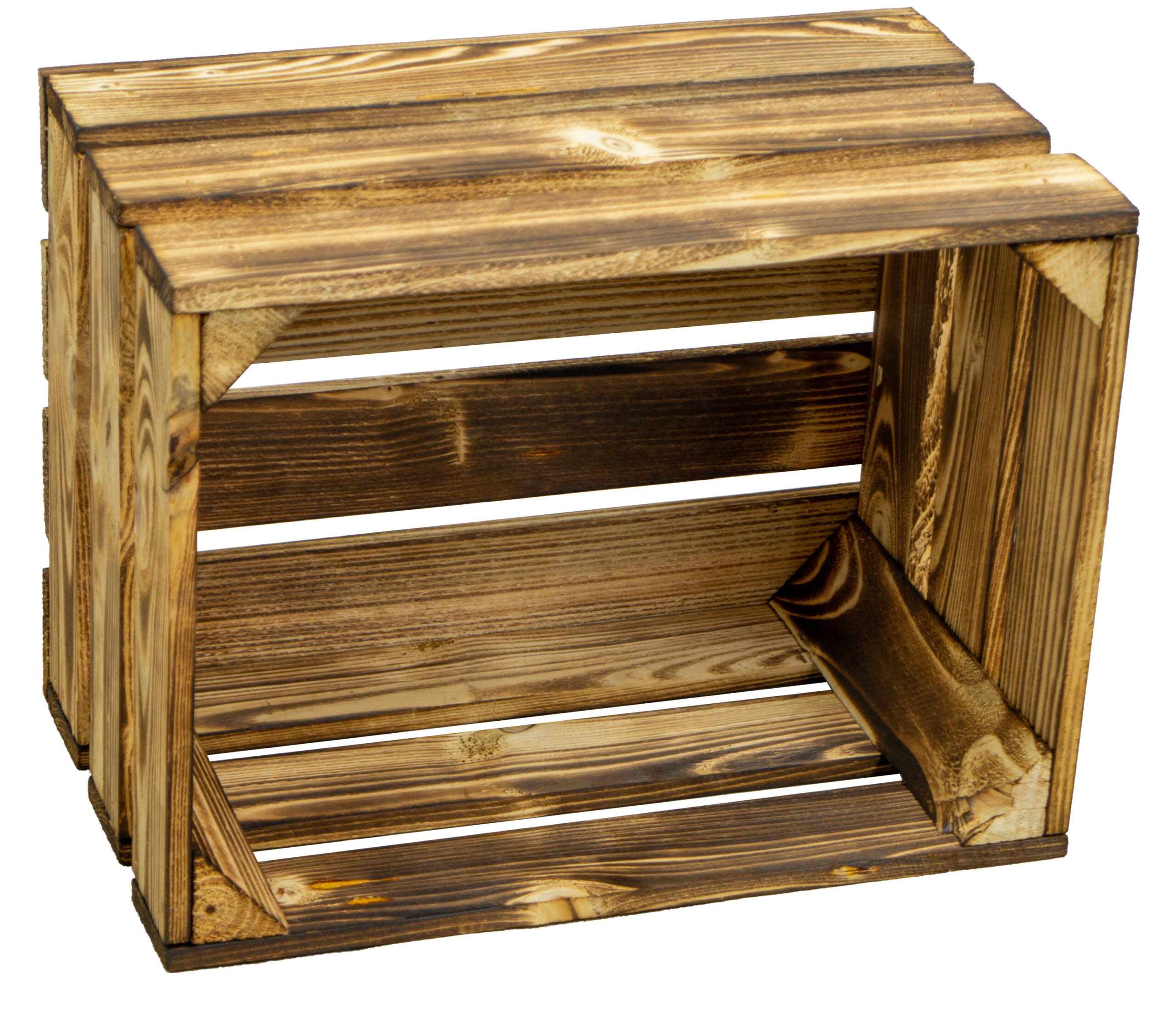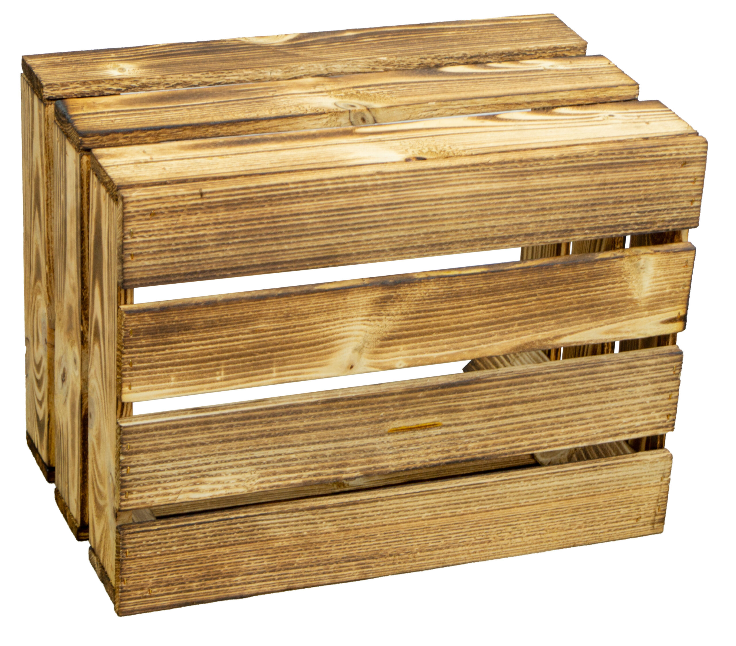 • mit einem Brenner flambiert. Achtung: Durch den Ruß kann die Kiste abfärben – daher empfehlen wir die Kiste mit einem feuchten Tuch zu reinigen!