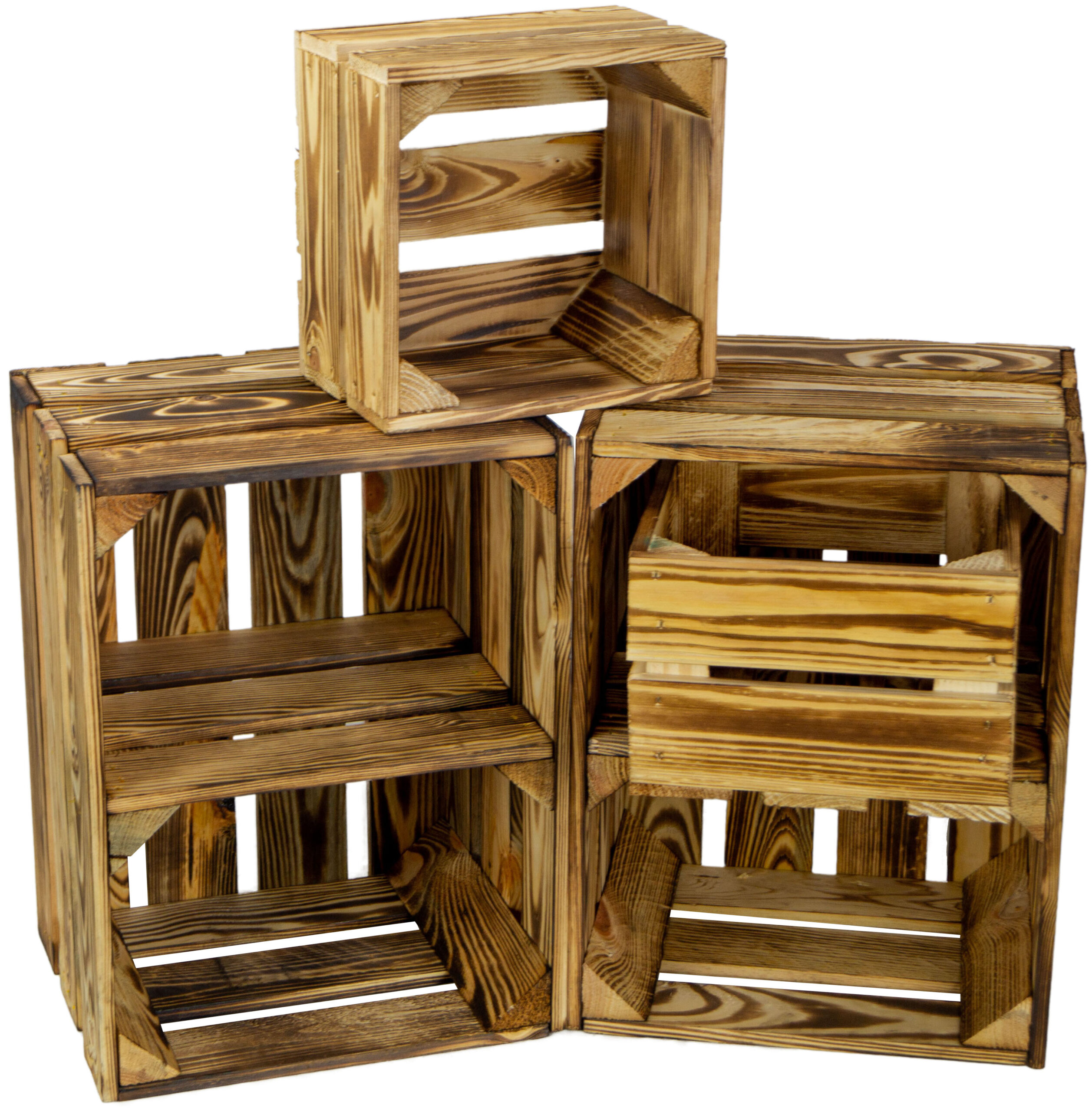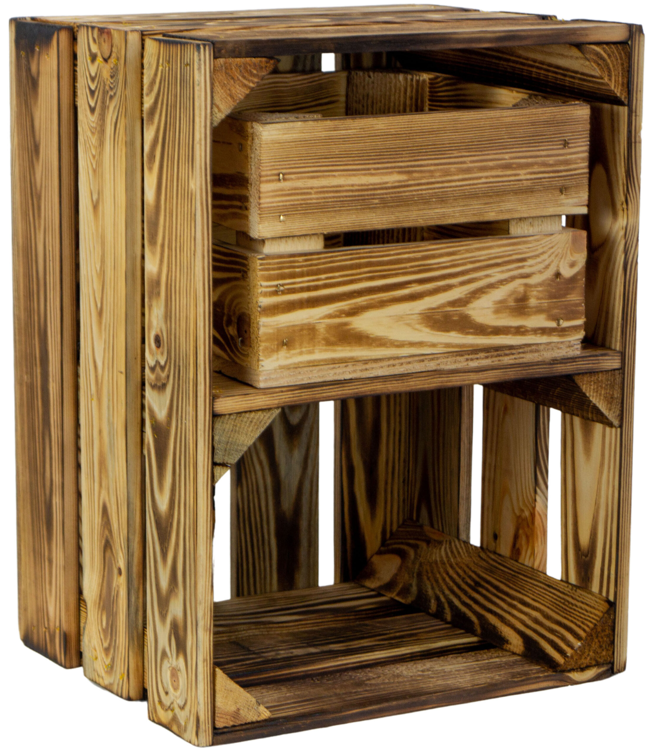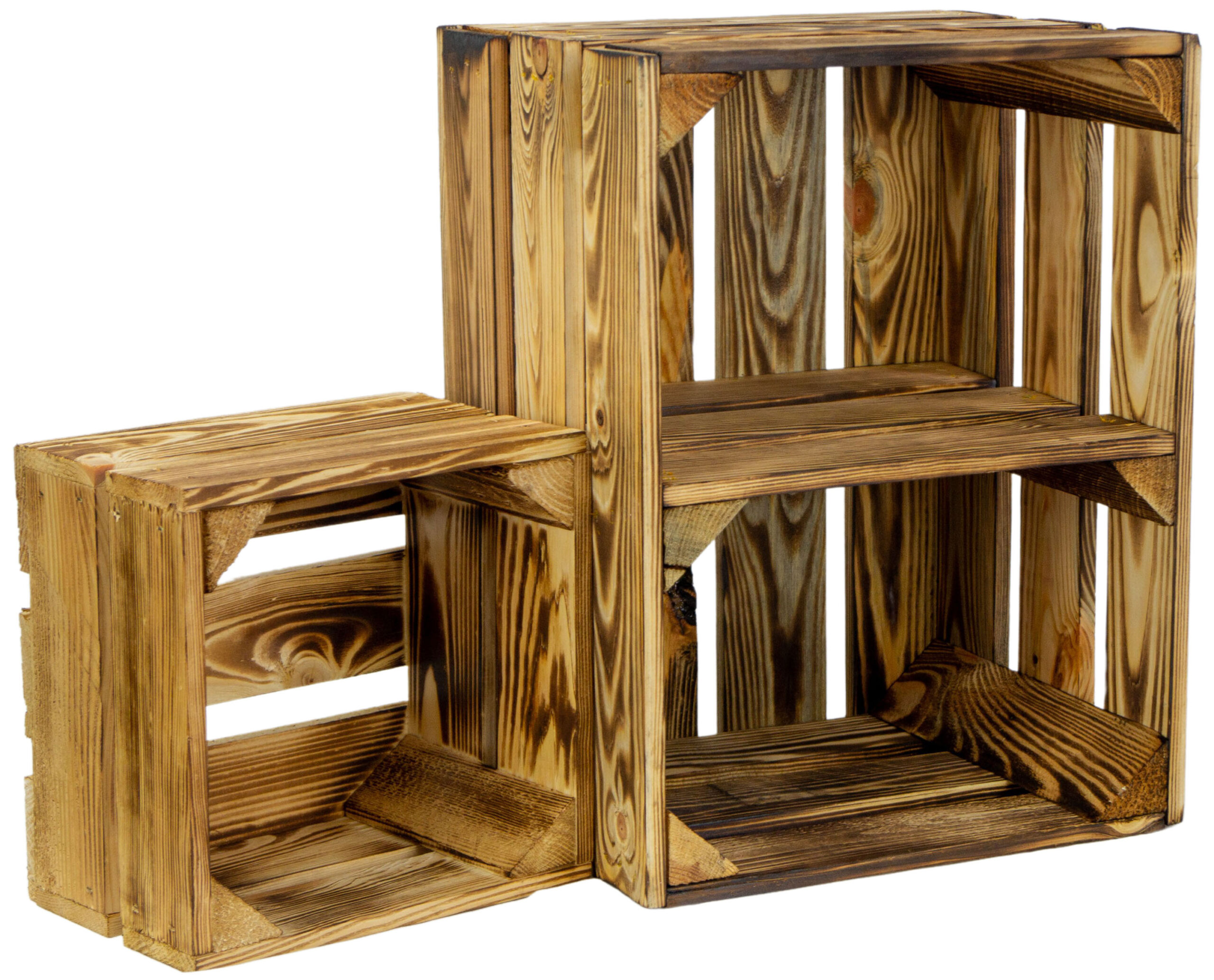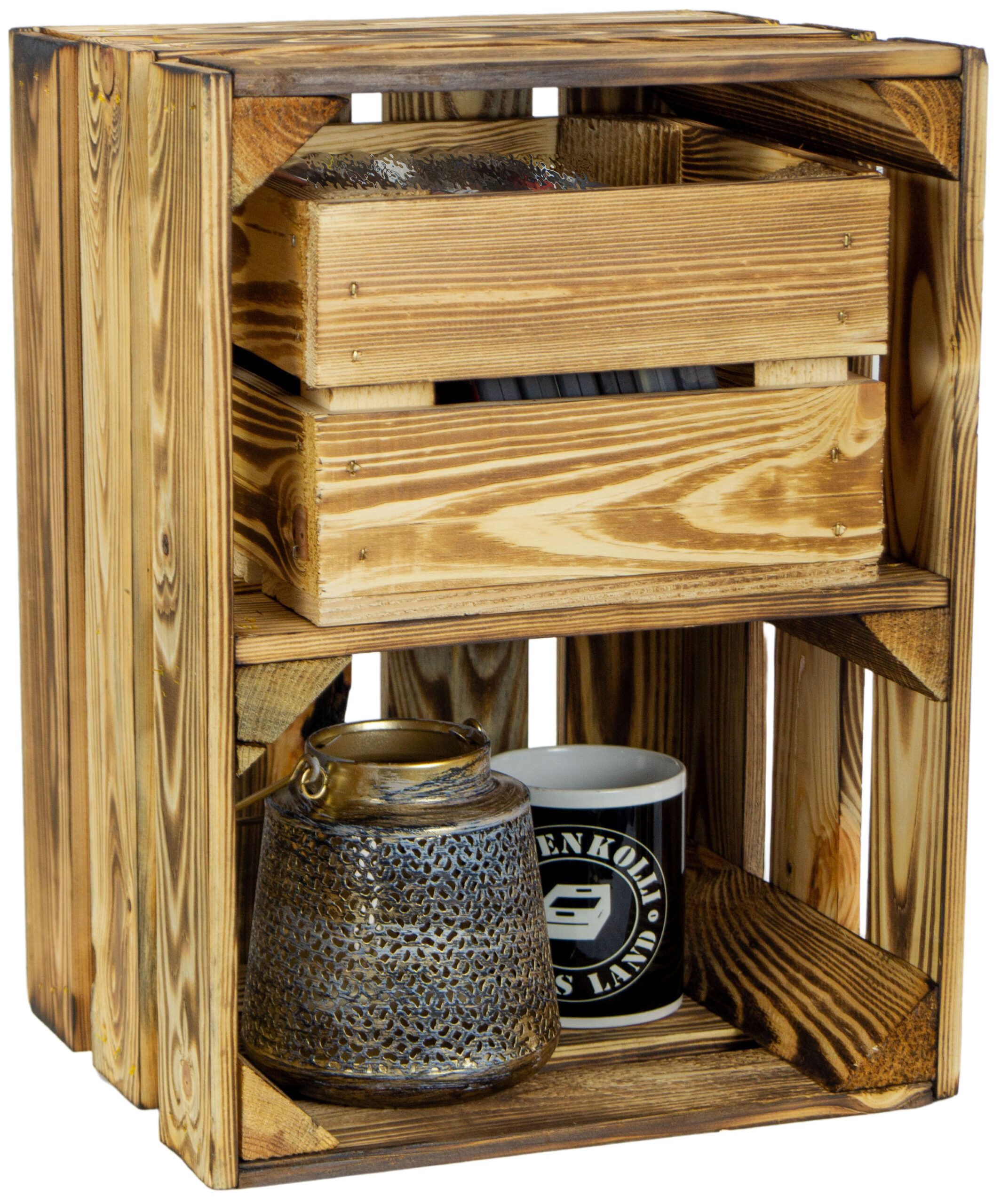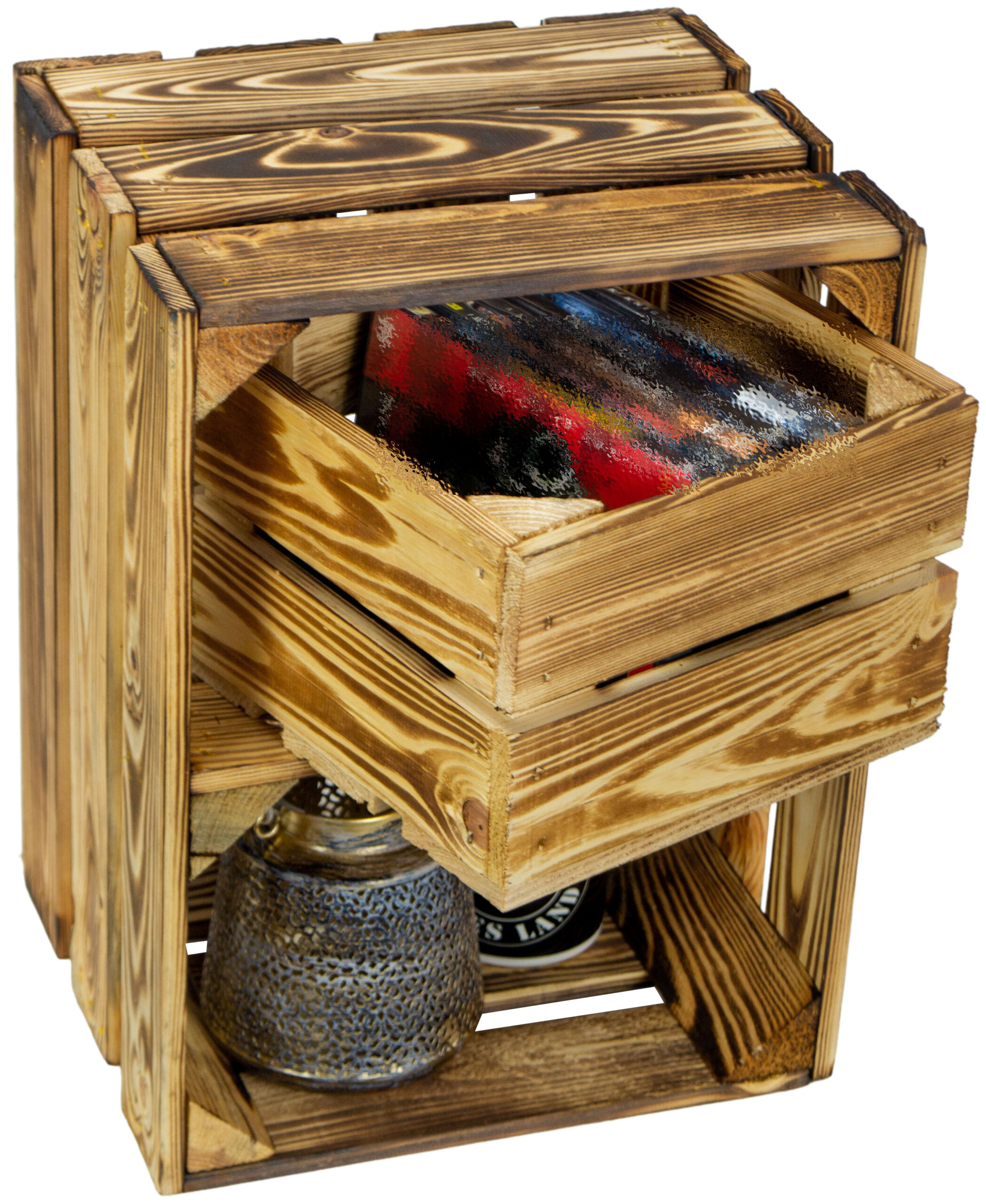 Obstkiste Belotta geflammt Weinkiste Holzkiste Mini-Regal Schubladenregal Aufbewahrungskiste