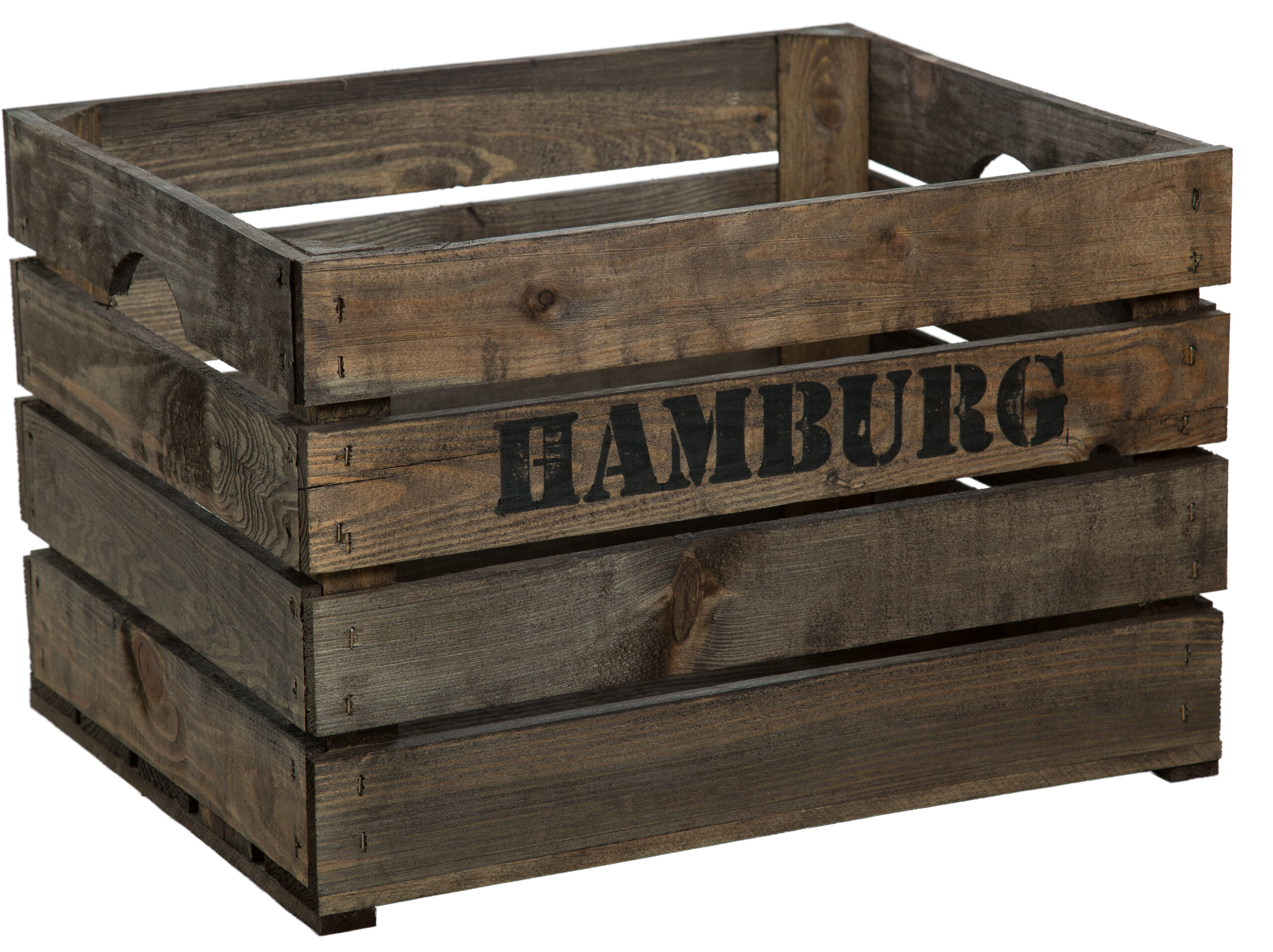 Durch die massive Bauweise der Kiste eigenet Sie sich perfekt, um ein schönes Regals zu bauen, die dunkle Lasierung lässt die Maserung des Holzes besonders hervortreten.