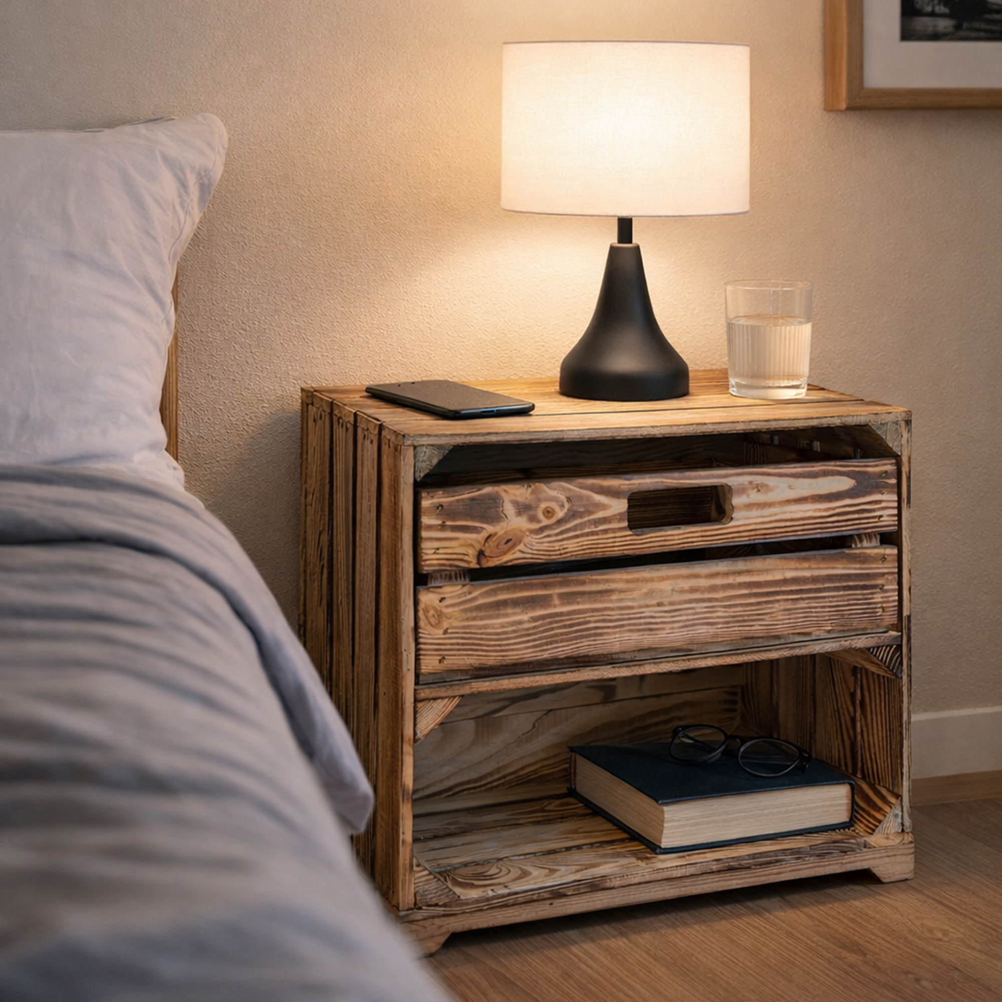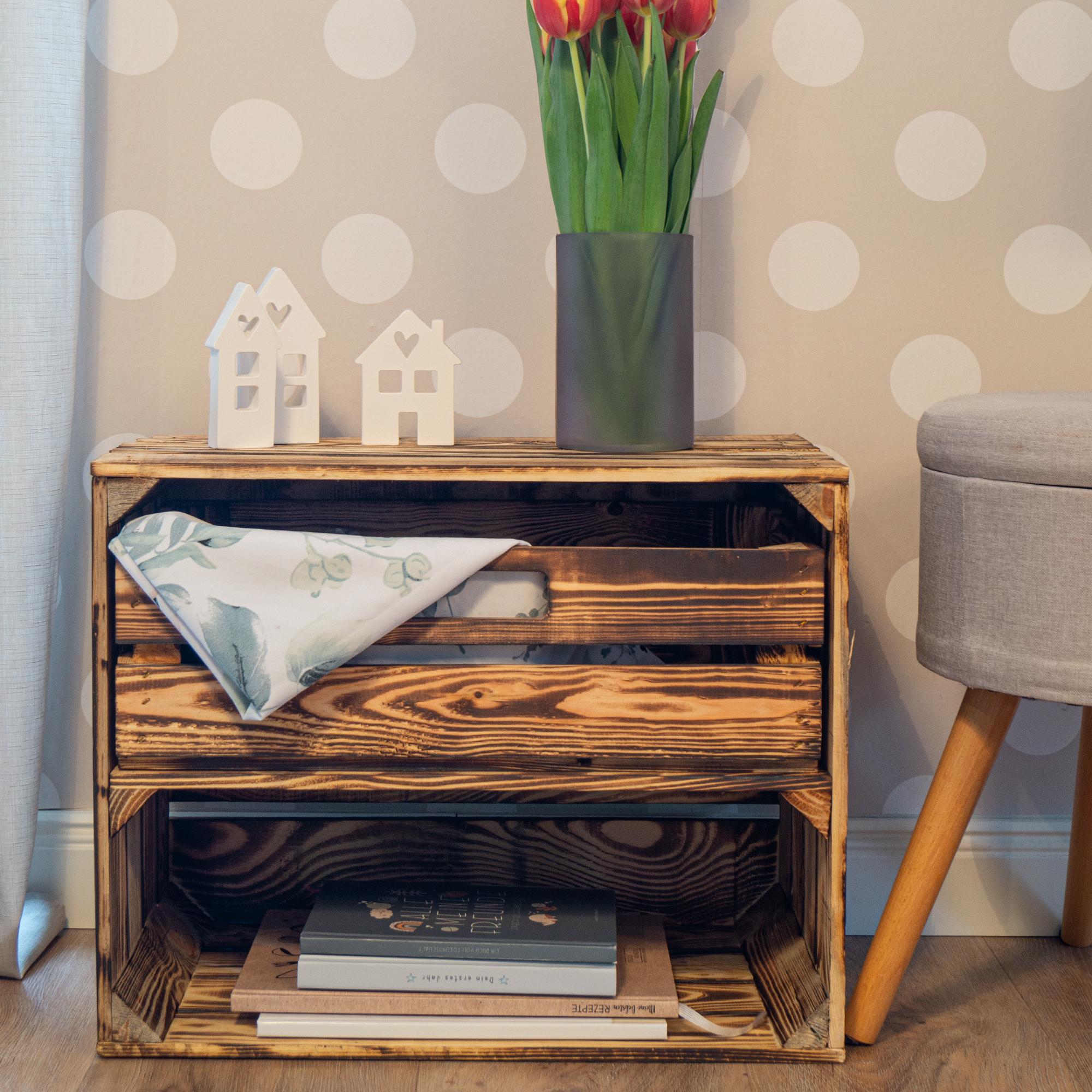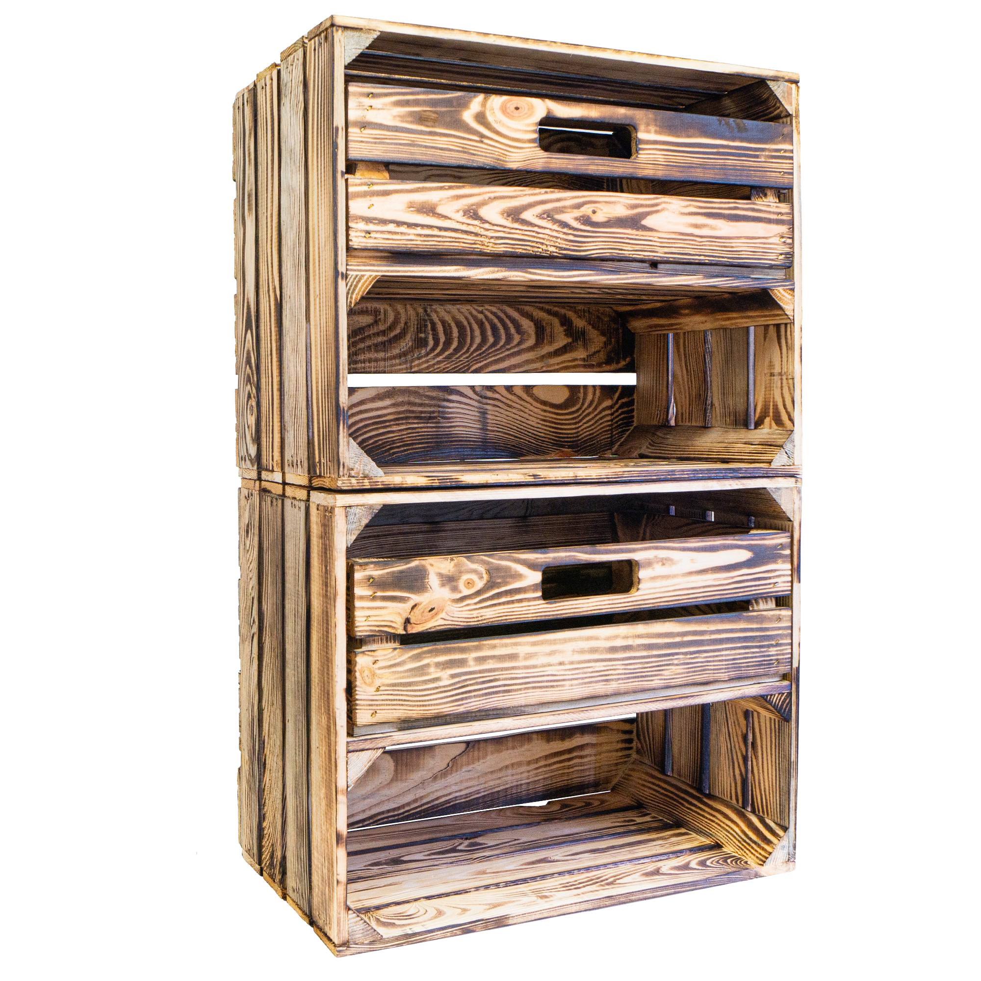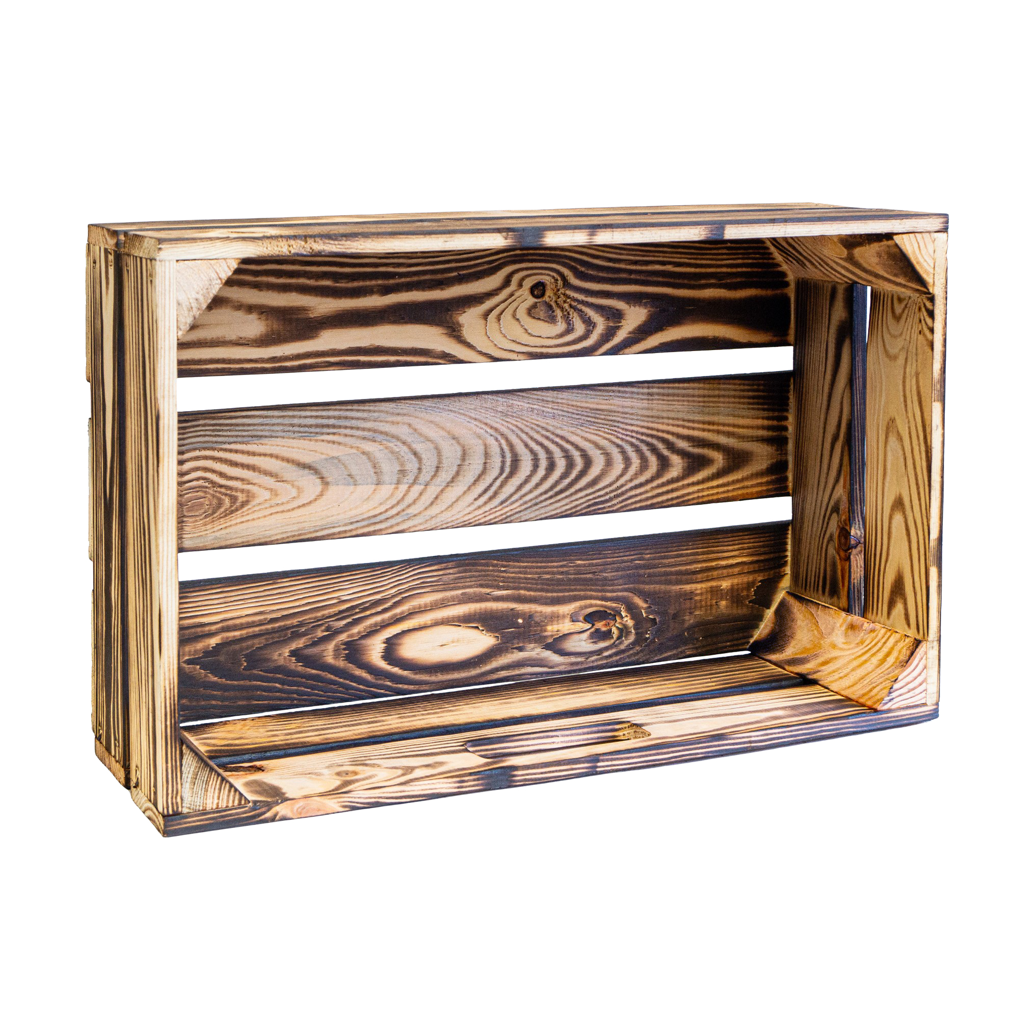 Achtung: Geflammte Kisten: Durch das abflammen der Kiste ensteht Russ der natürlich vor Gebrauch entfernt werden sollte.