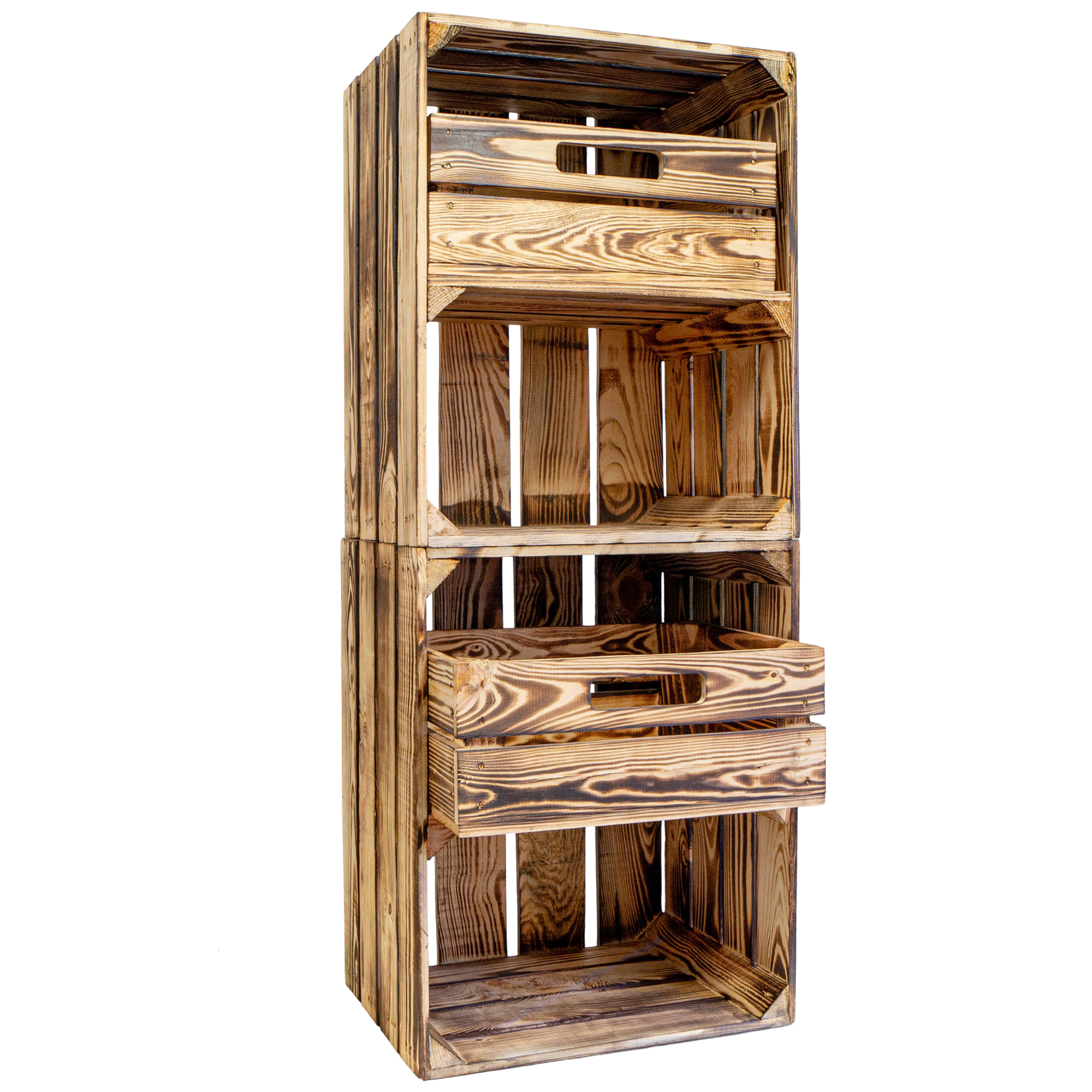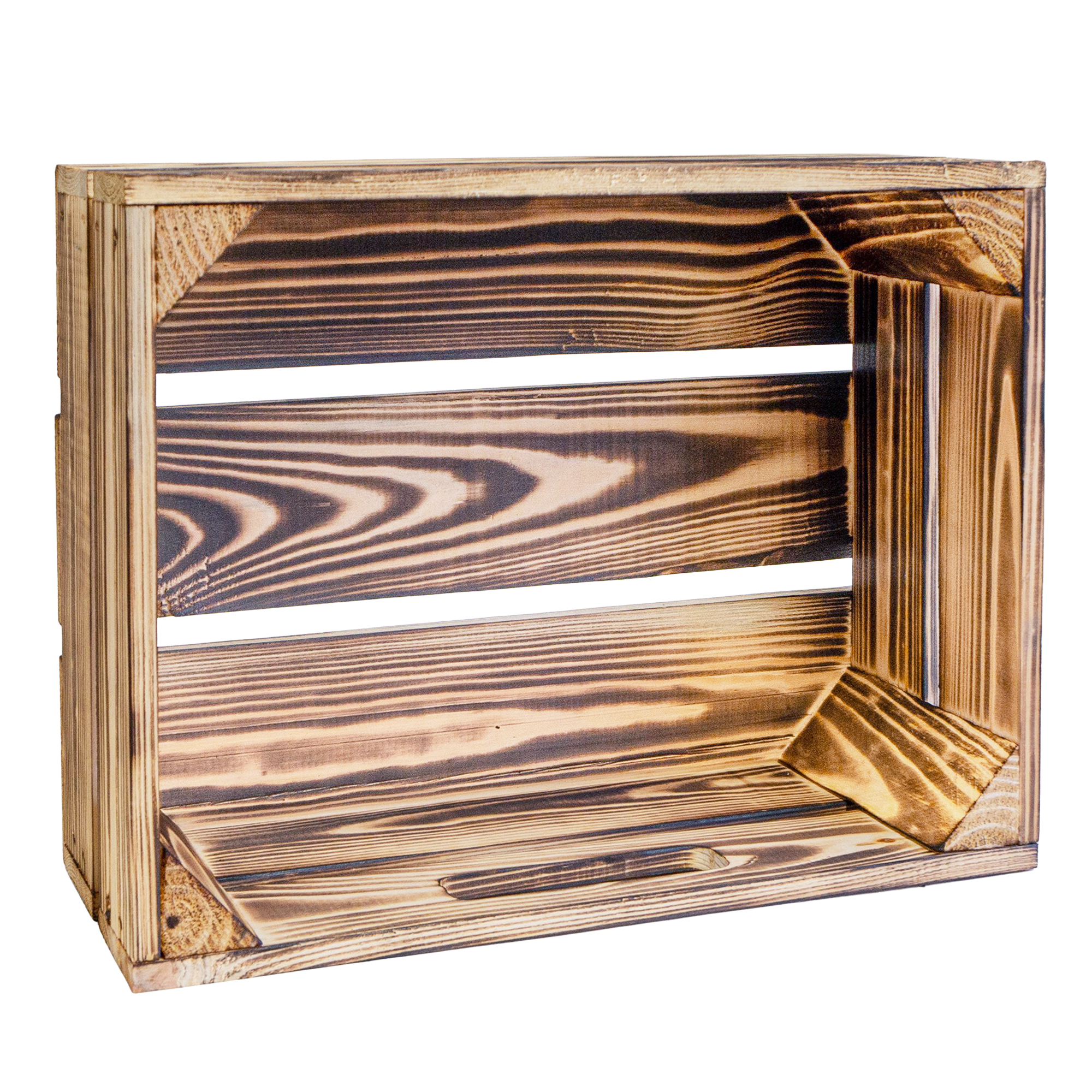 Achtung: Geflammte Kisten: Durch das abflammen der Kiste ensteht Russ der natürlich vor Gebrauch entfernt werden sollte.