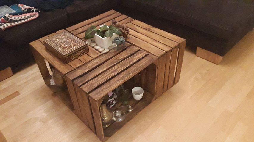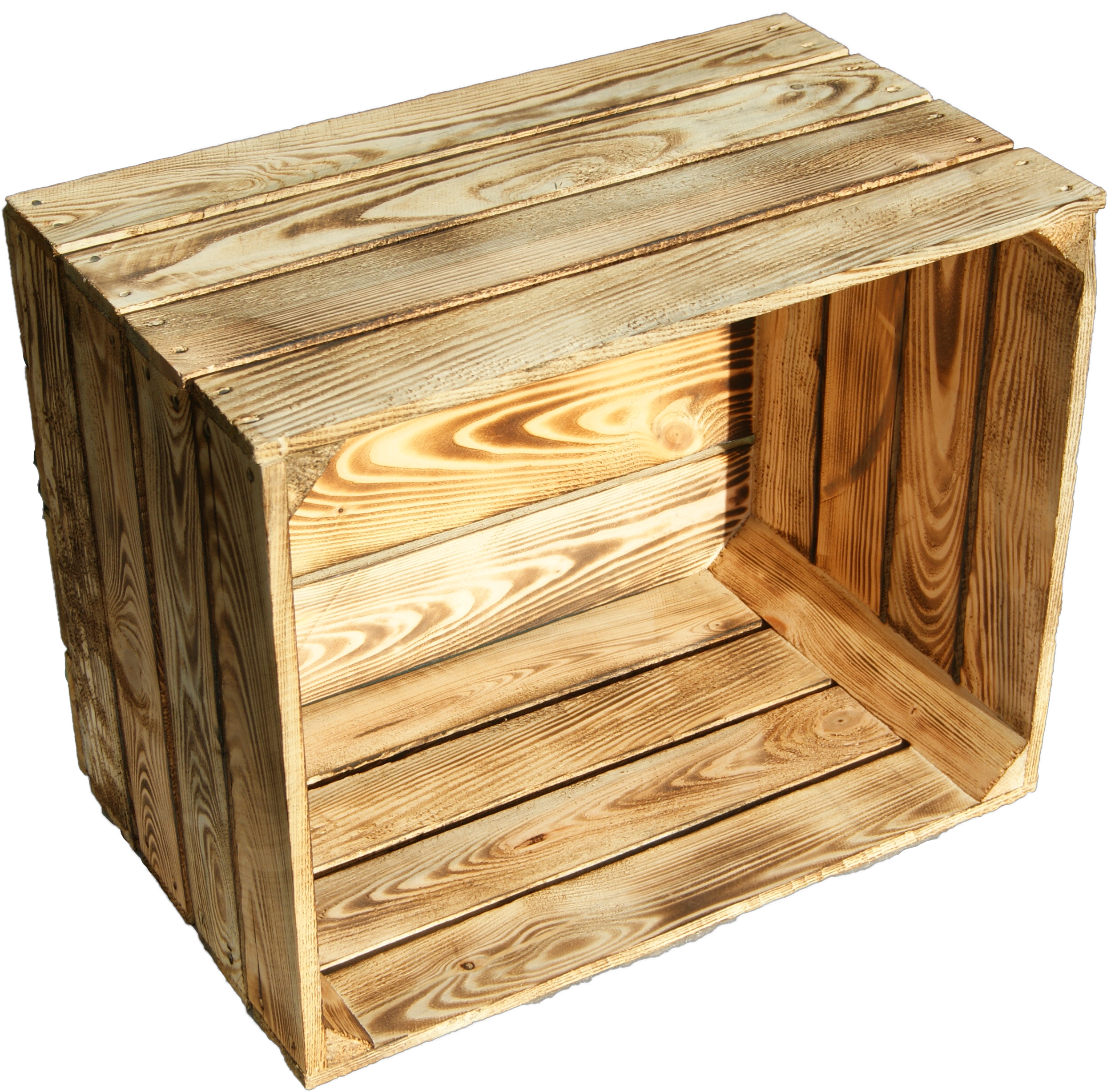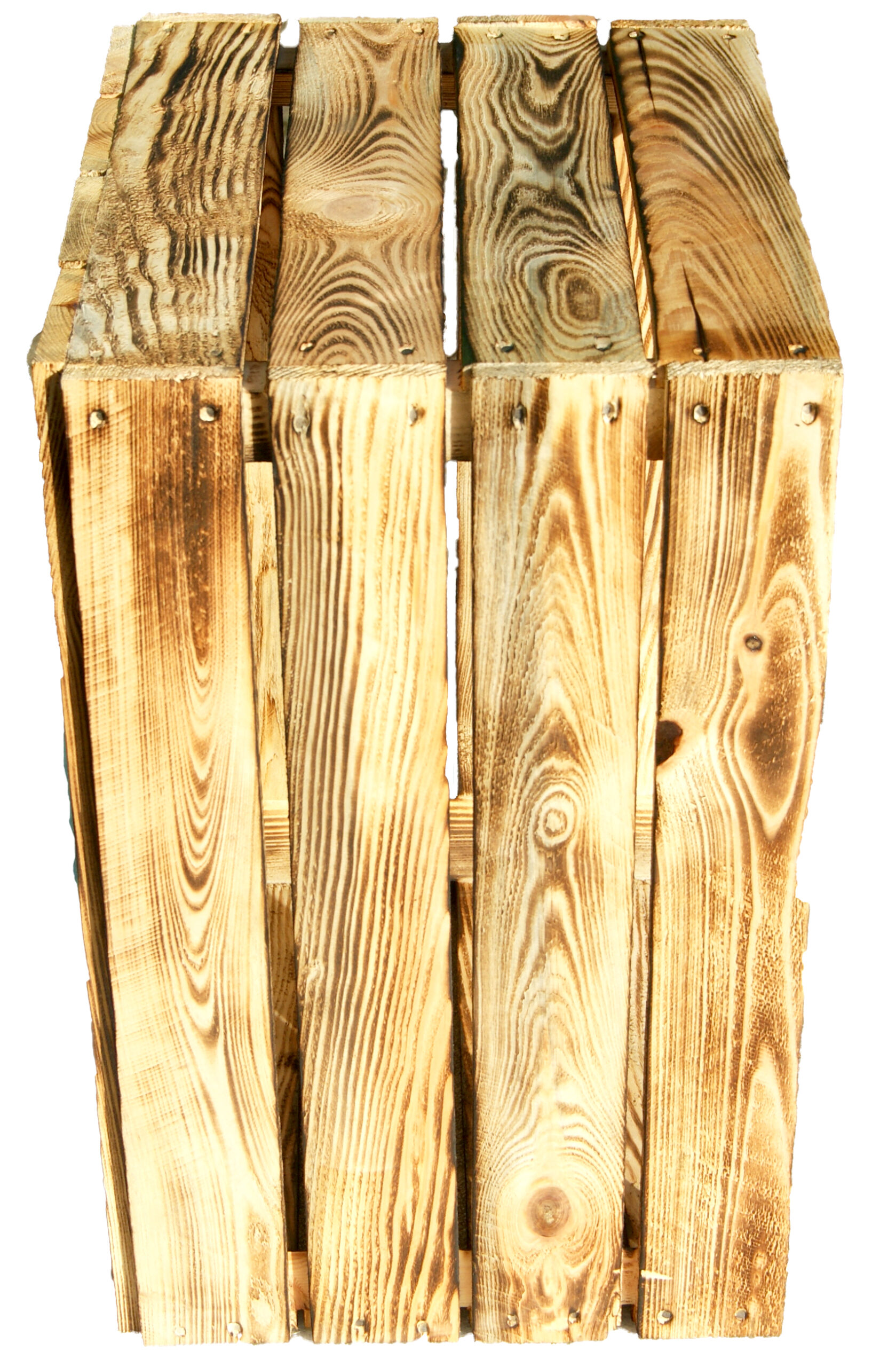 Diese massiven Apfelkisten sind bereits gebraucht und wurden mit einem Brenner "flambiert" und haben deshalb eine ungewöhnliche, aber sehr schöne Struktur!