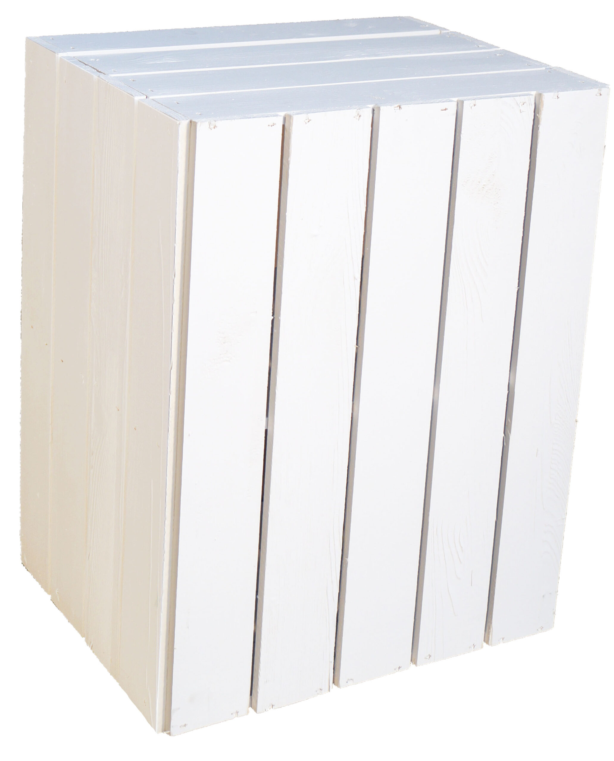 Die Kisten sind NEU und wurden weiß lackiert und mit einem Mittelbrett (breite Seite) versehen.
