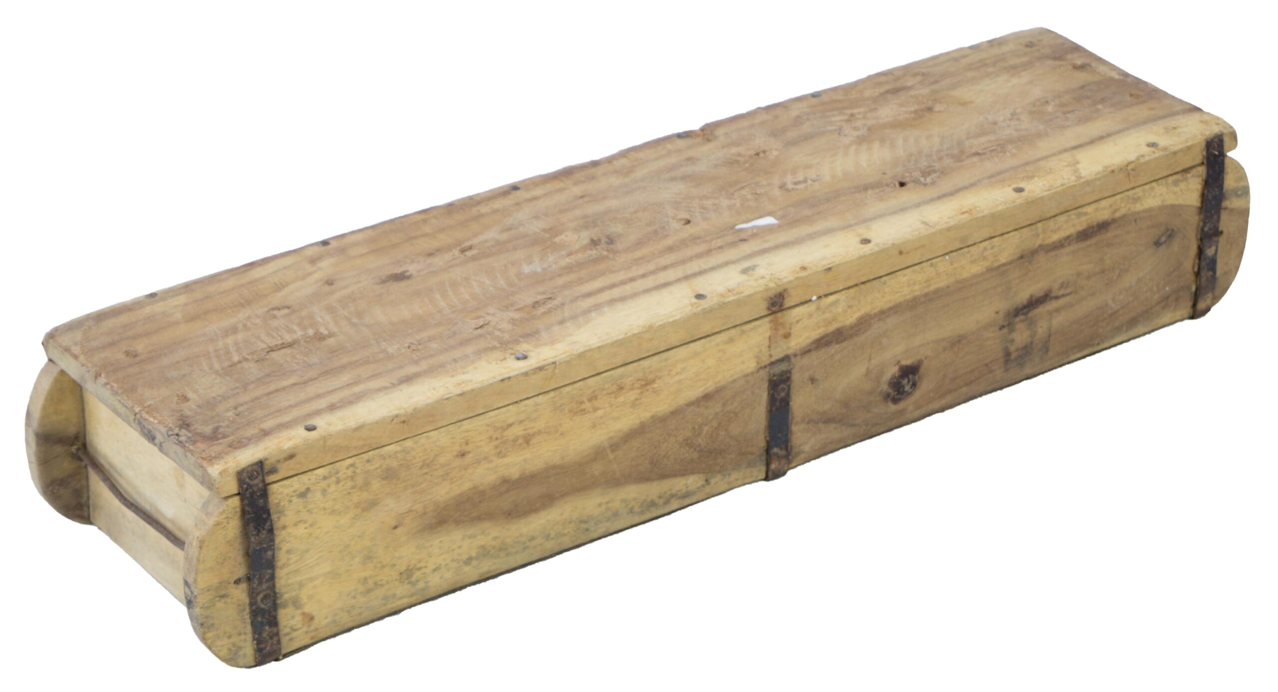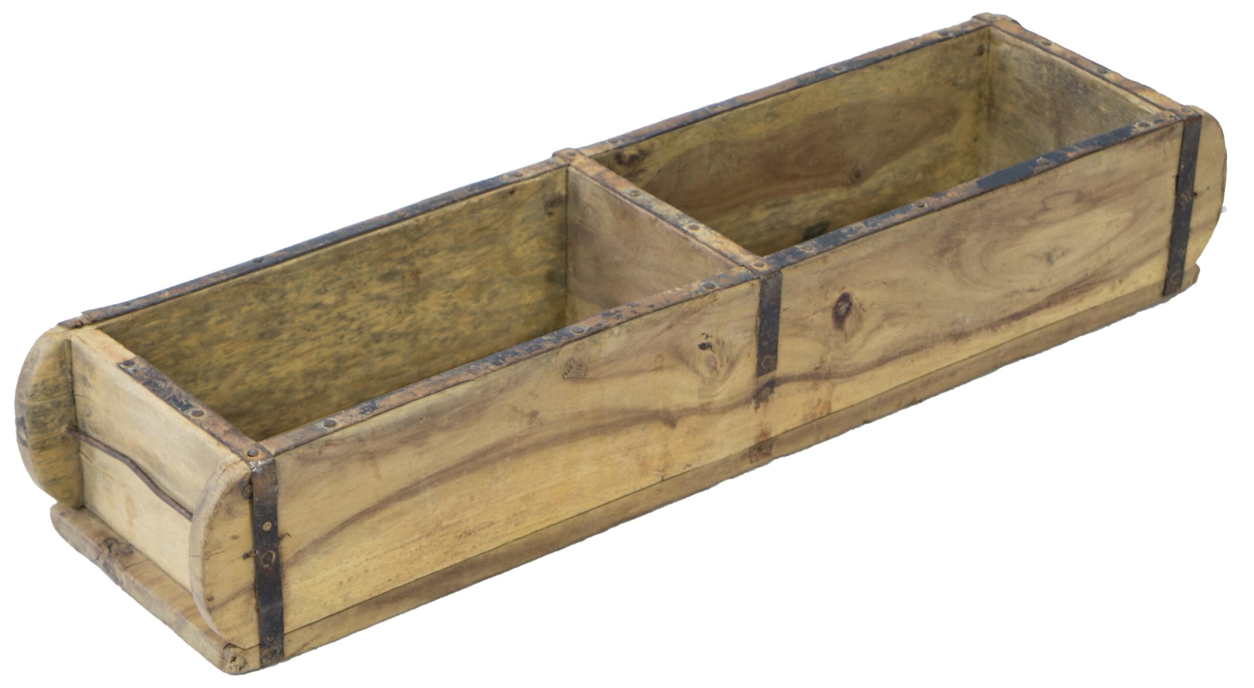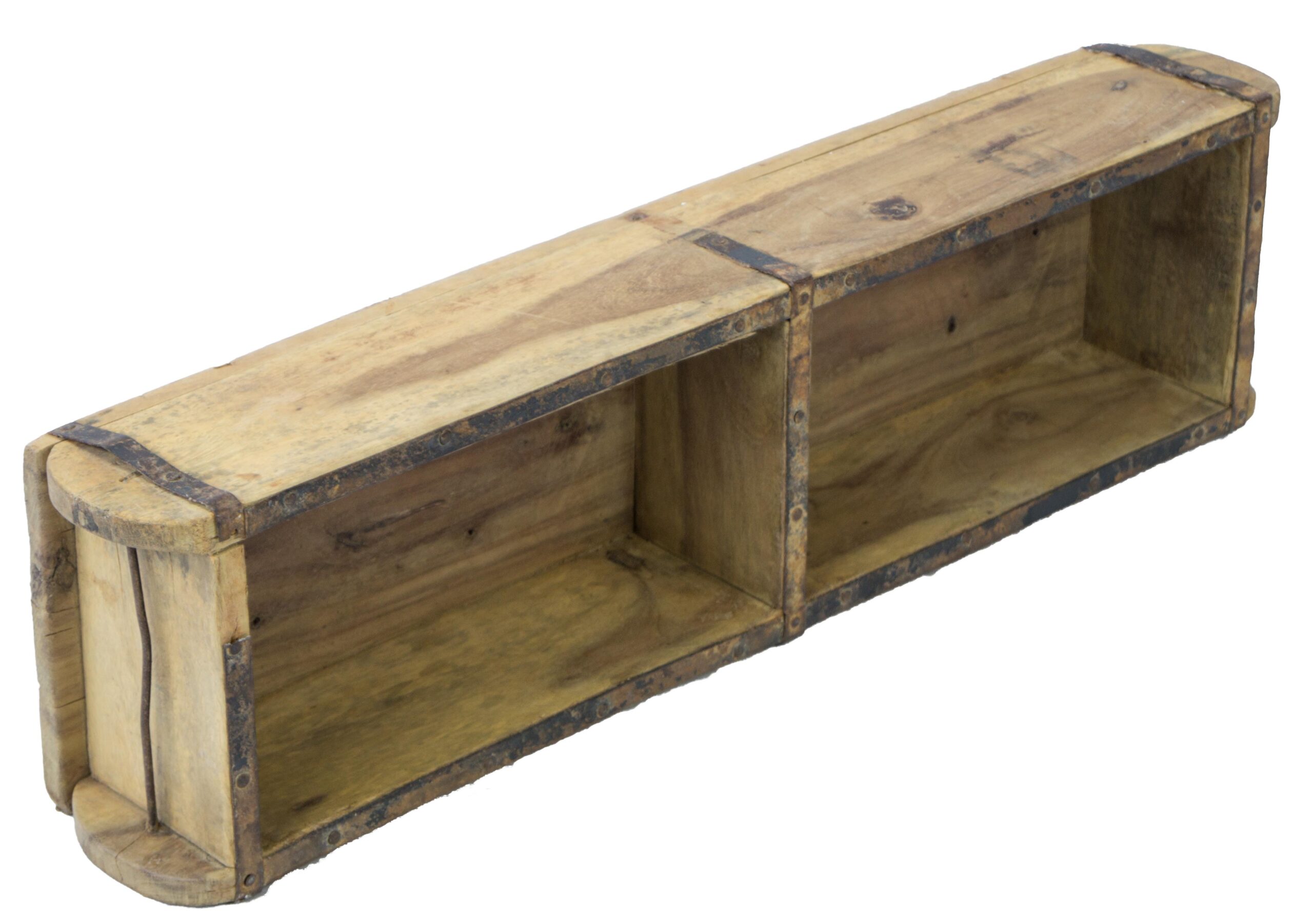 Diese originalen Ziegelformen aus Indien sind echte Unikate, jede einzelne Kiste wurde für die Herstellung von Lehmziegeln