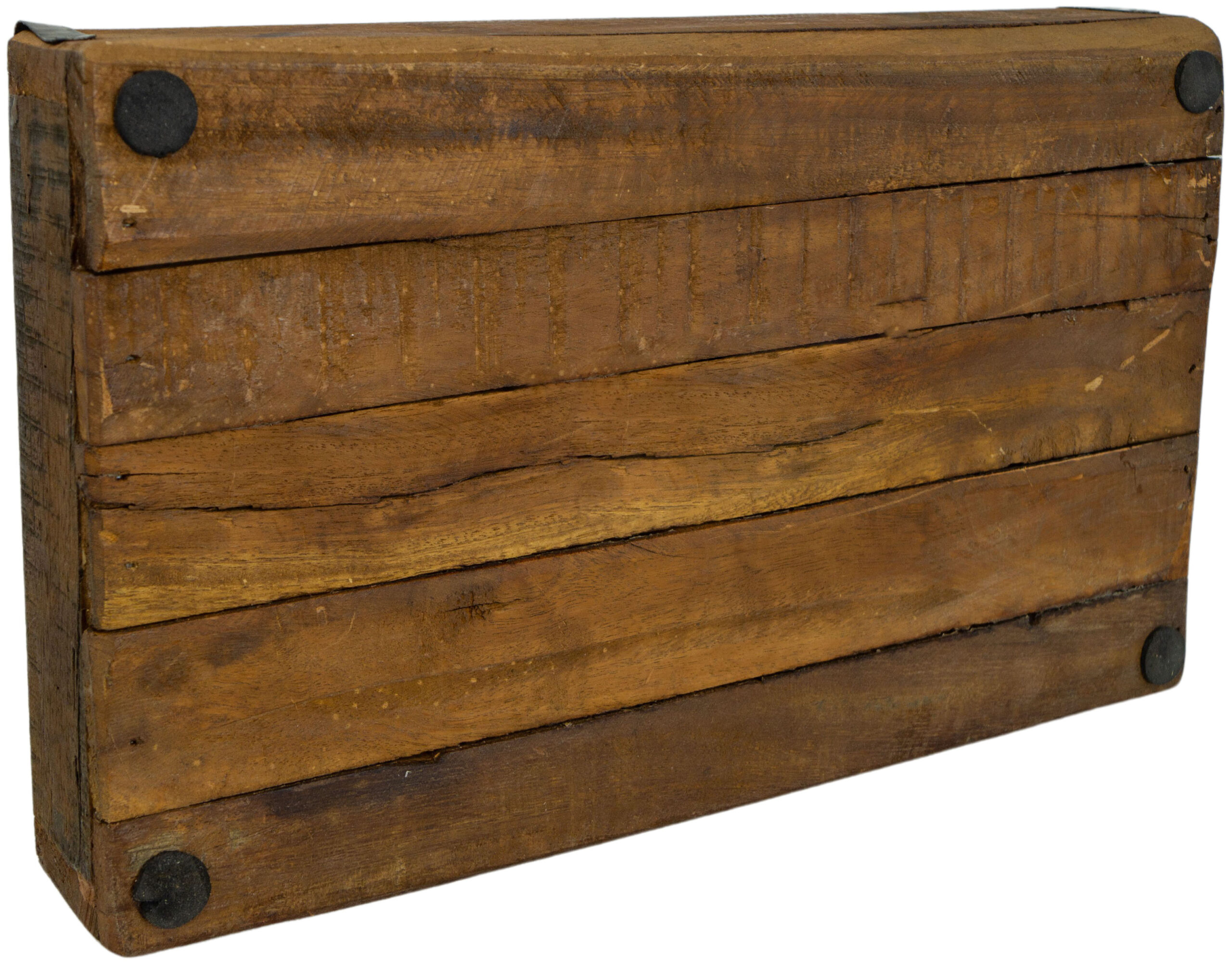 Noch besonderer wird die Kiste durch die Metallbeschläge, Risse und Nägel.
