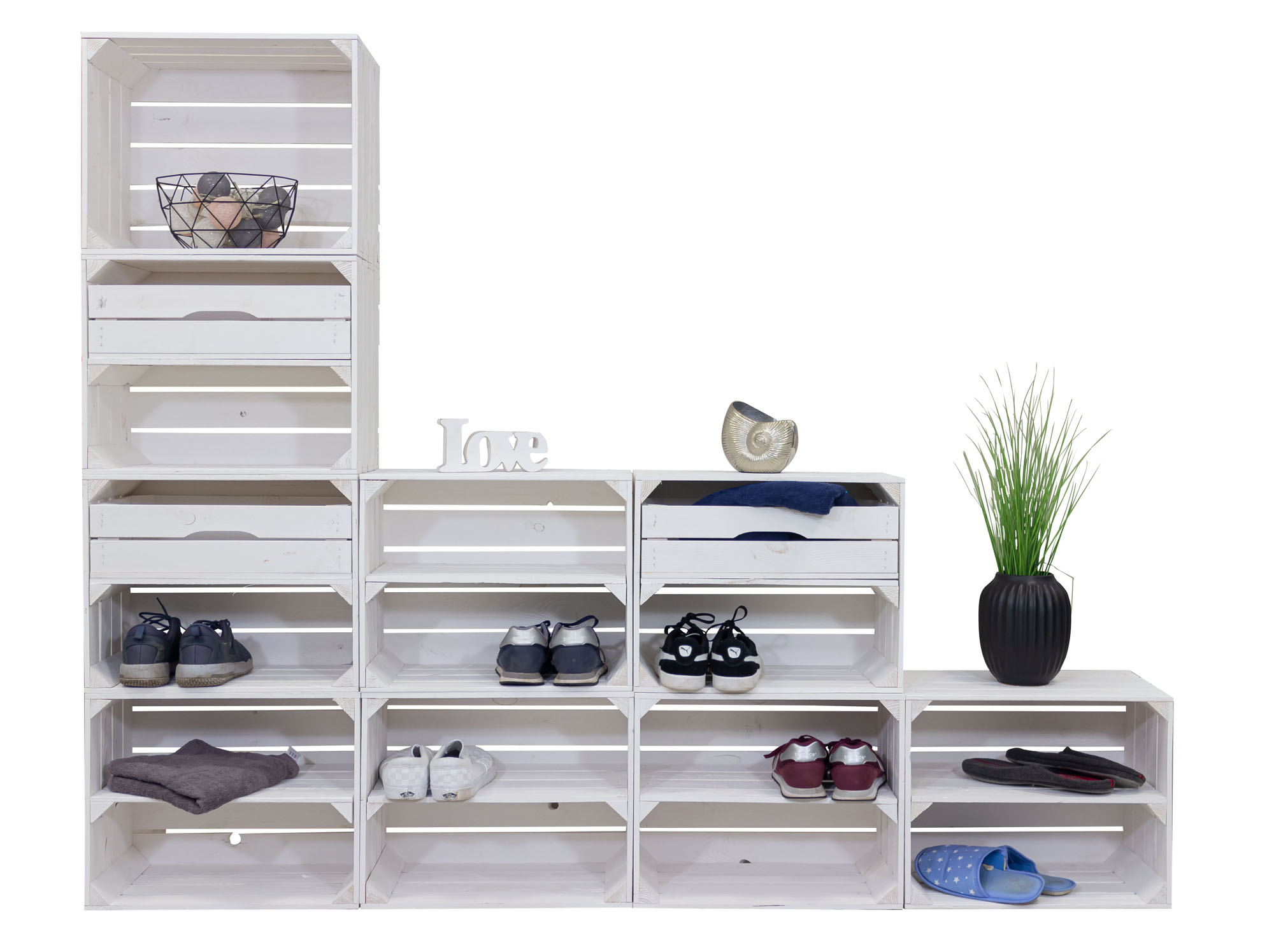 Schuhregal mit 17 Ebenen Schuhschrank, Schuhaufbewahrung, Schuhorganizer, für bis zu 34 Paar Schuhe, für Wohnzimmer, Flur (Weiß)