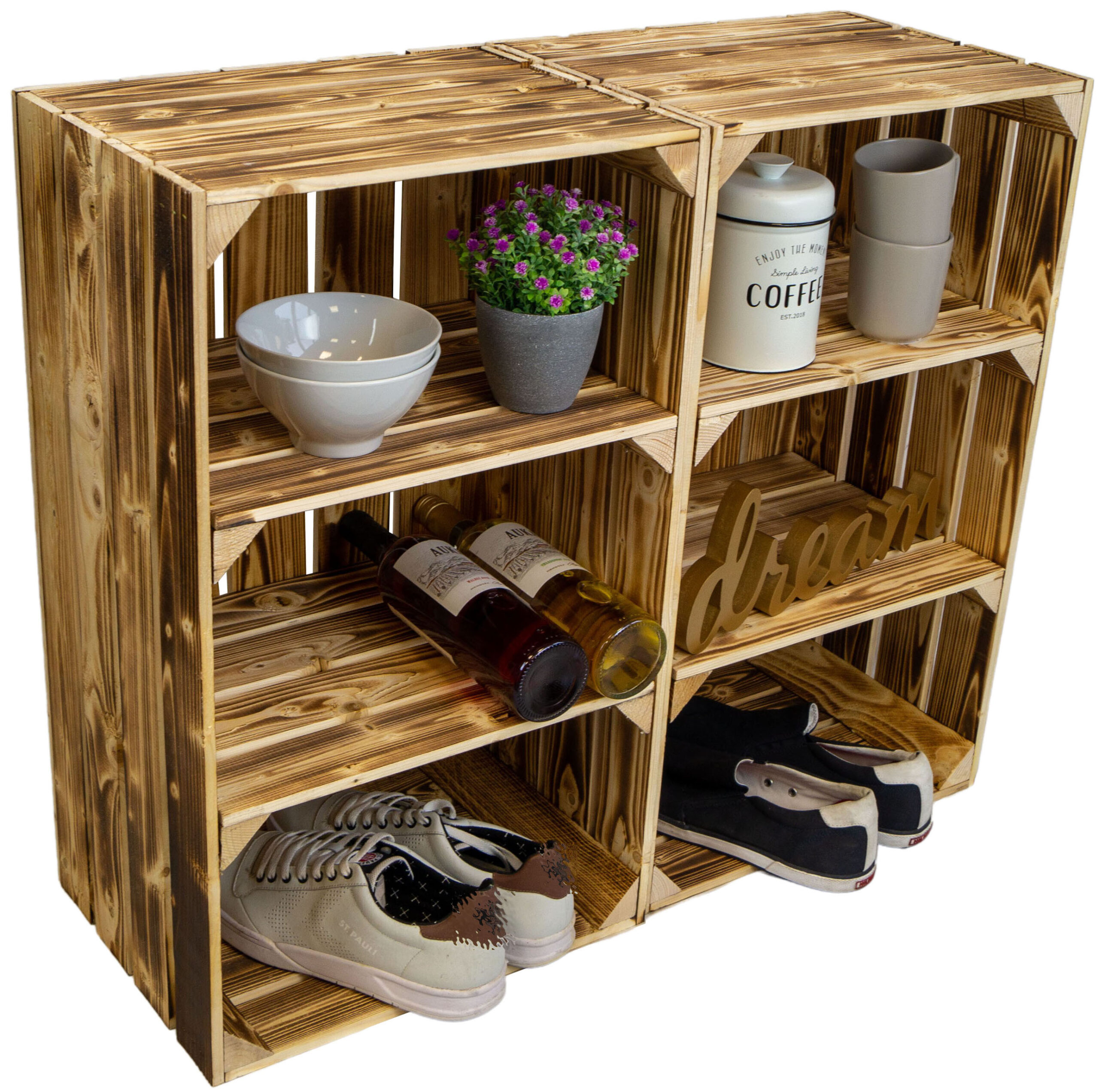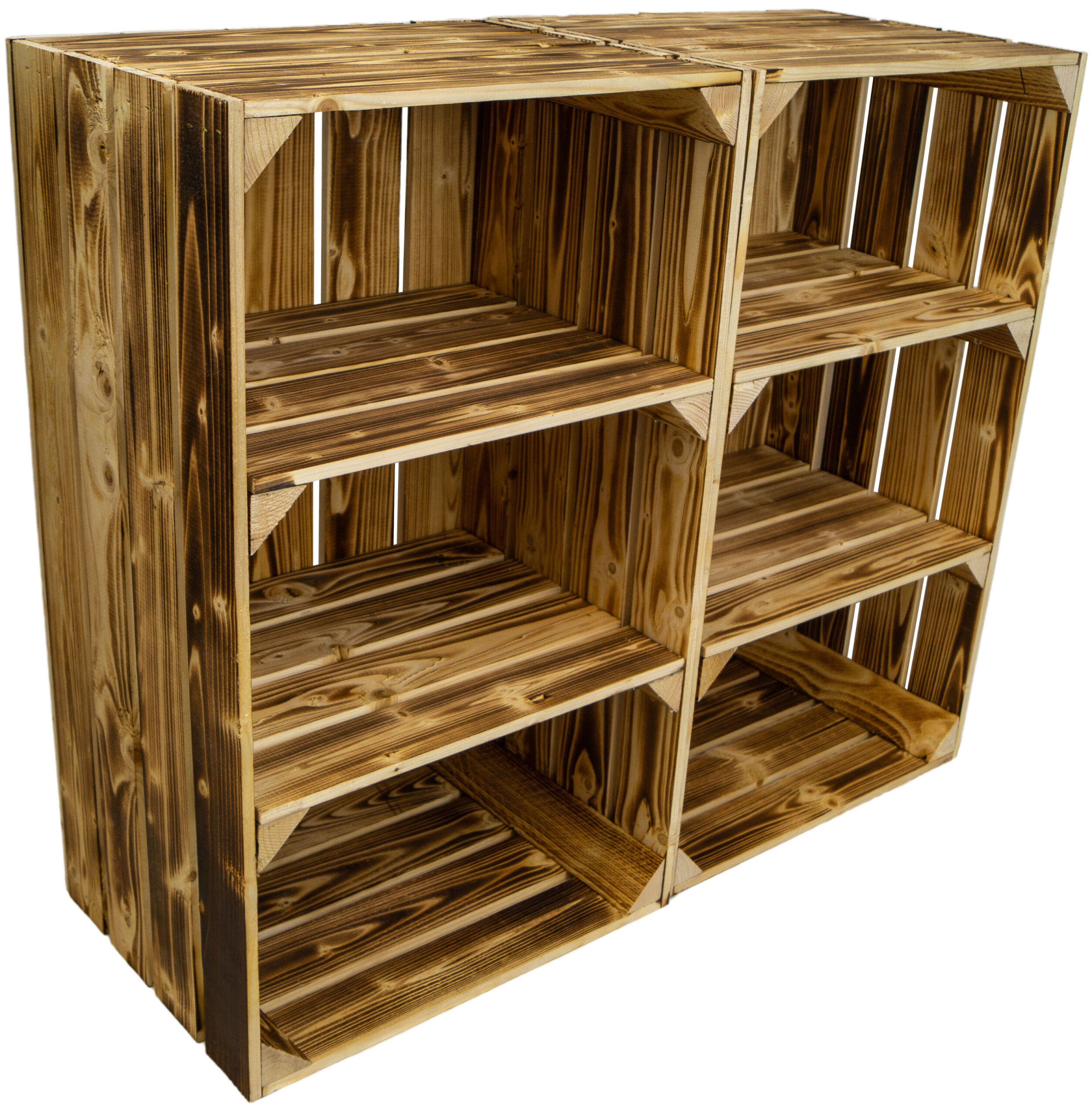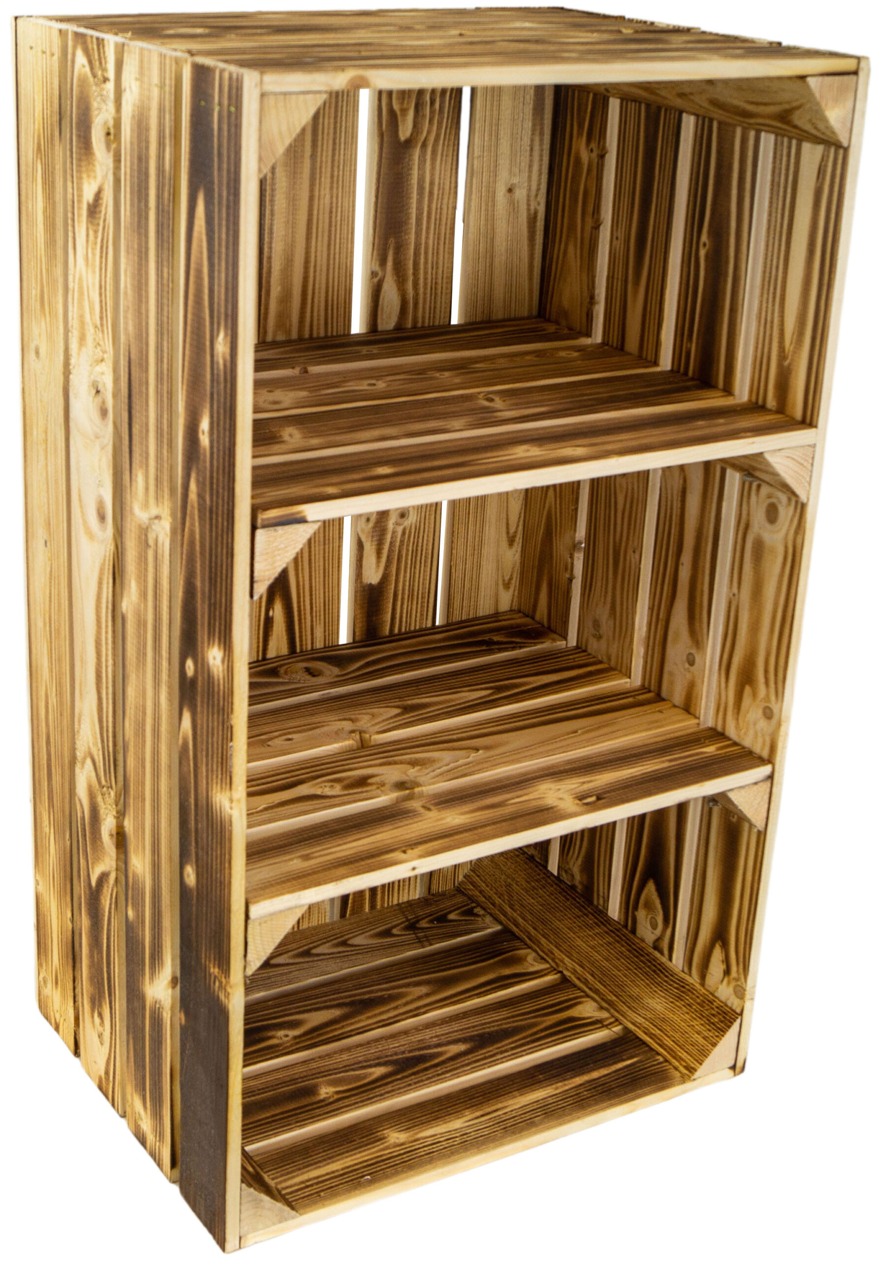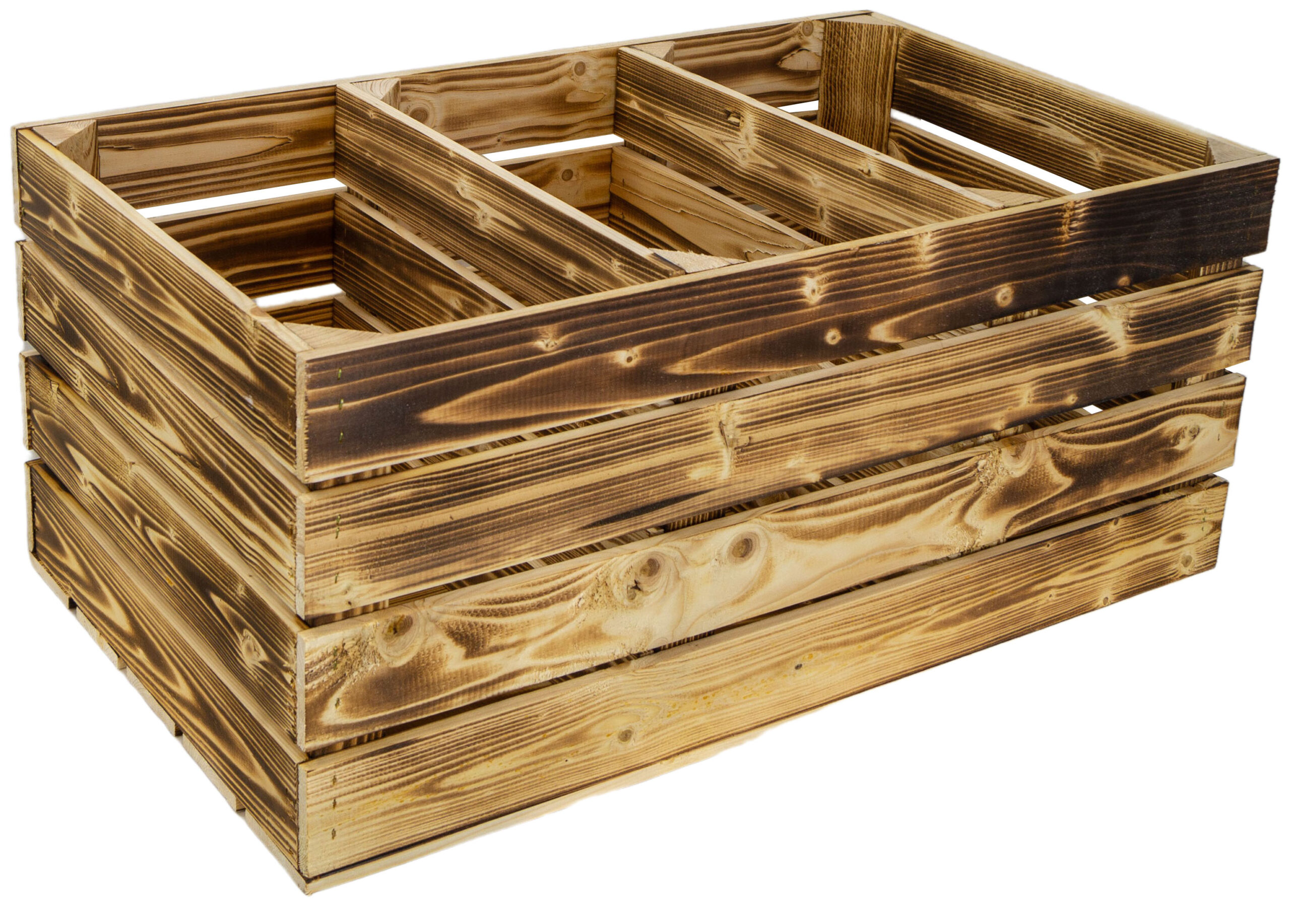 Neue & gehobelte massive Obstkiste Willi geflammt mit zwei Mittelbrettern