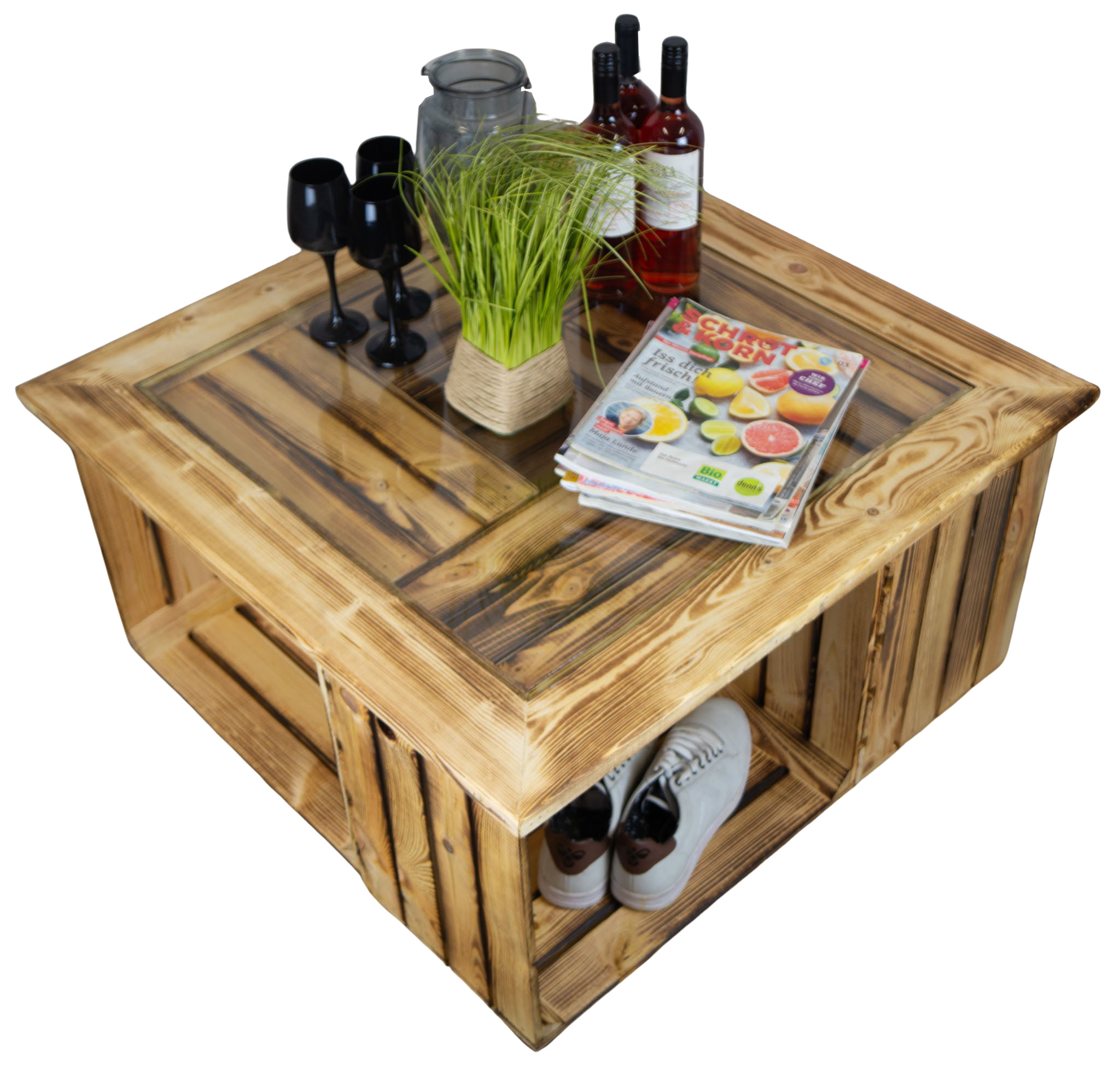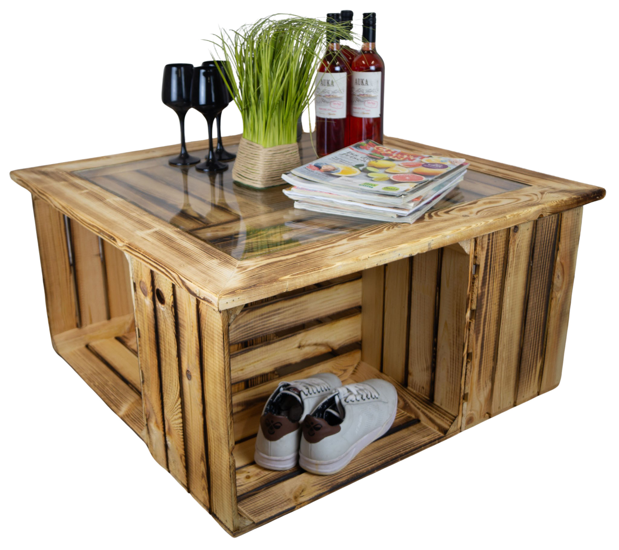 Unsere Tischplatten lassen sich wunderbar mit unseren Holzkisten "Johanna" zum Couchtisch verbinden.