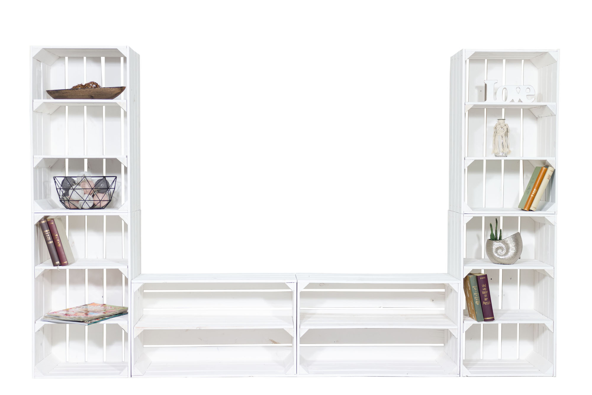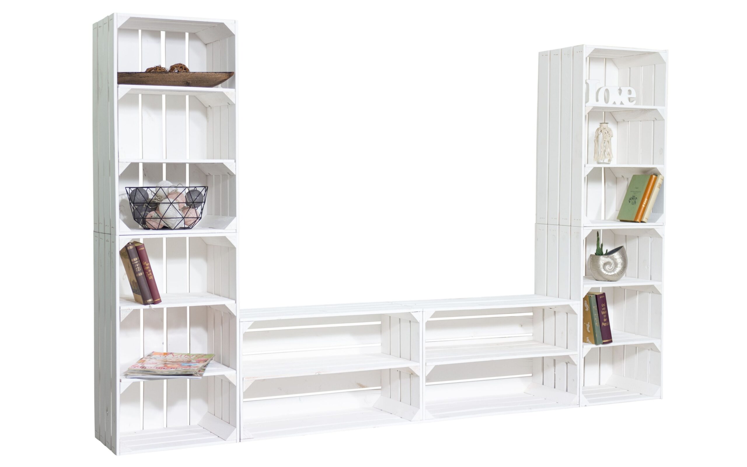 TV-Board Steven mit hohen Regalkisten Lowboard TV Wand Wohnwand Holz Fernseh Fernsehschrank (Weiß)