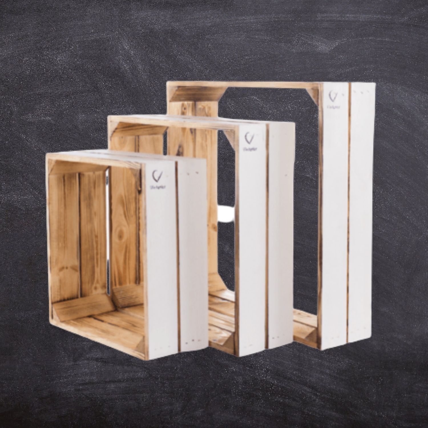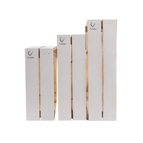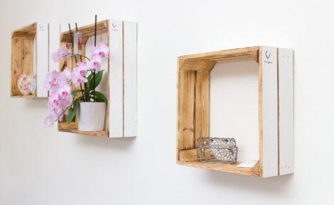 Die Wandregal Kisten mit dem coolen Design bestehen aus massivem Kiefer-Holz.