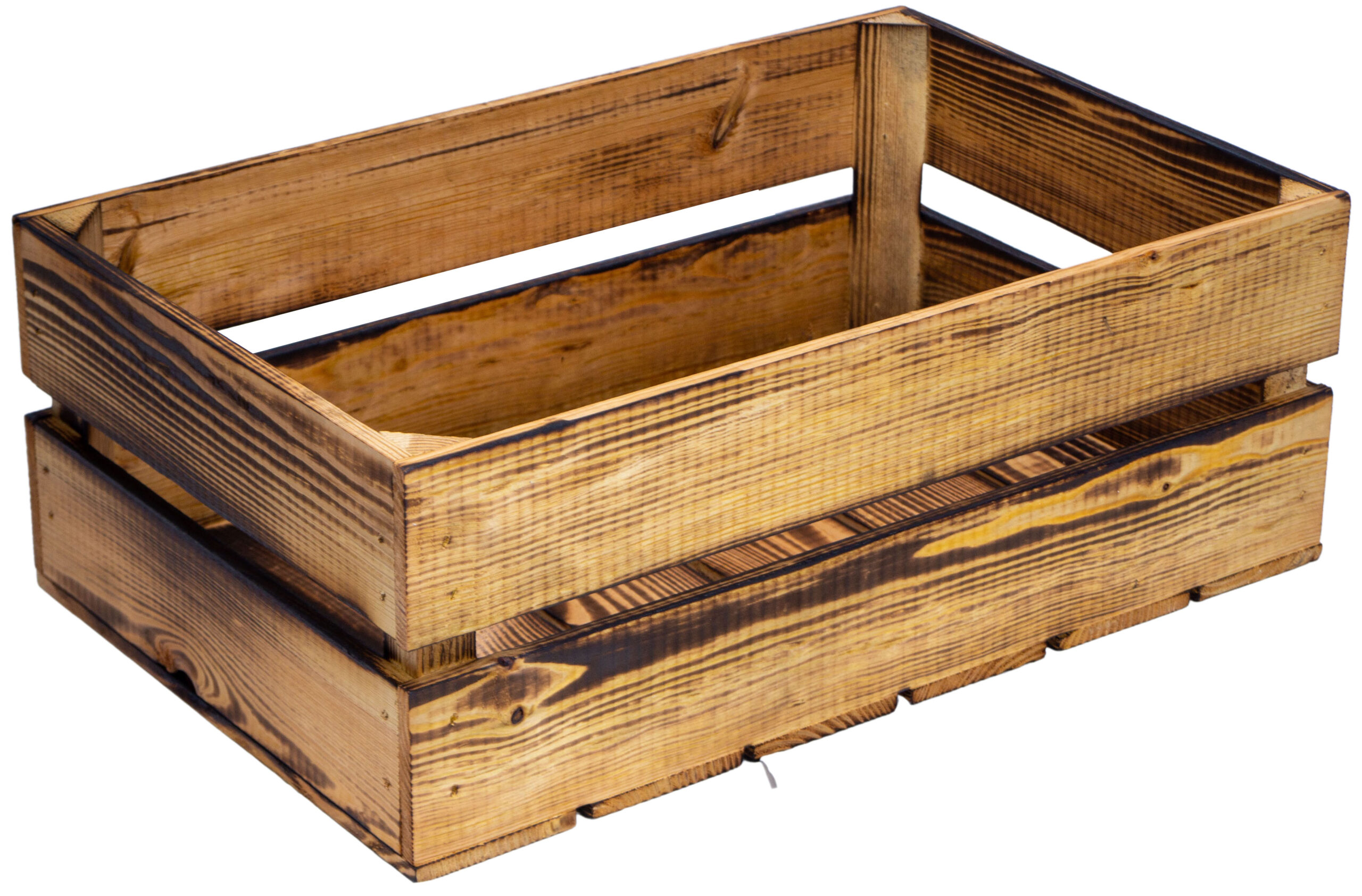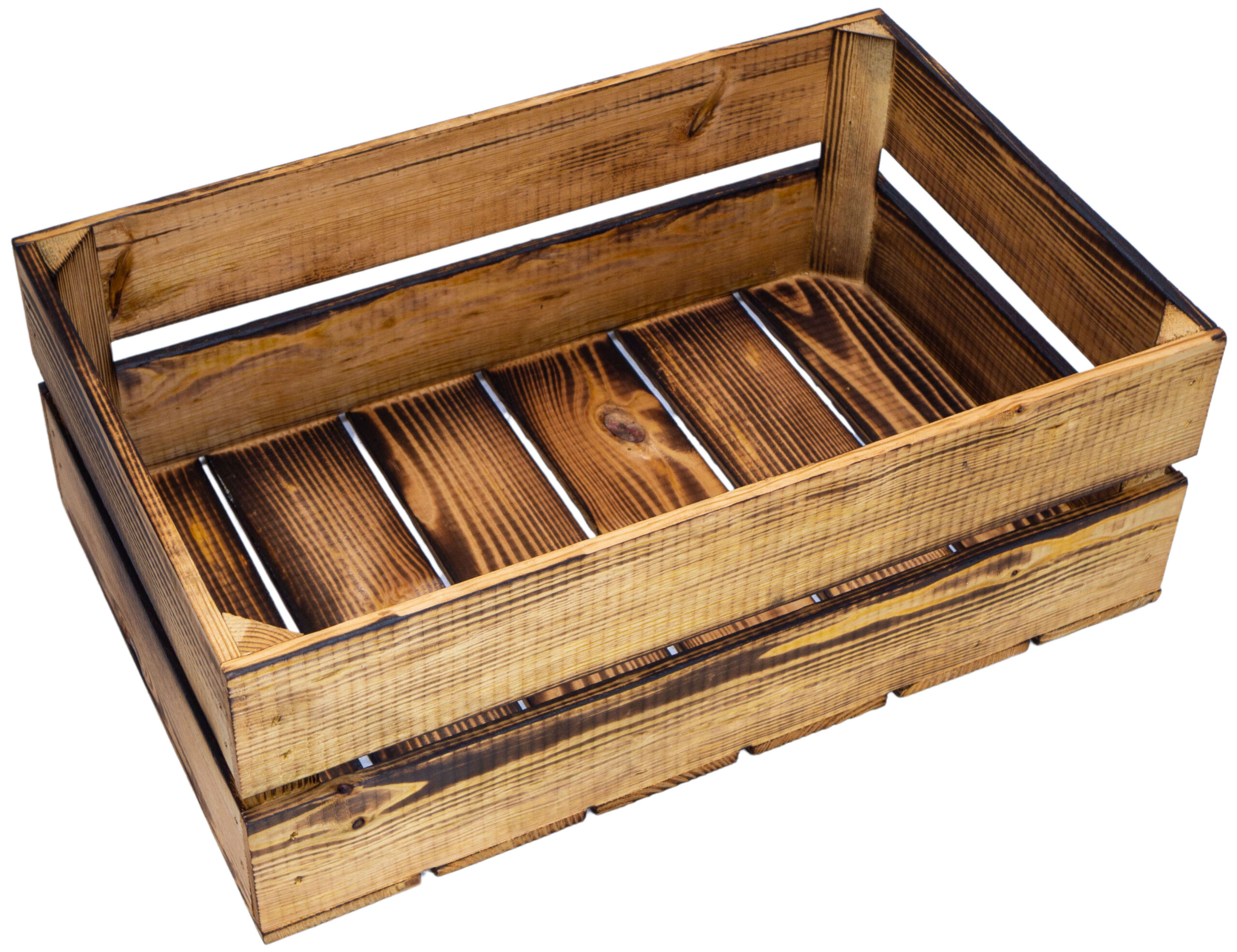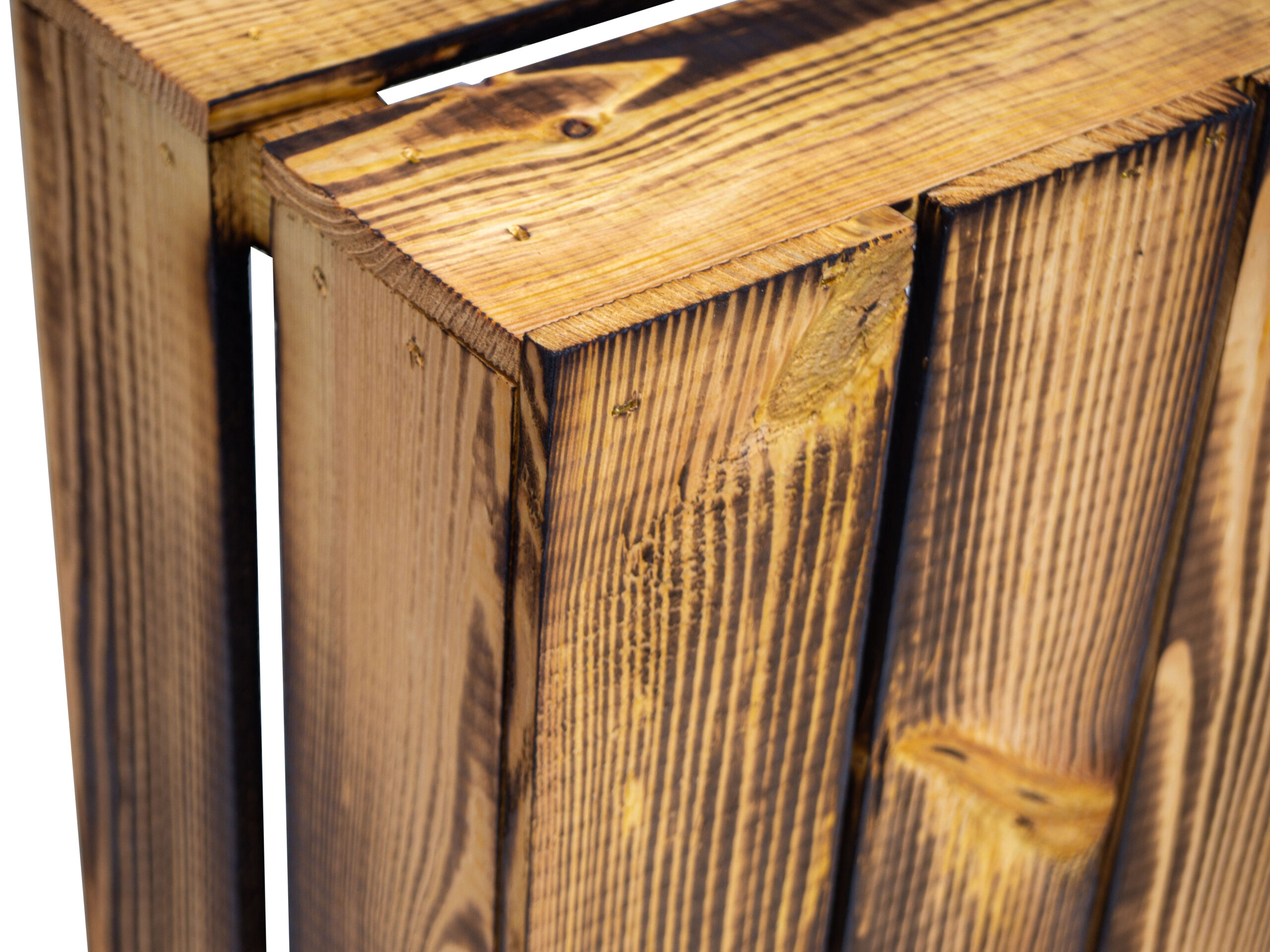 • mit einem Brenner flambiert. Achtung: Durch den Ruß kann die Kiste abfärben – daher empfehlen wir die Kiste mit einem feuchten Tuch zu reinigen!