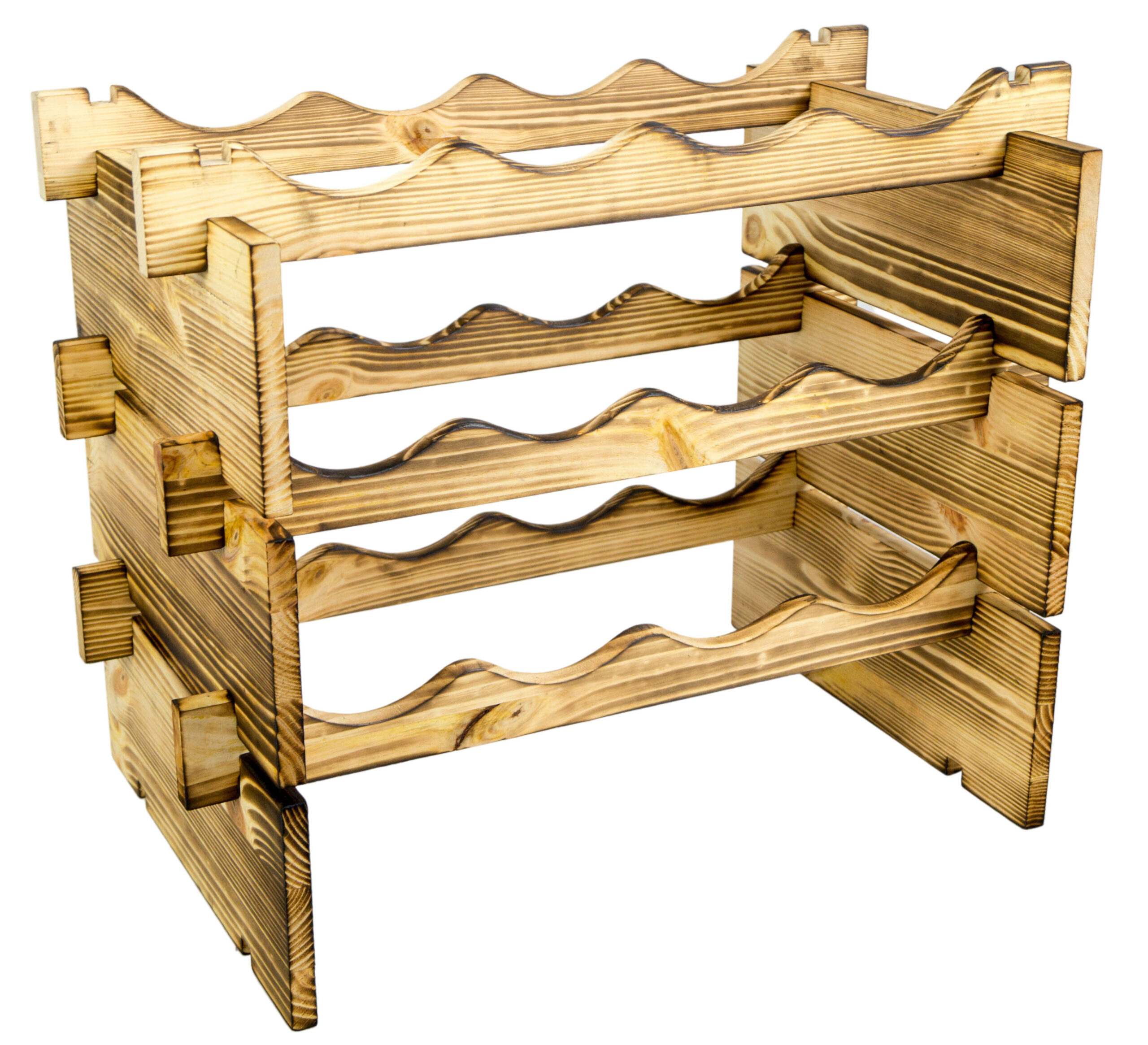 Dieses Flaschenregal ist jederzeit um weitere Ebenen erweiterbar.